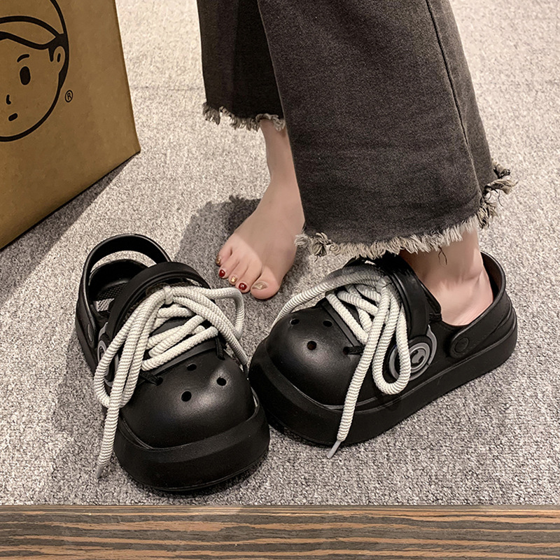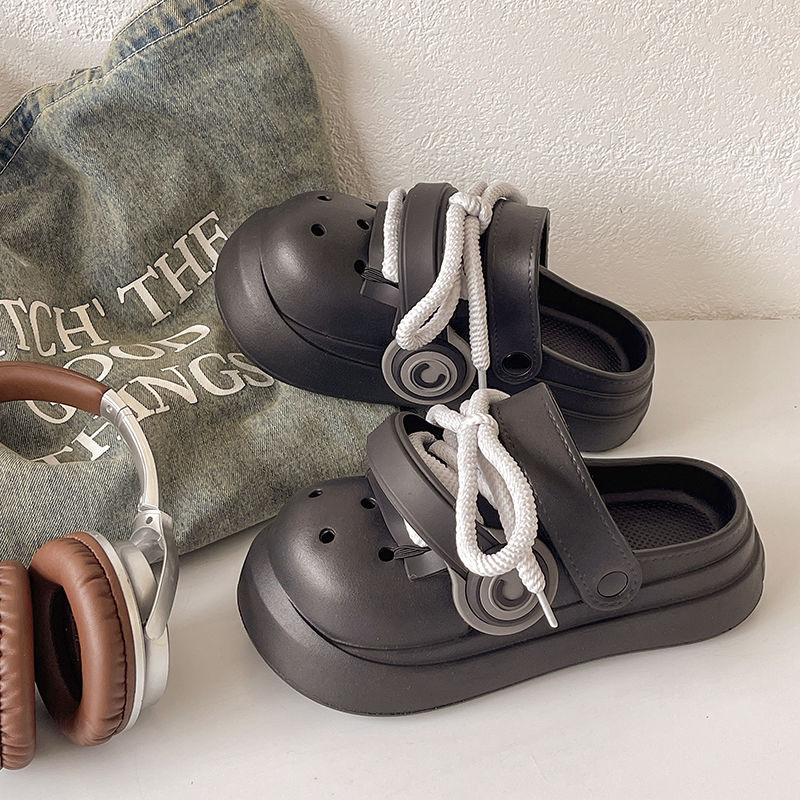 春夏大头情侣厚底增高洞洞鞋男女朋克风耳机鞋外穿软底凉拖鞋凉鞋