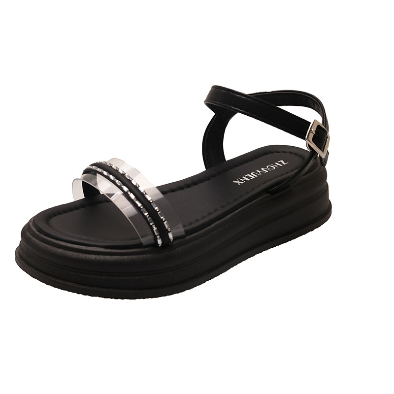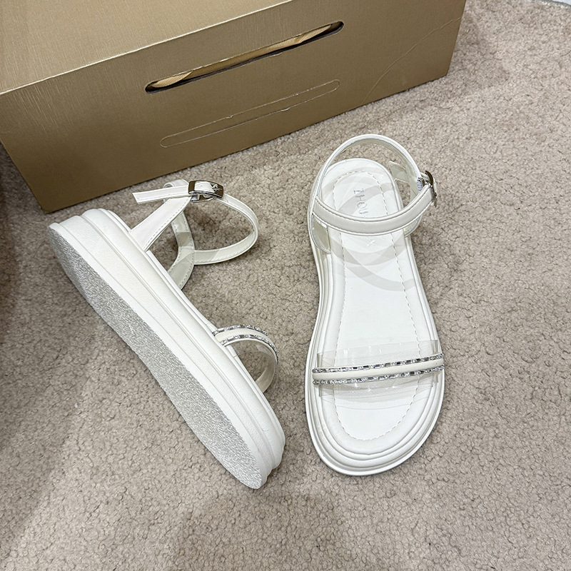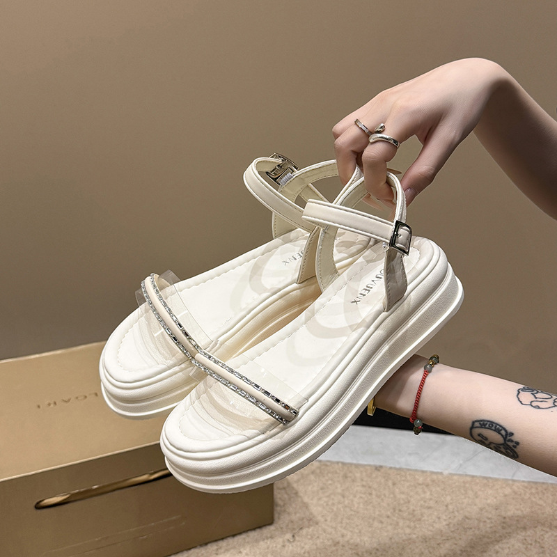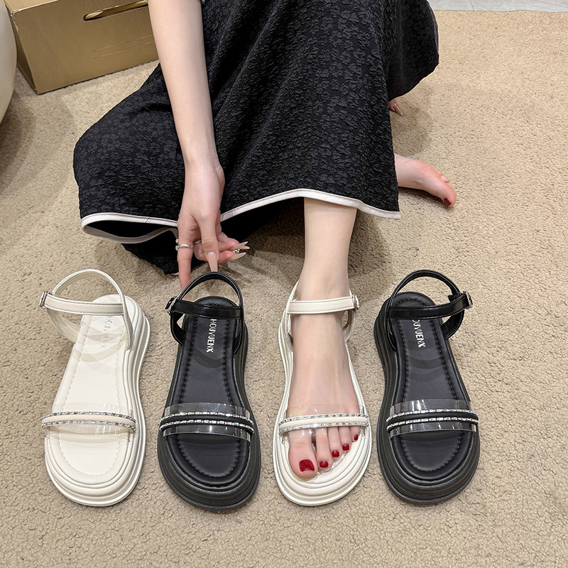 仙女风水钻大码凉鞋女2025年夏新款韩版厚底一字带配裙子凉鞋批发