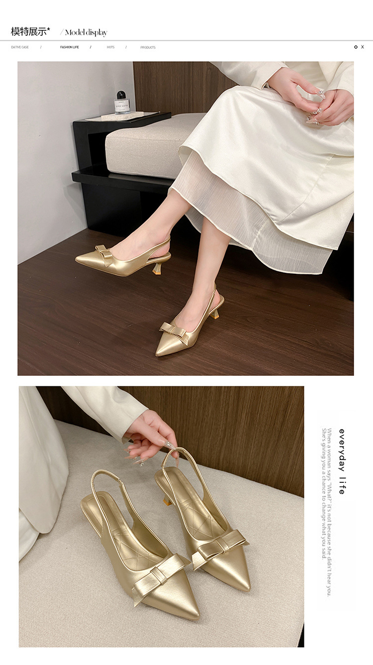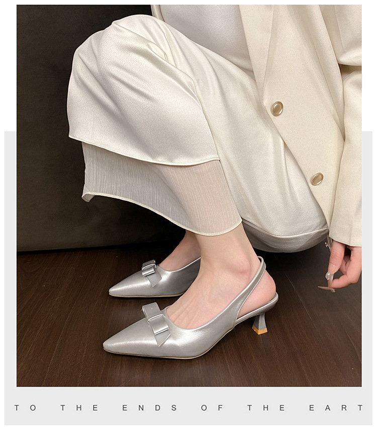 银色尖头蝴蝶结坡跟单鞋女2025年夏季新款凉拖鞋韩版后空时尚凉鞋