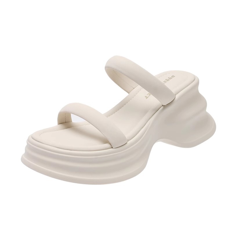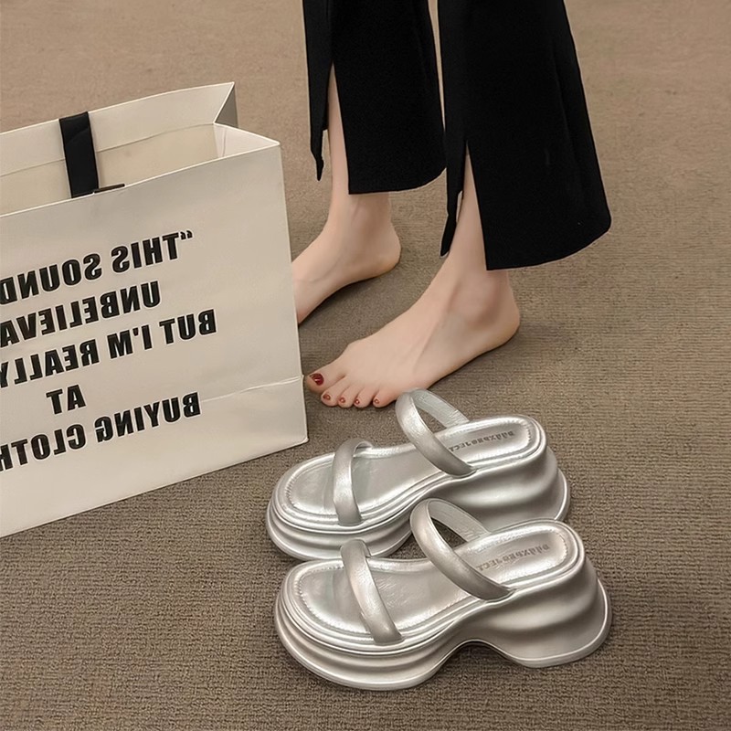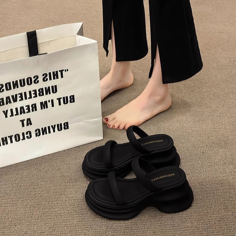 拖鞋女2025年夏季新款黑色轻便厚底粗跟一字带时尚外穿增高凉鞋女