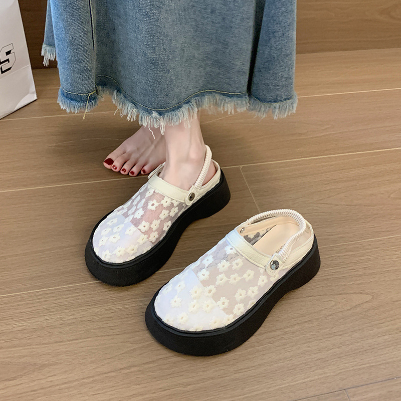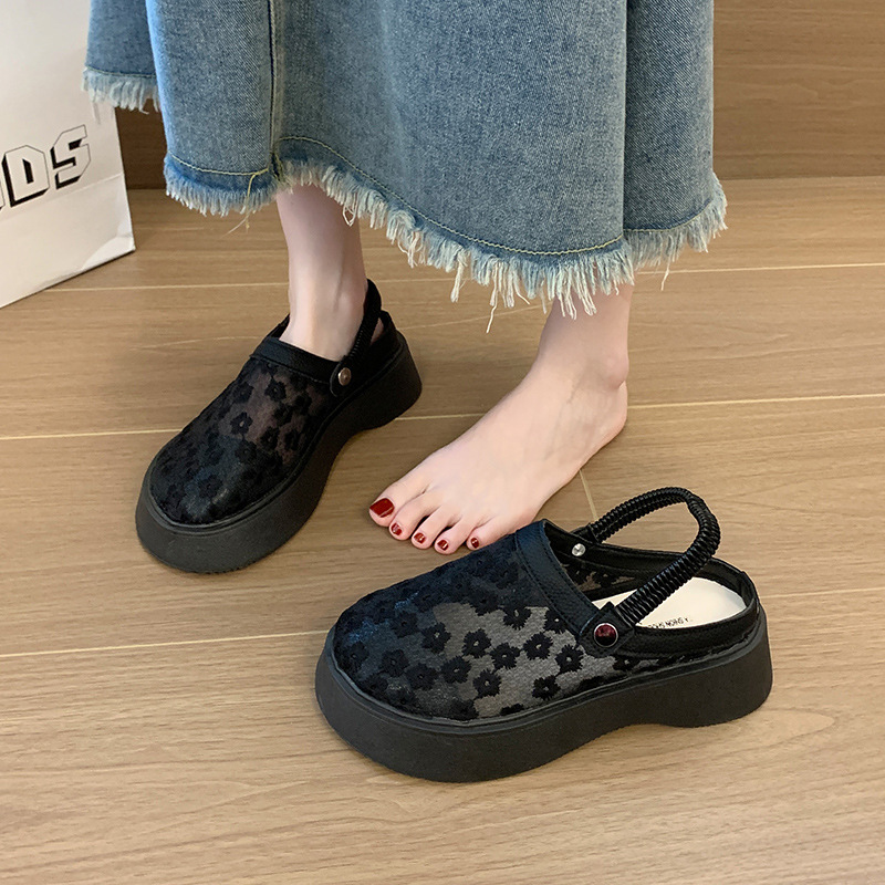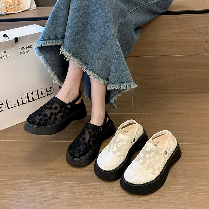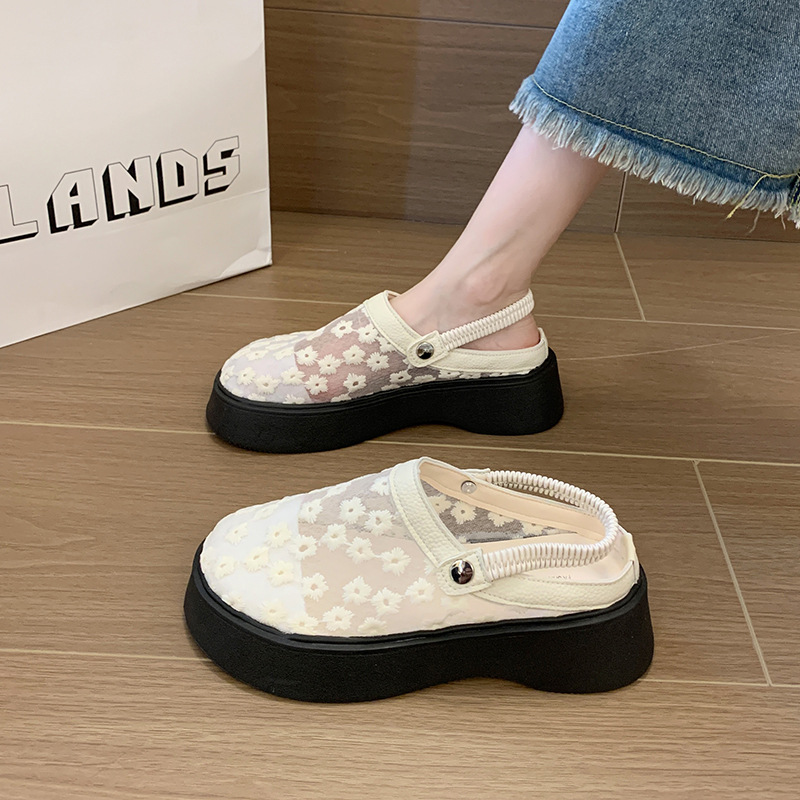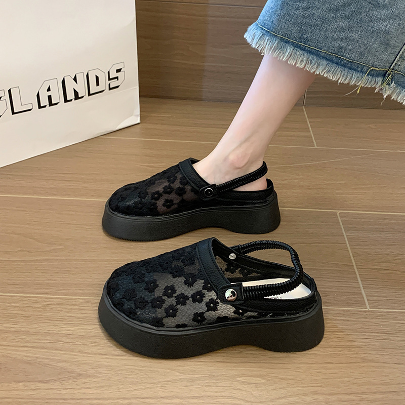 增高透气网纱两穿半拖鞋女2025年夏季厚底小个子休闲镂空包头凉鞋