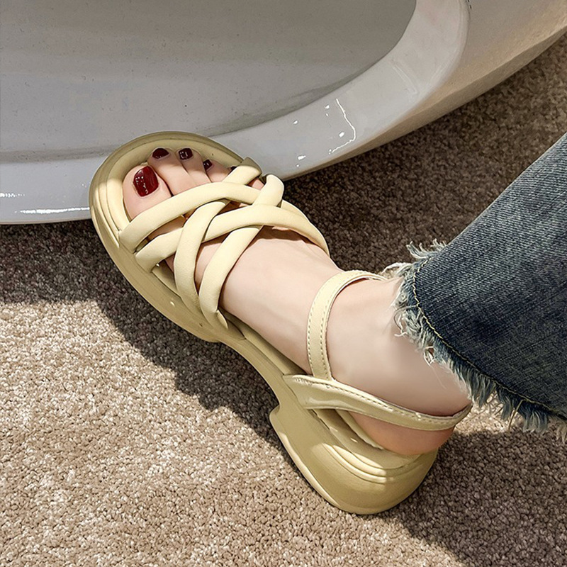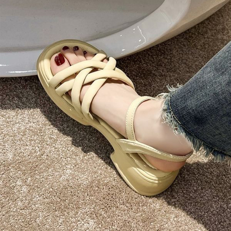 凉鞋女仙女风批发新款夏季百搭粗跟学生时尚网红绑带仙女风罗马鞋