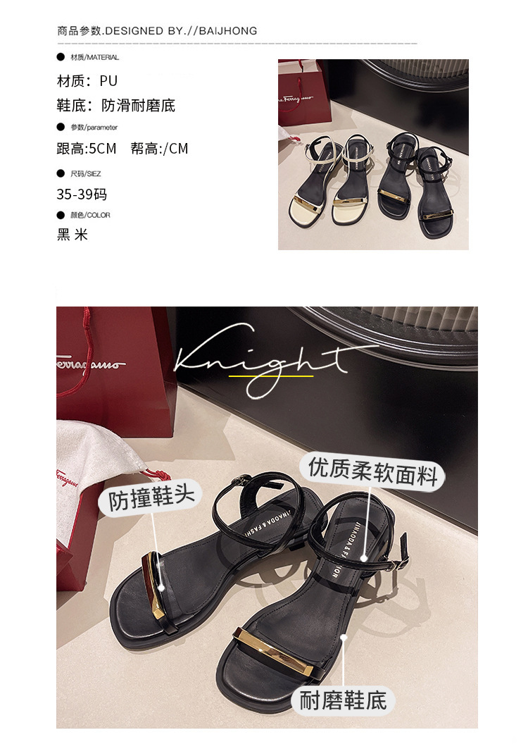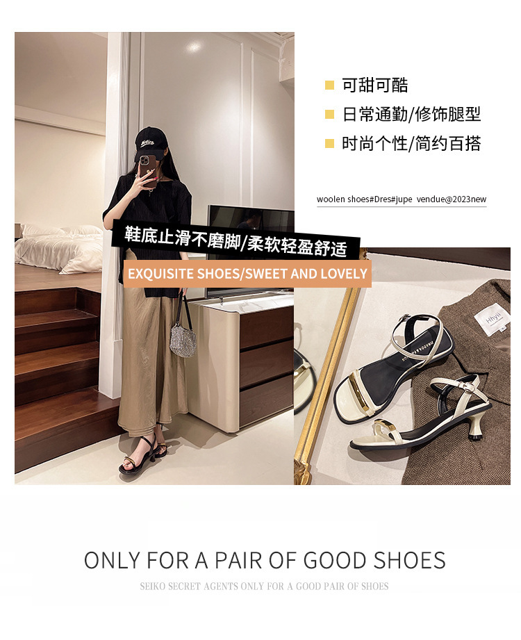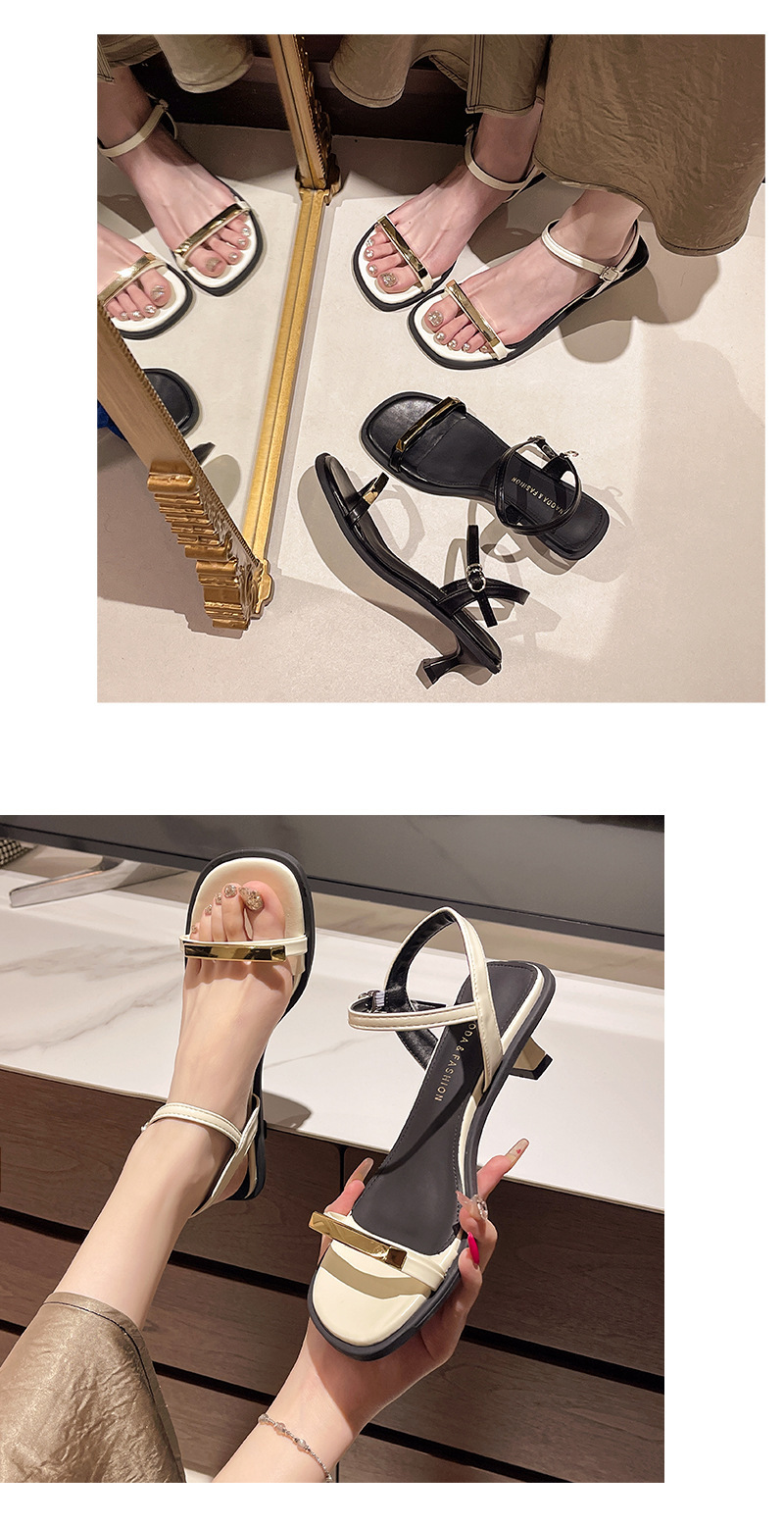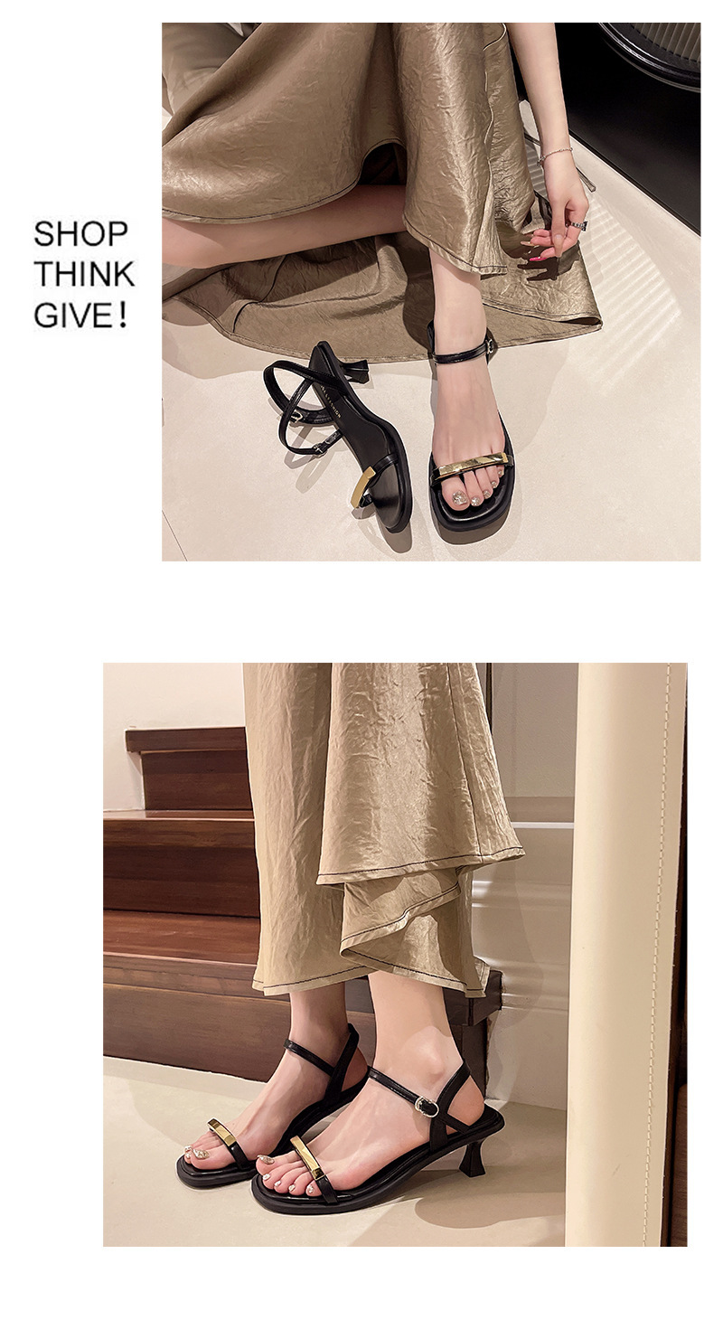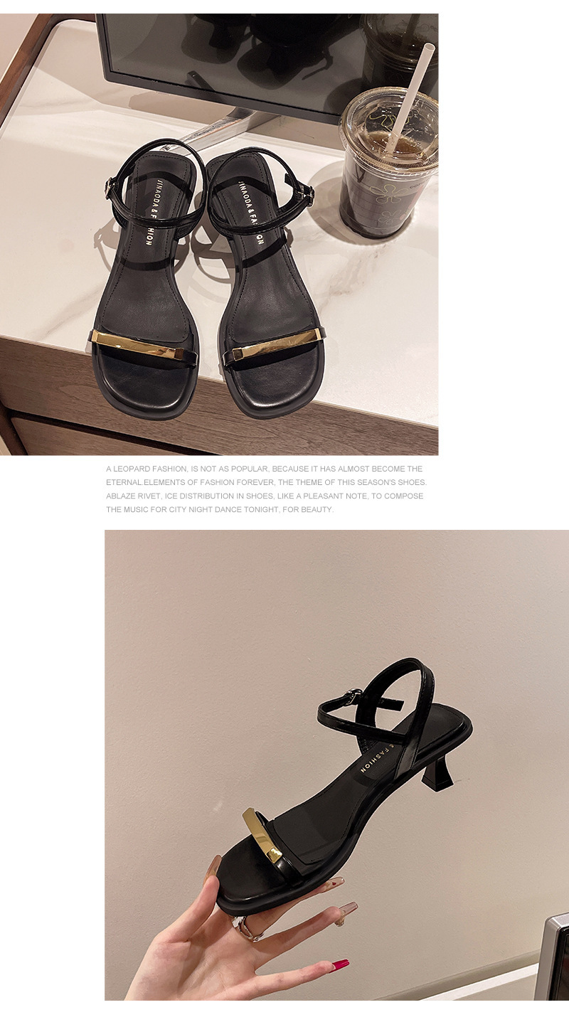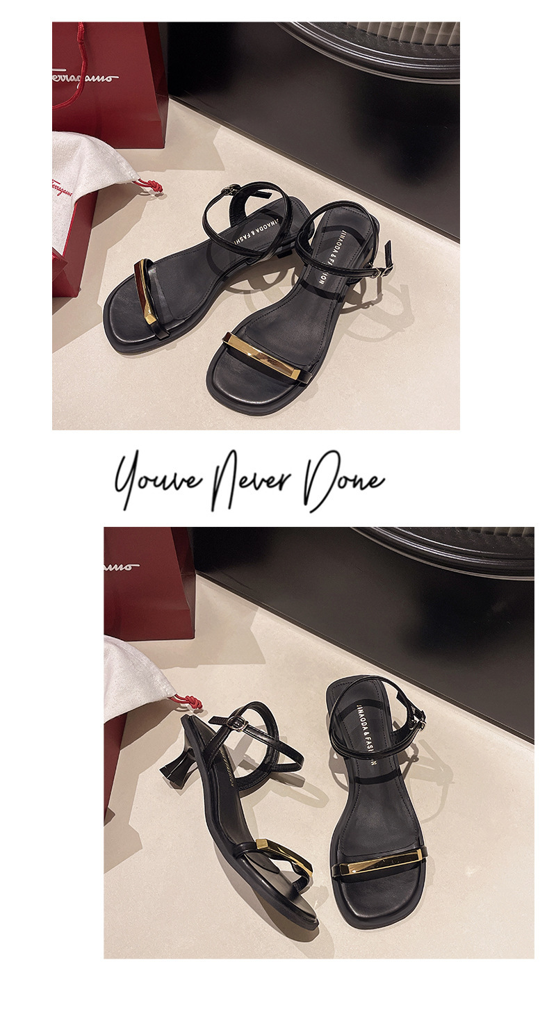 法式气质极简金属方头一字带高跟凉鞋女2025夏季新款棕色轻便细跟