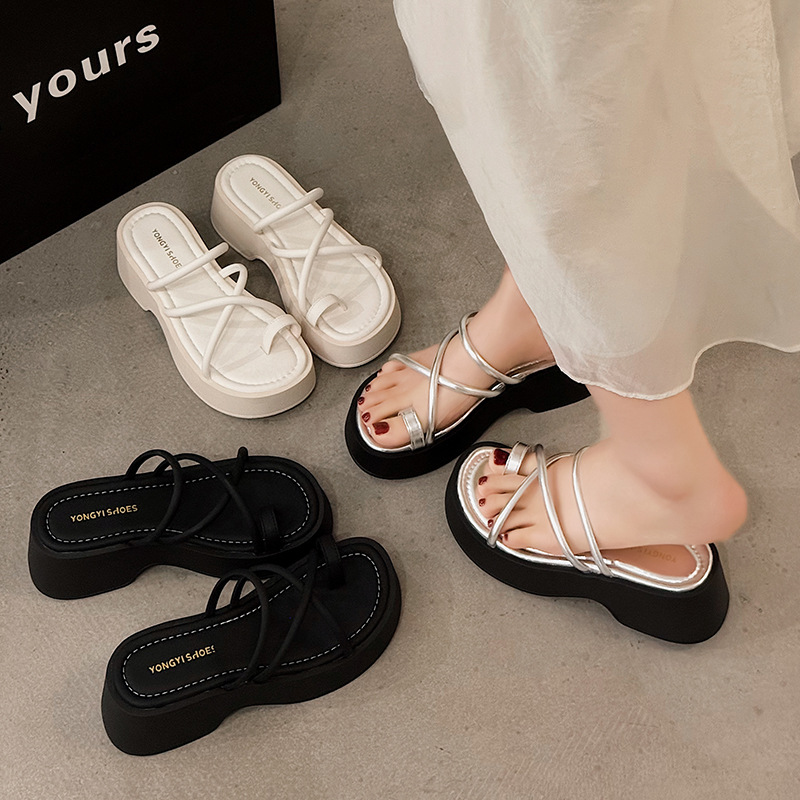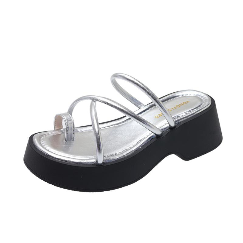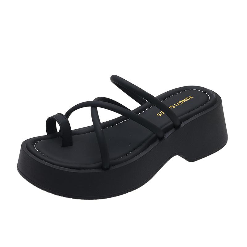 厚底松糕黑色凉拖鞋春夏季新款女外穿时尚法式沙滩度假罗马凉