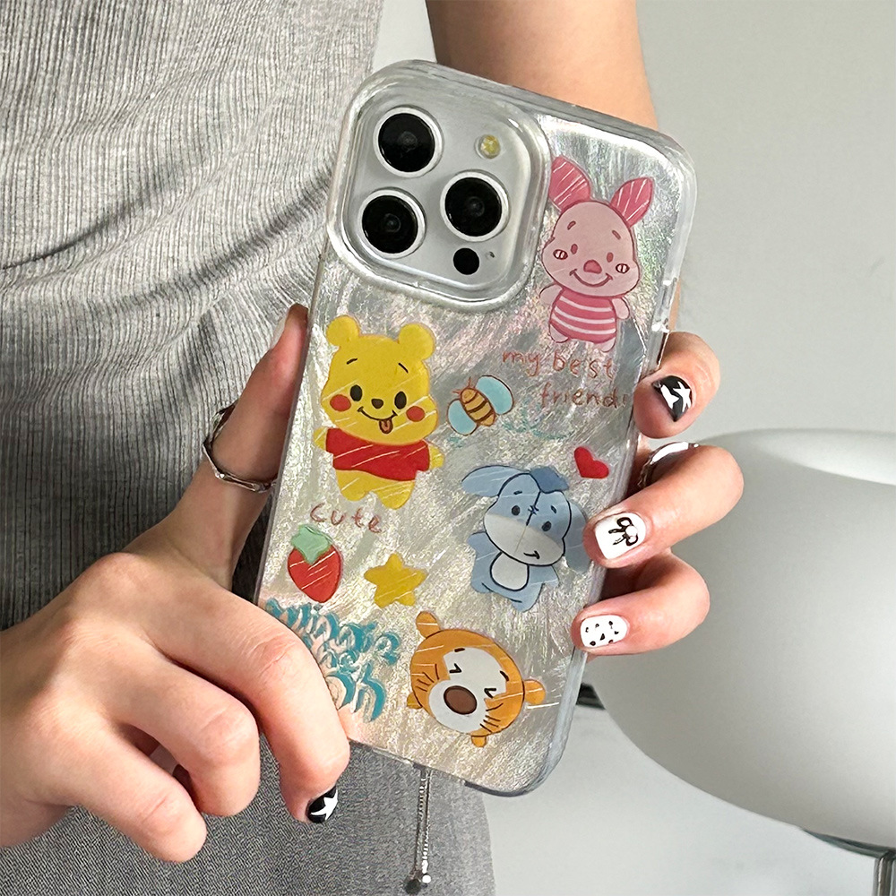 小熊老虎苹果15手机壳13promax保护套IMD保护壳14透明边8plus