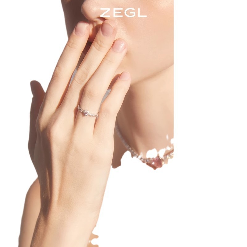 ZEGL粉色爱心戒指女小众设计高级感年新款时尚女桃心食指戒