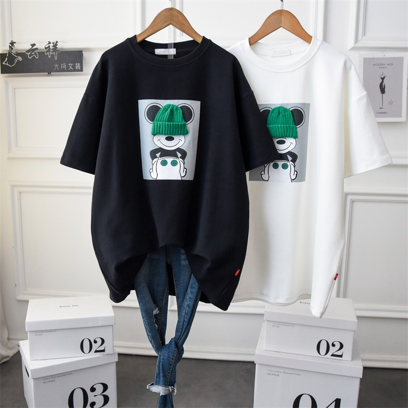 夏季韩版中长款宽松大版短袖T恤女新款小众设计感洋气上衣
