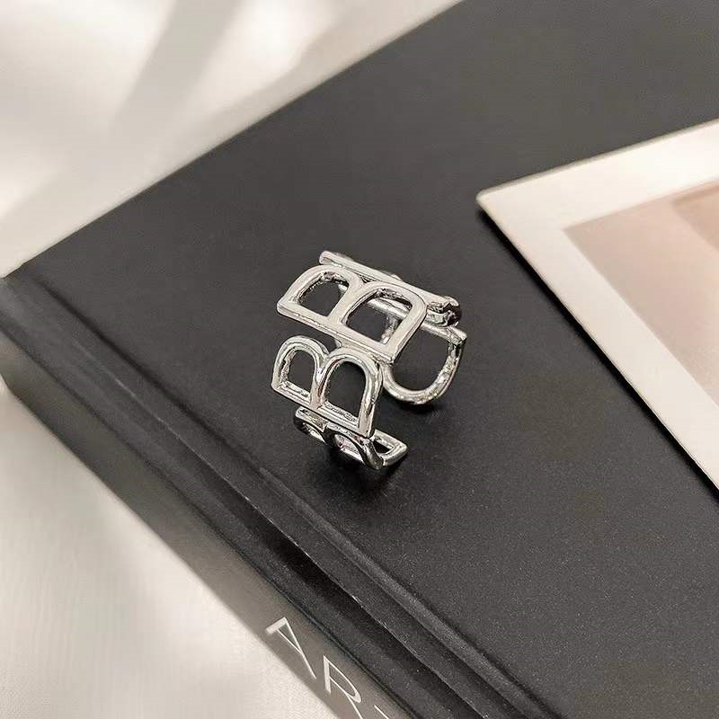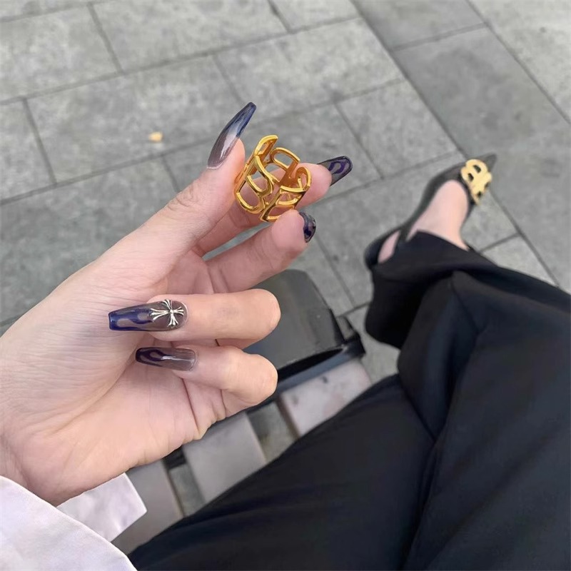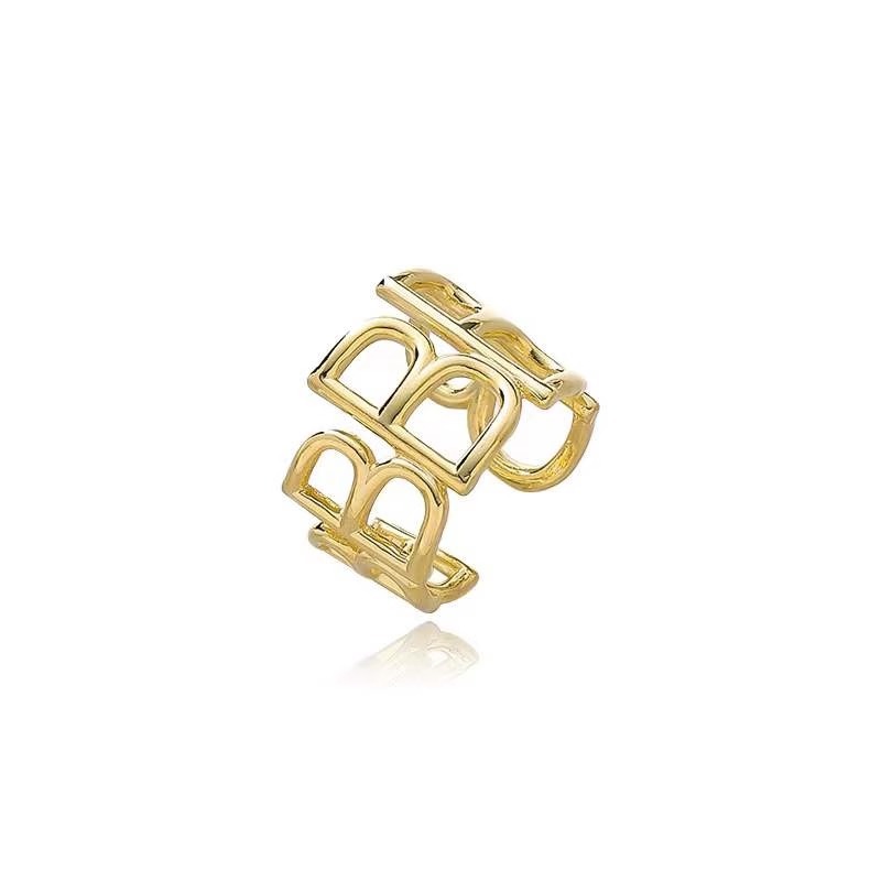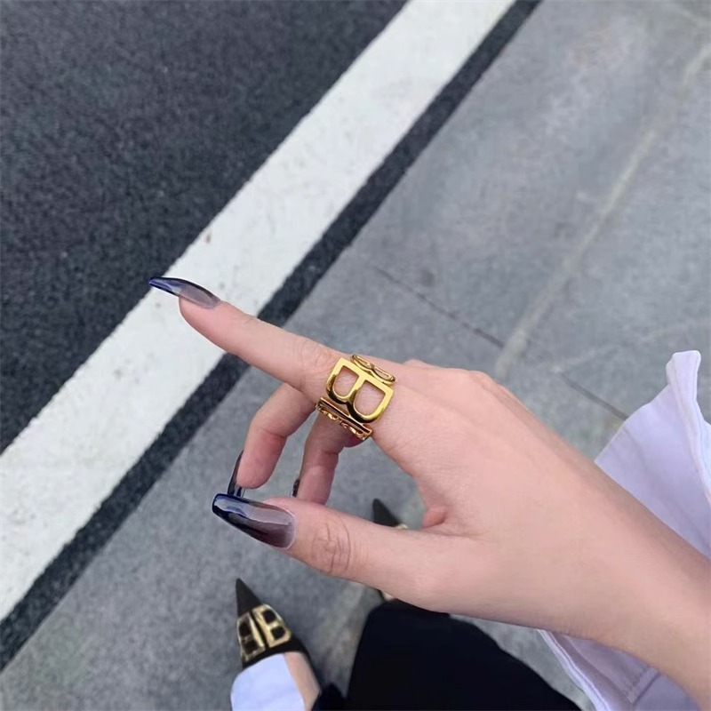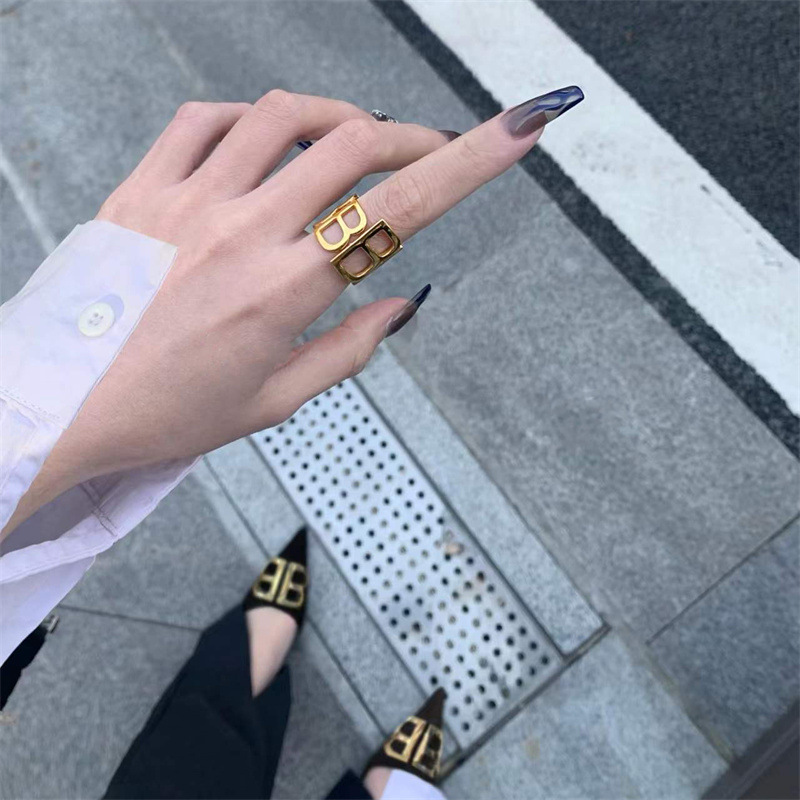 zoozmini欧美ins博主b字母戒指金色时尚指环女个性设计钛钢食指戒