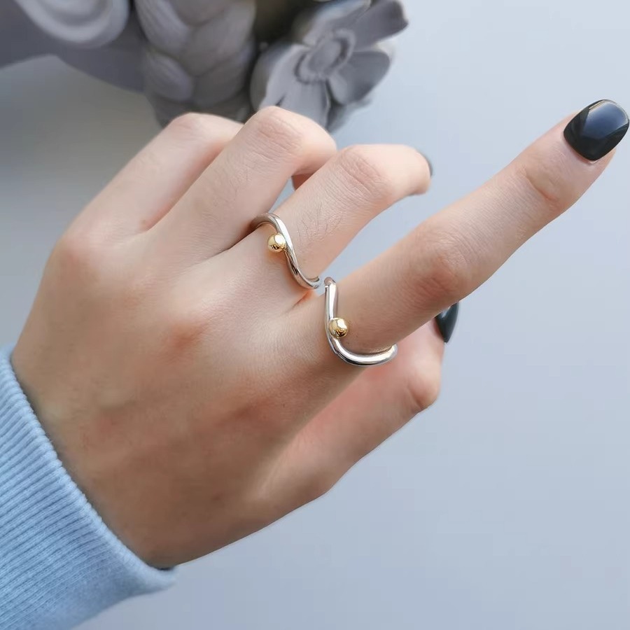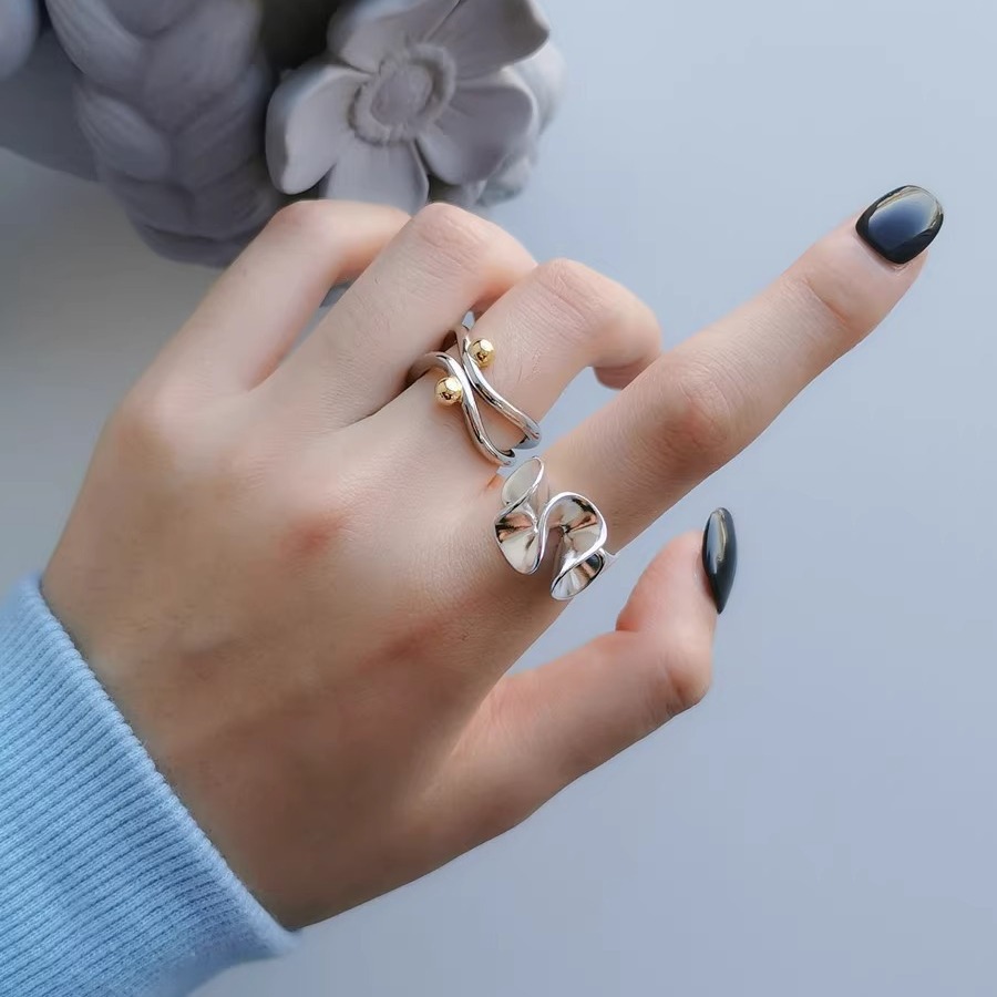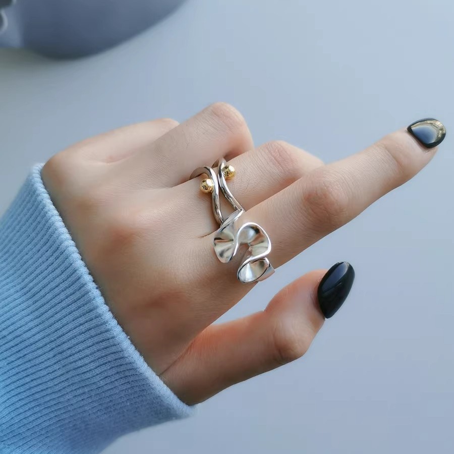 原创小众设计款戒指女简约高级几何线条荷叶边开口指环新