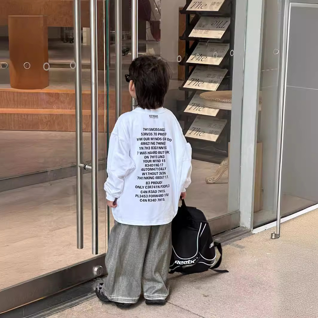 泰如春季新款韩版男童时尚字母宽松百搭长袖T恤儿童上衣潮