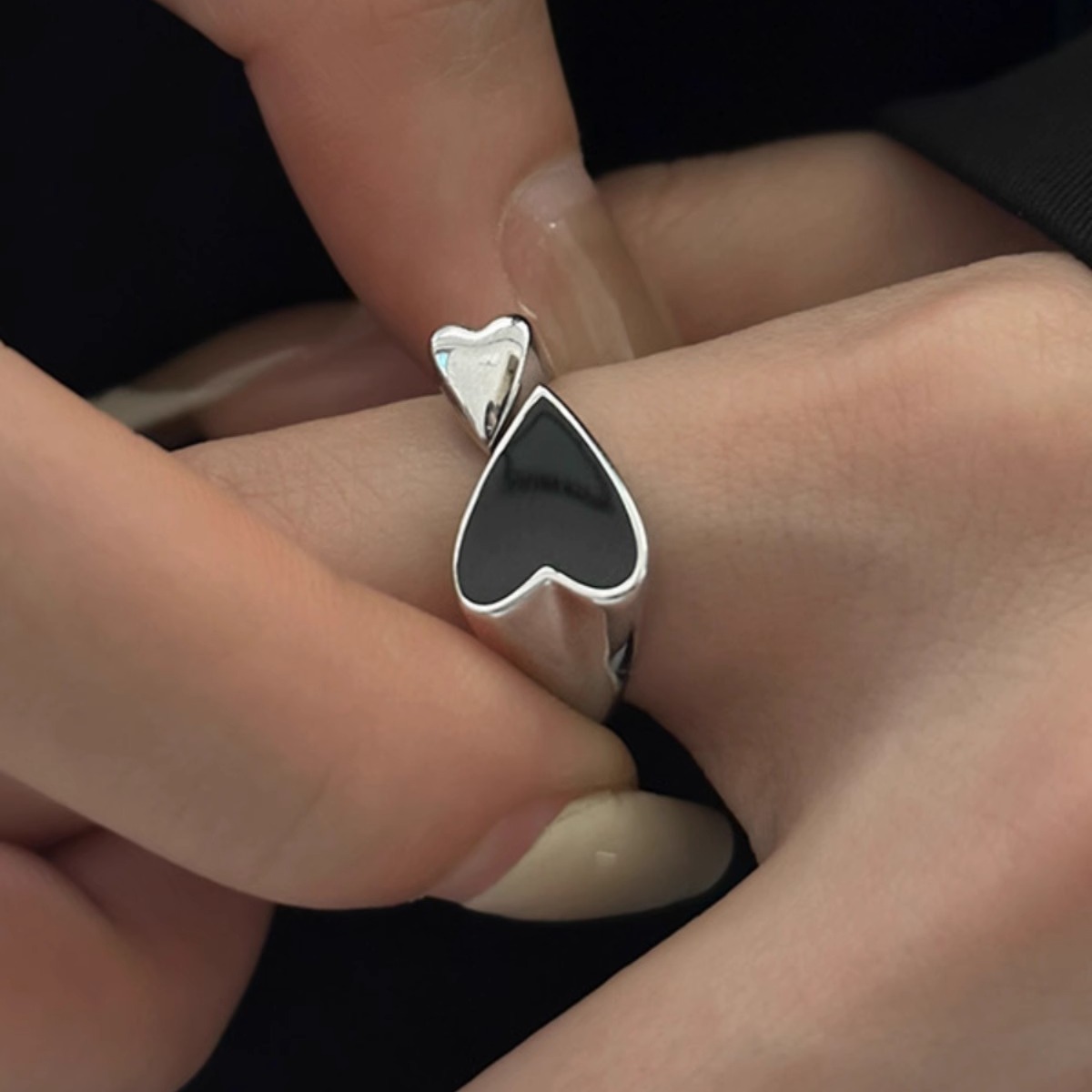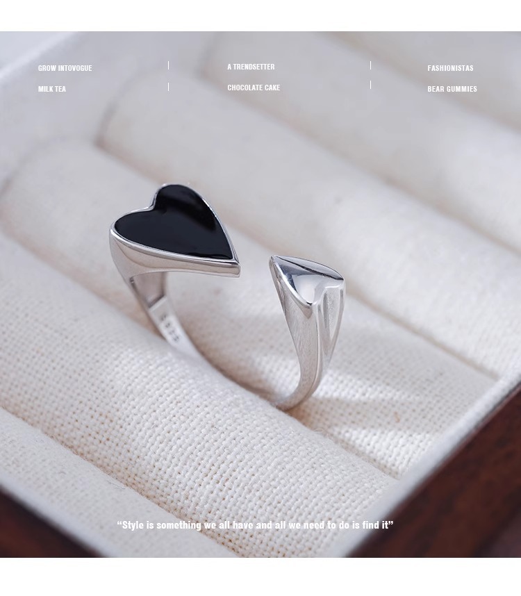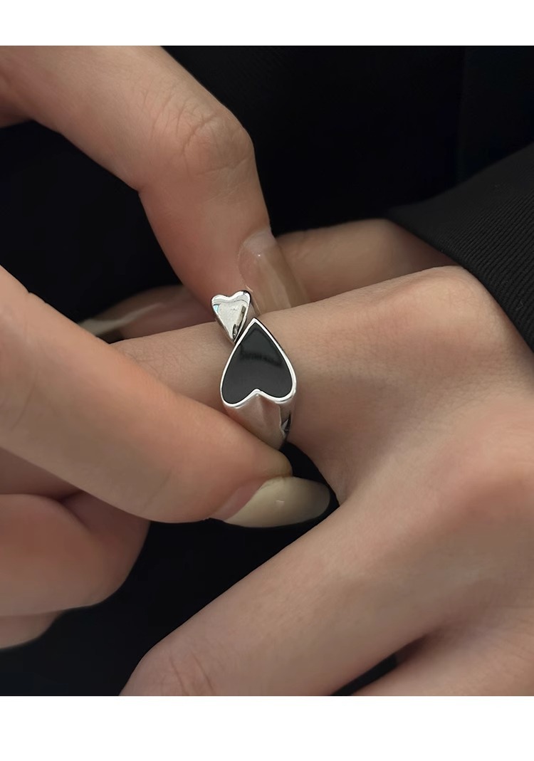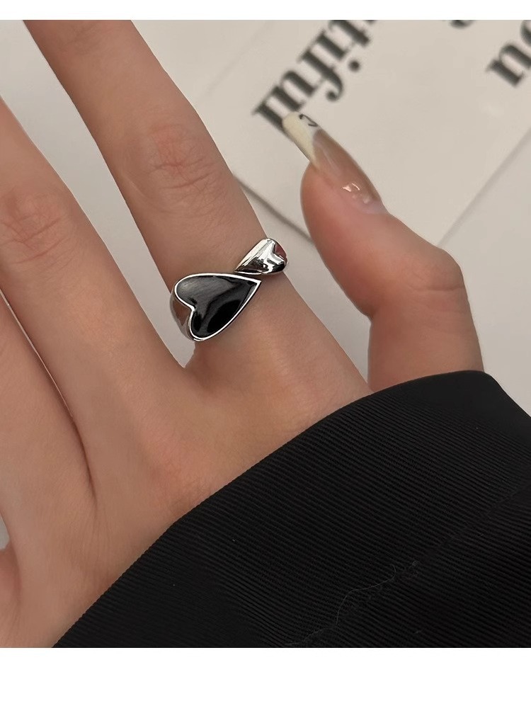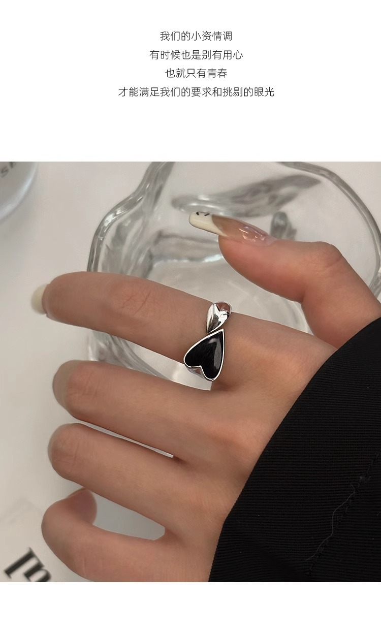 简约爱心戒指女时尚个性精致滴釉黑色桃心开口指环