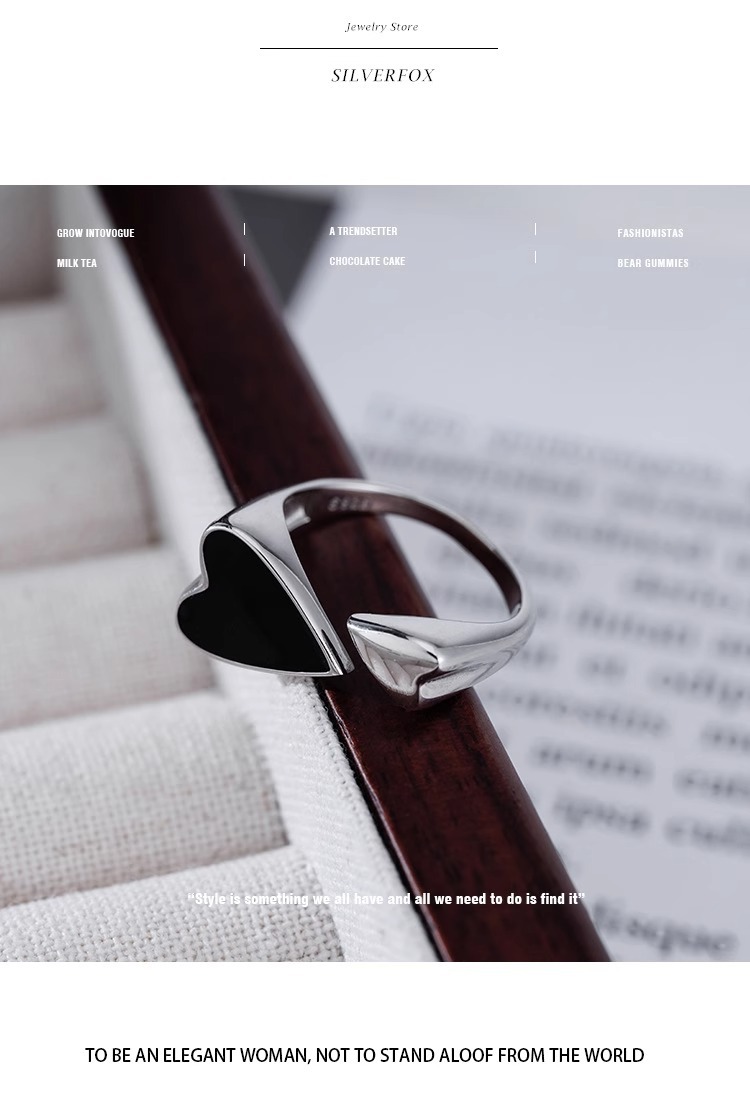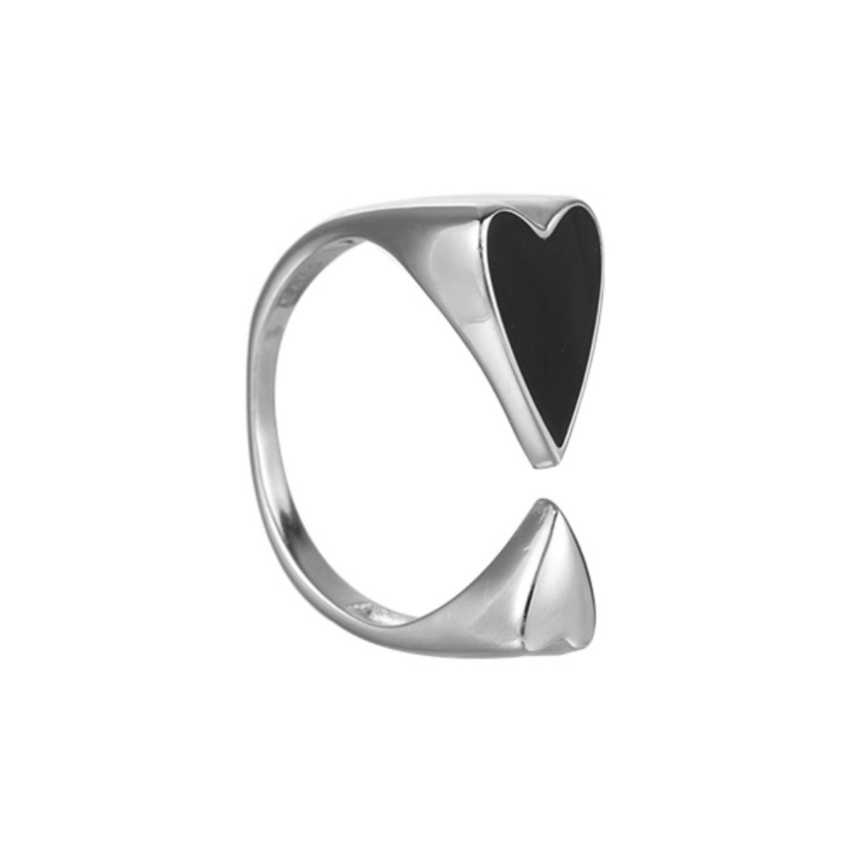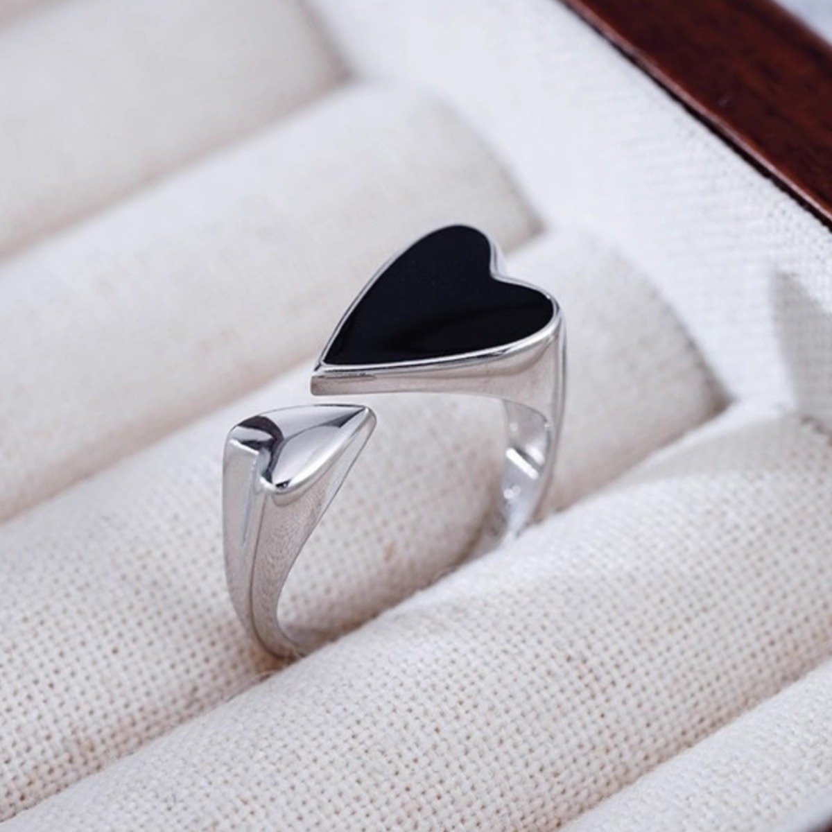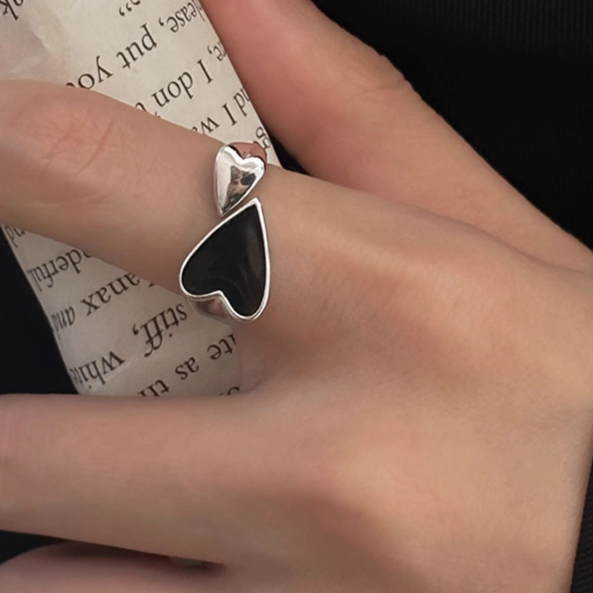简约爱心戒指女时尚个性精致滴釉黑色桃心开口指环