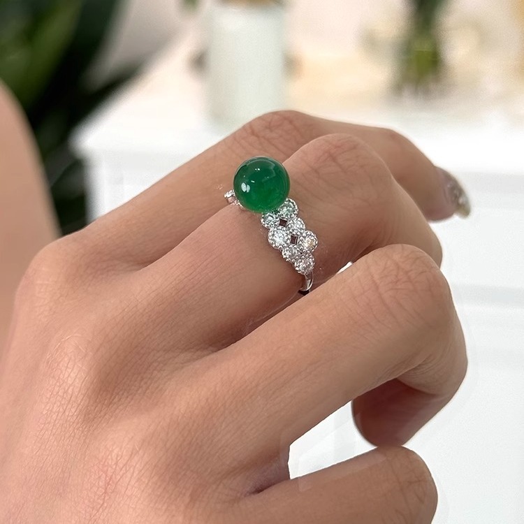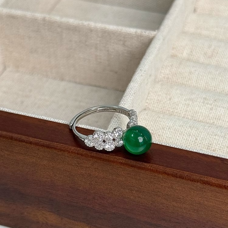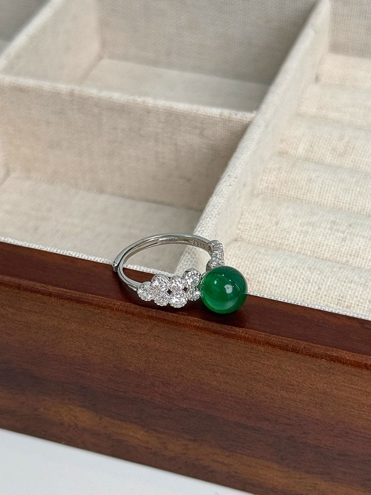 新中式显白绿玛瑙轻奢戒指高级感小众设计气质食指戒