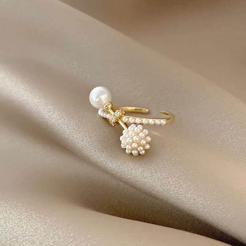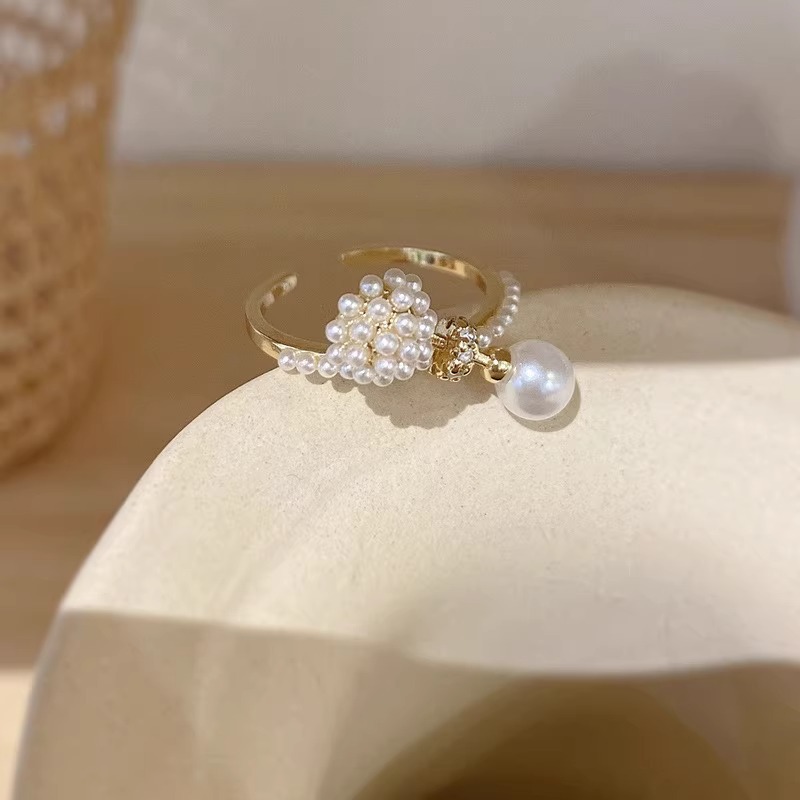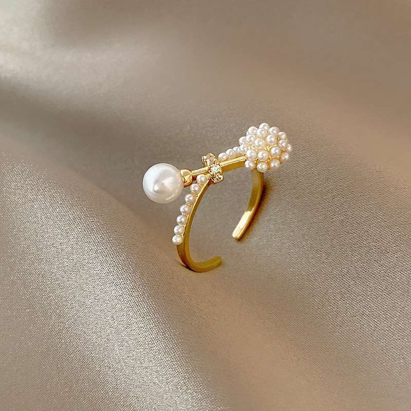 AILIGE 复古戒指巴洛克珍珠个性港风气质开口食指戒轻奢百搭配饰