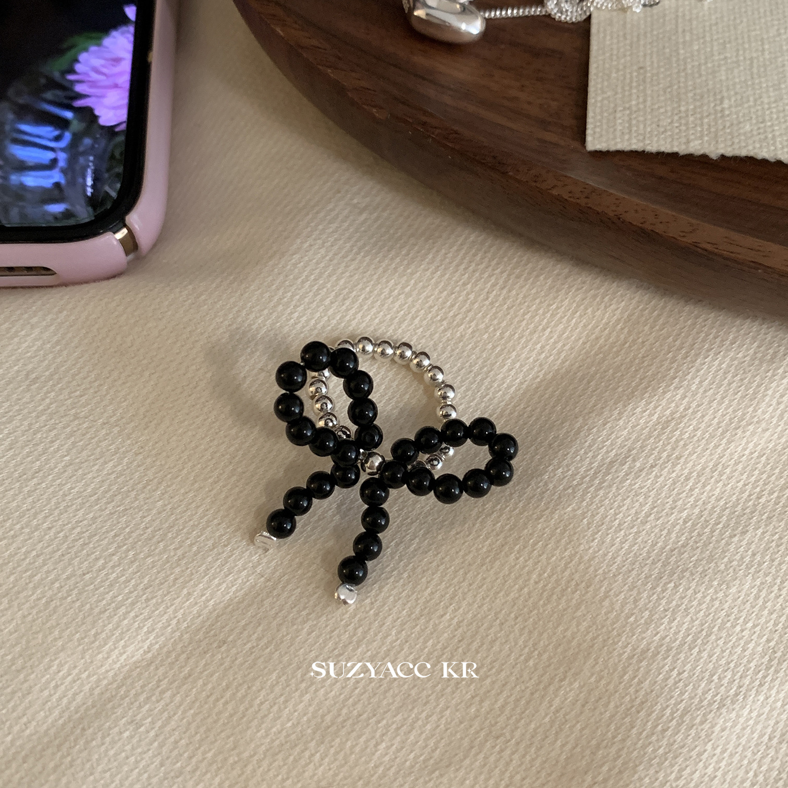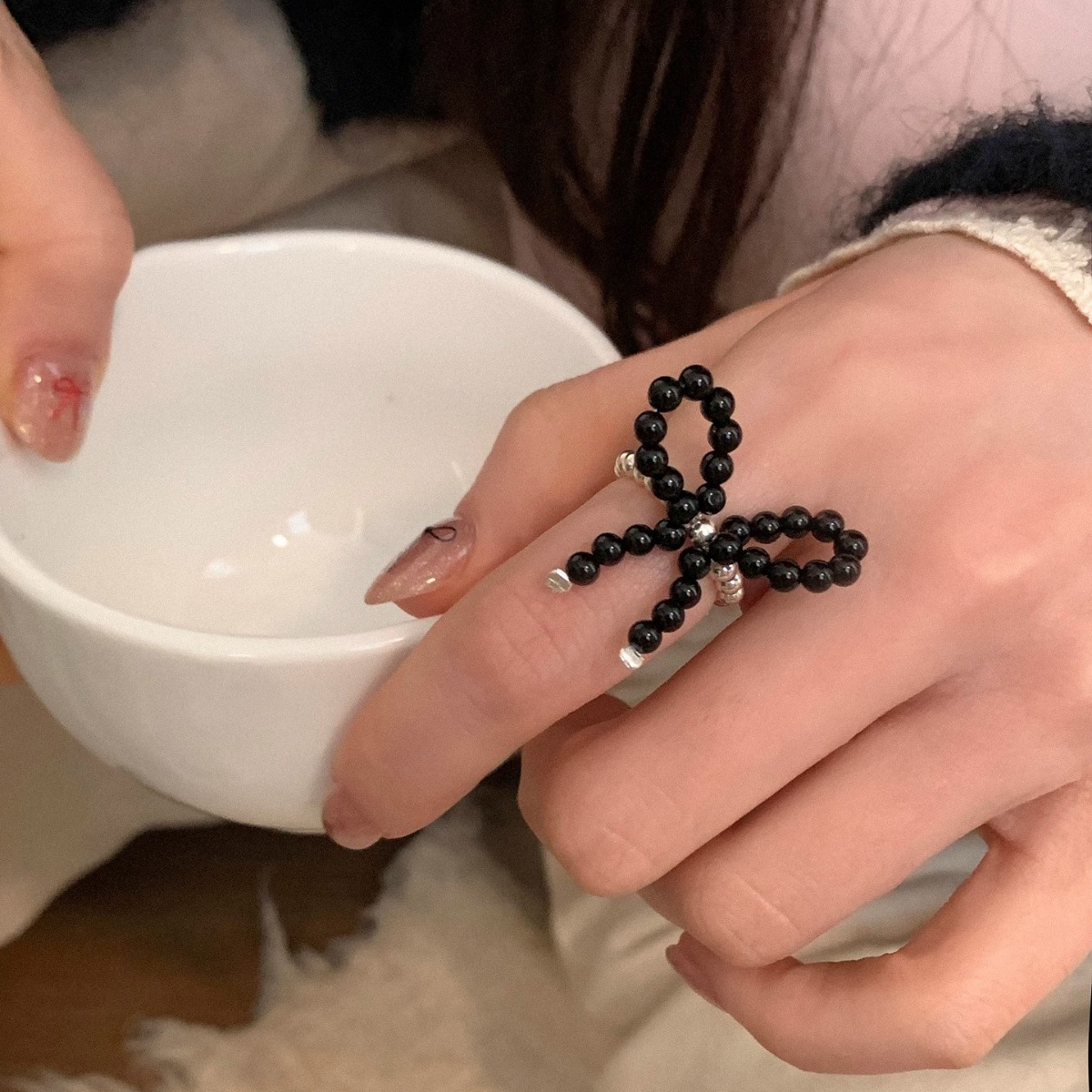 轻奢高级感手工蝴蝶结黑玛瑙戒指纯欲小众设计指环