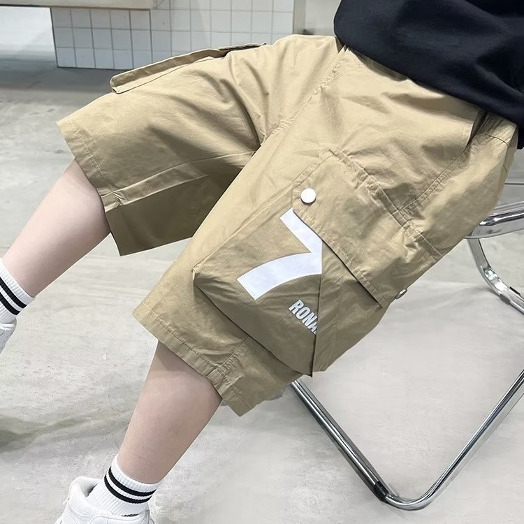 童装工装短裤男童日系潮牌大口袋工装水洗短裤男孩运动休闲五分裤