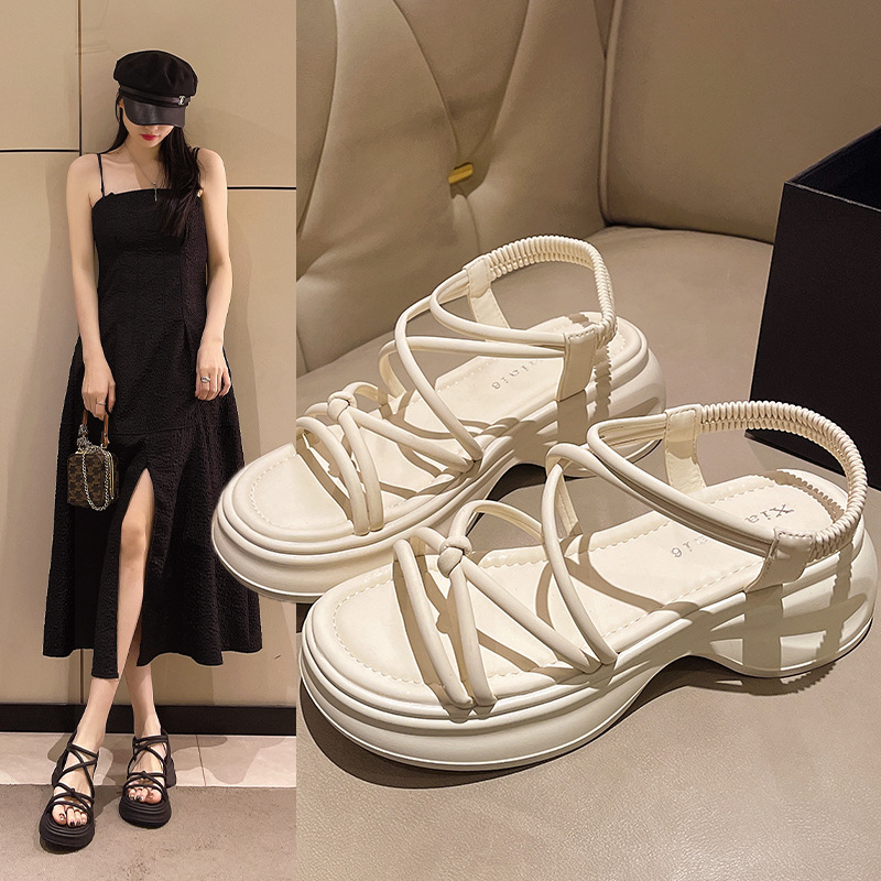 凉鞋女外穿高级感2025夏季新款法式小众松糕厚底配裙子罗马沙滩鞋