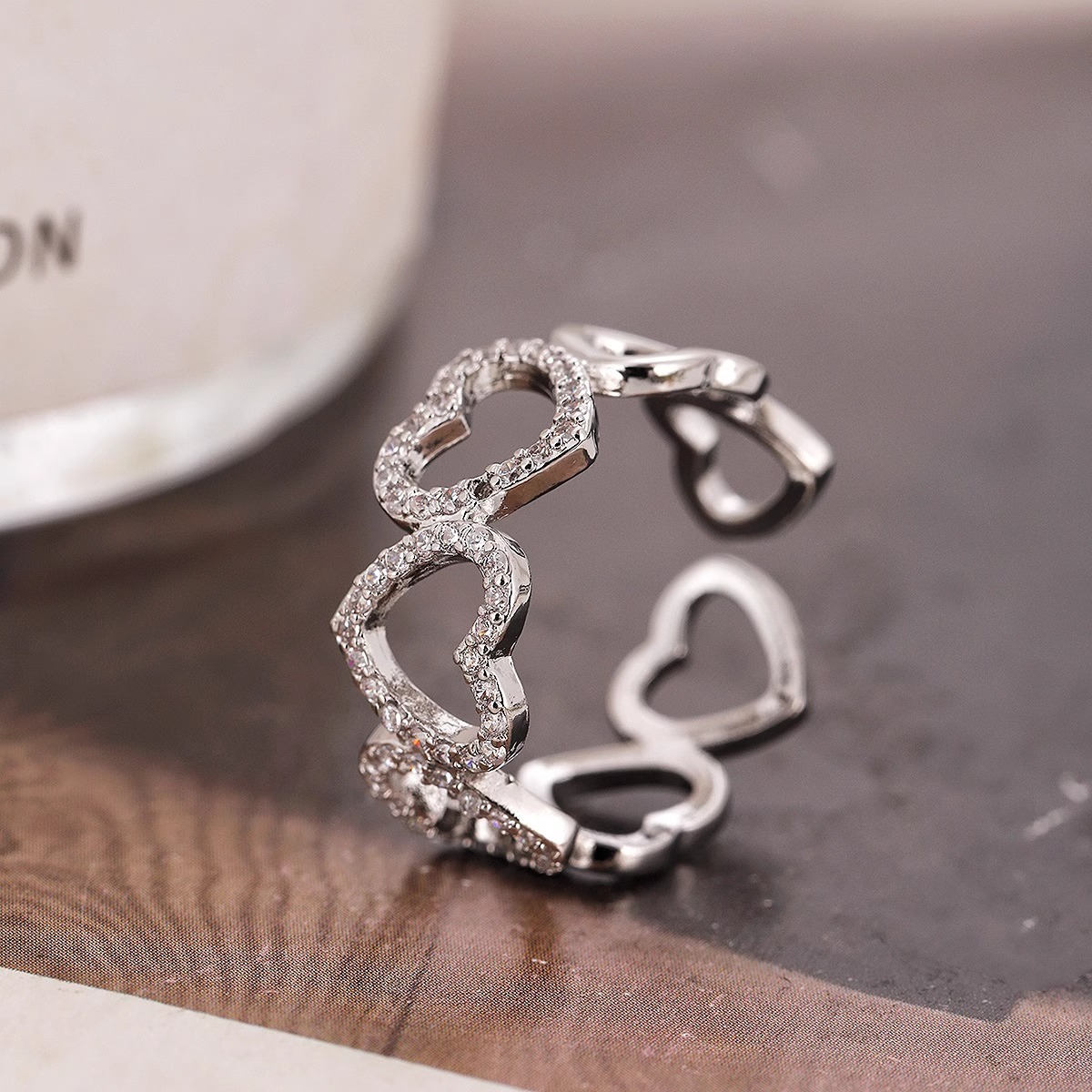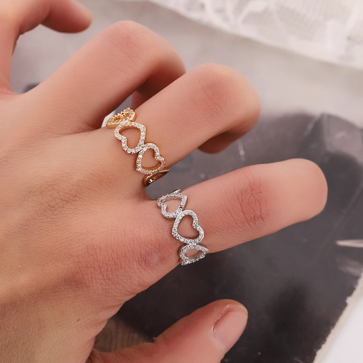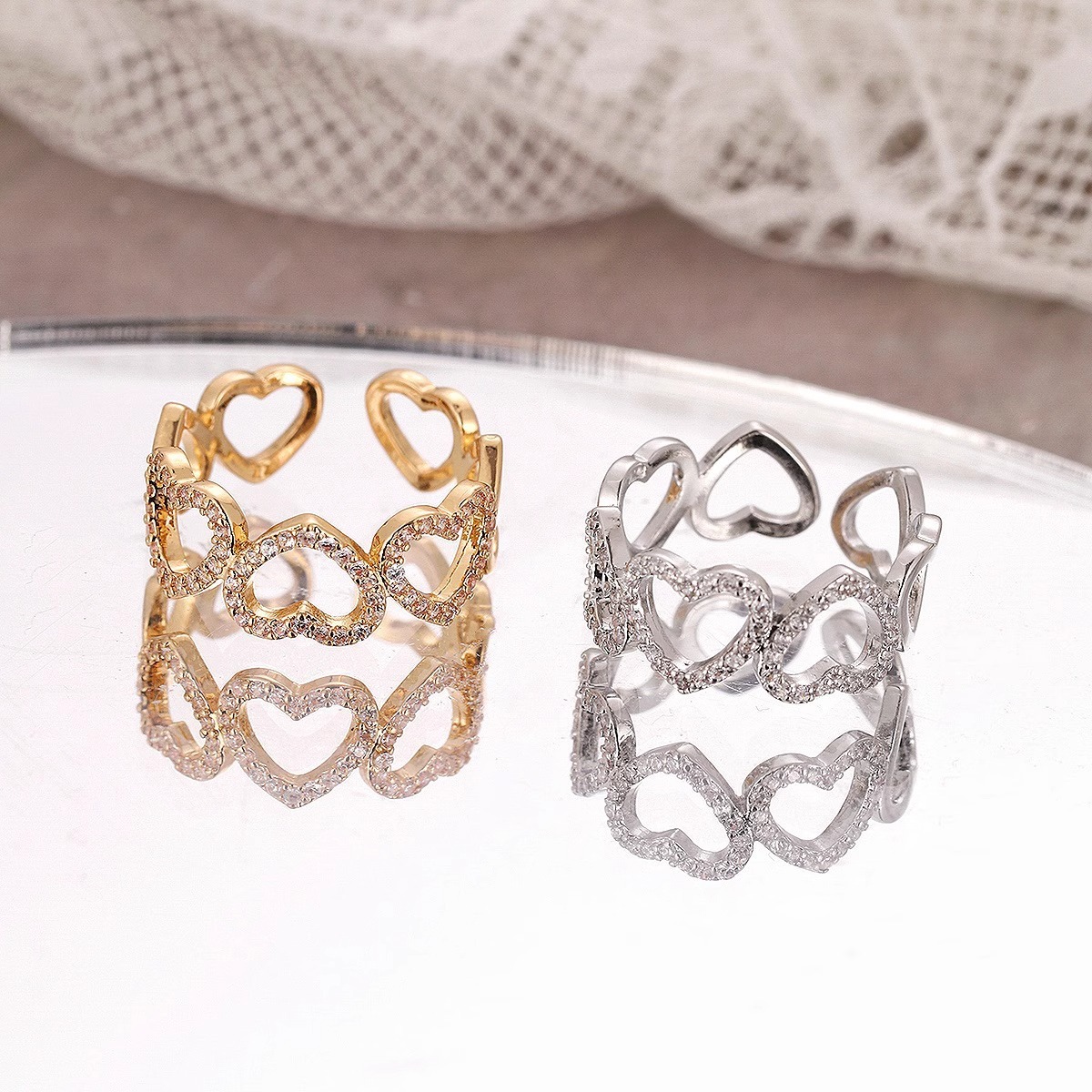 高级感铜镶锆石开口戒指女网红时尚个性多个爱心水钻设计手指饰品