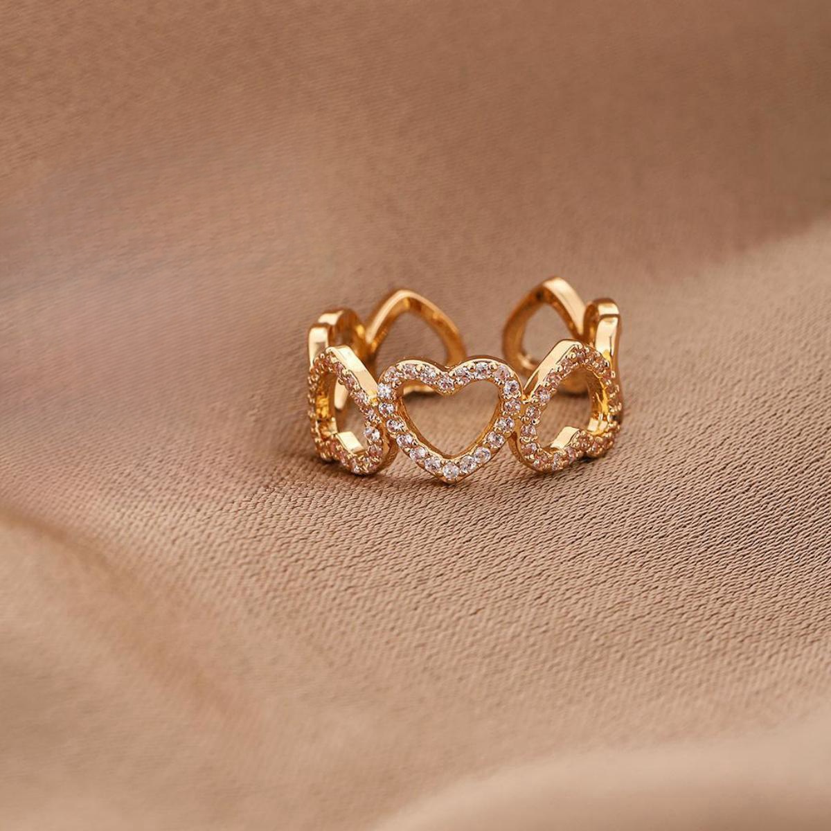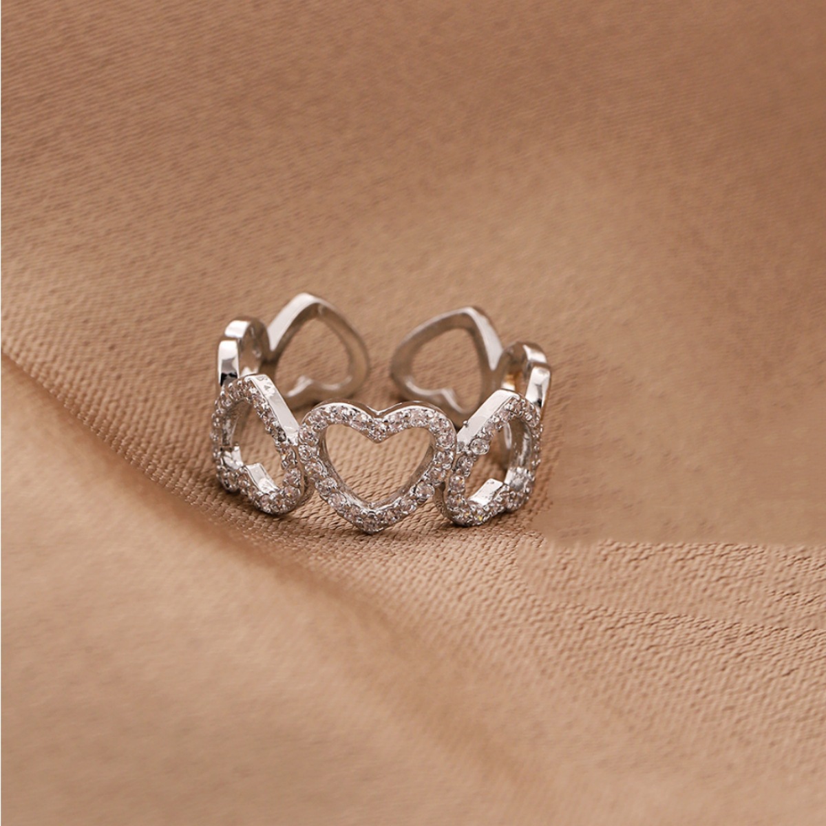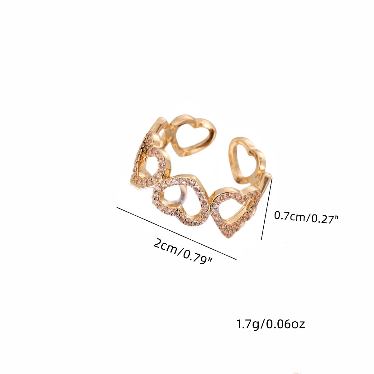 高级感铜镶锆石开口戒指女网红时尚个性多个爱心水钻设计手指饰品