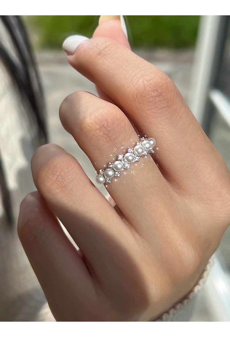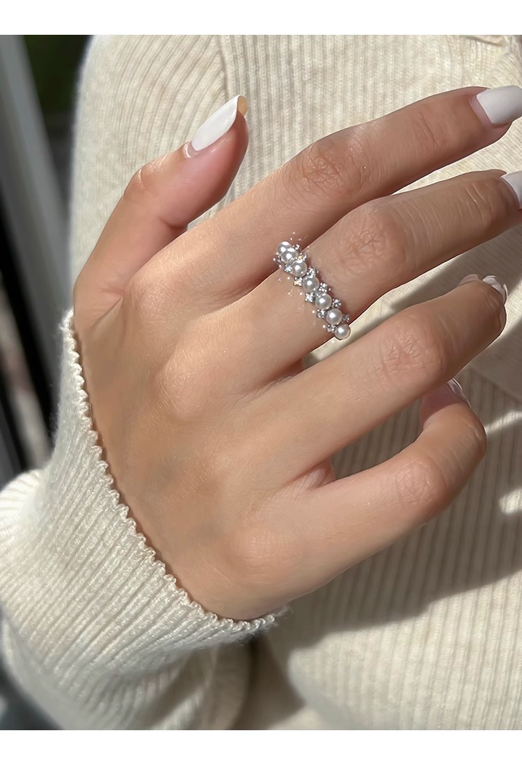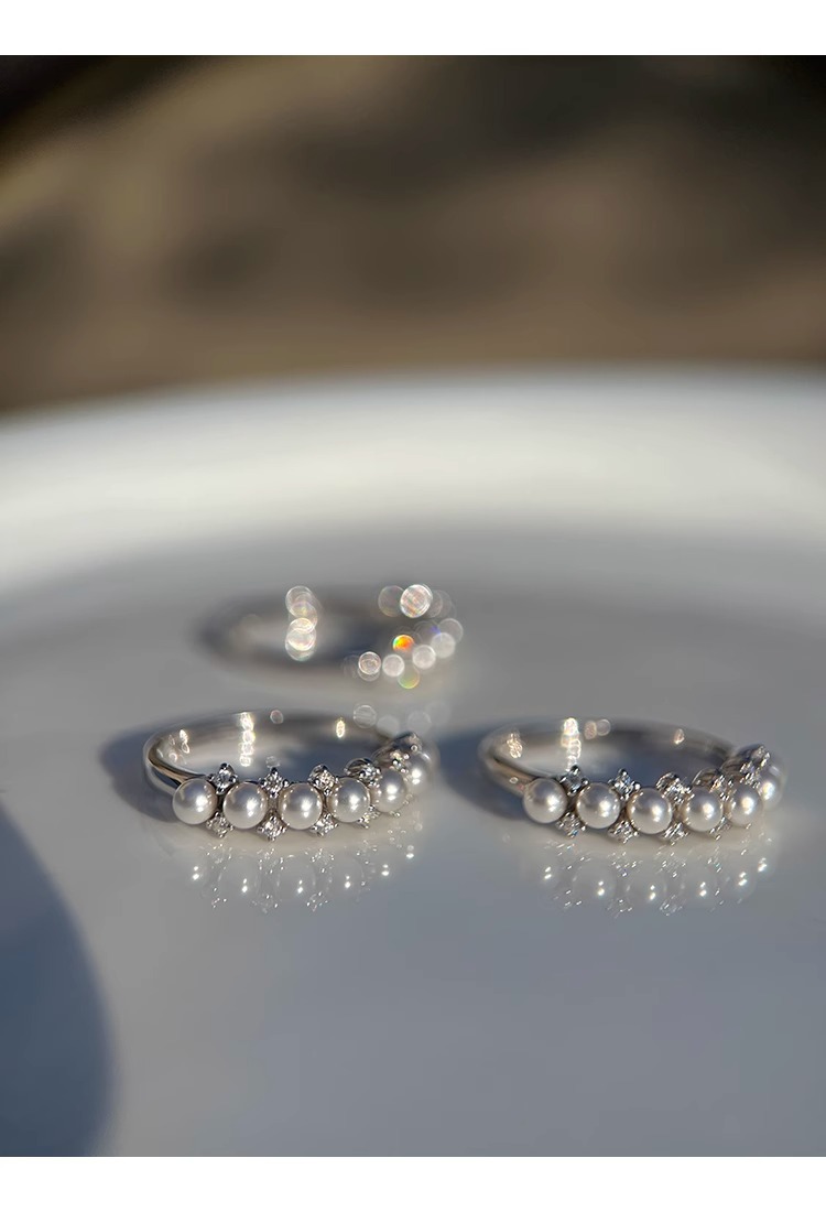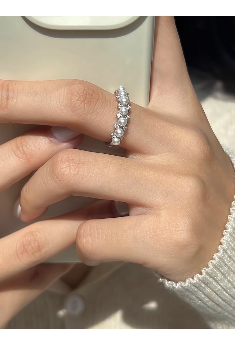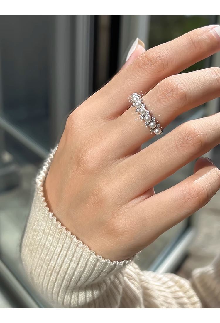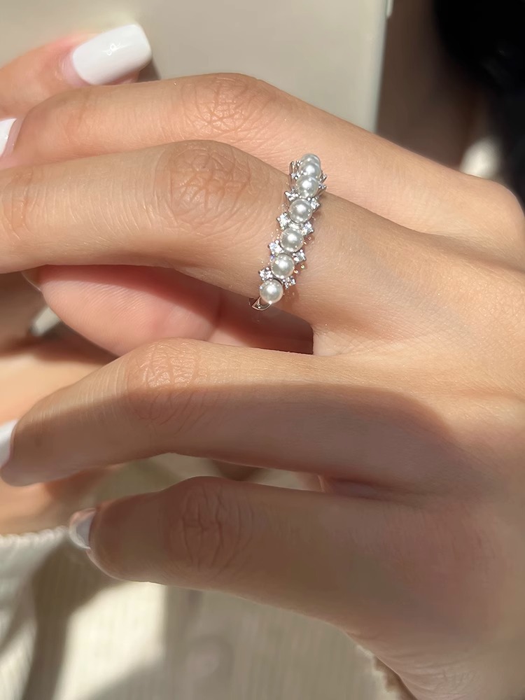 方糖家纤细版/满天星奥地利施家珍珠纯银戒指轻奢气质精致指环女