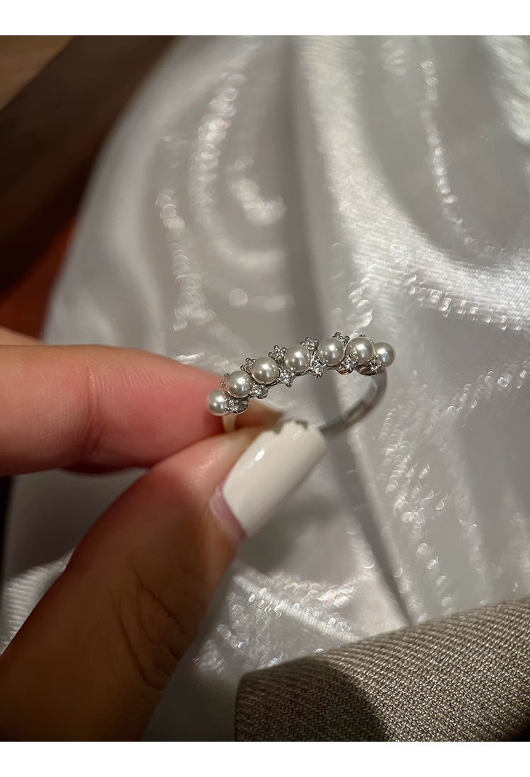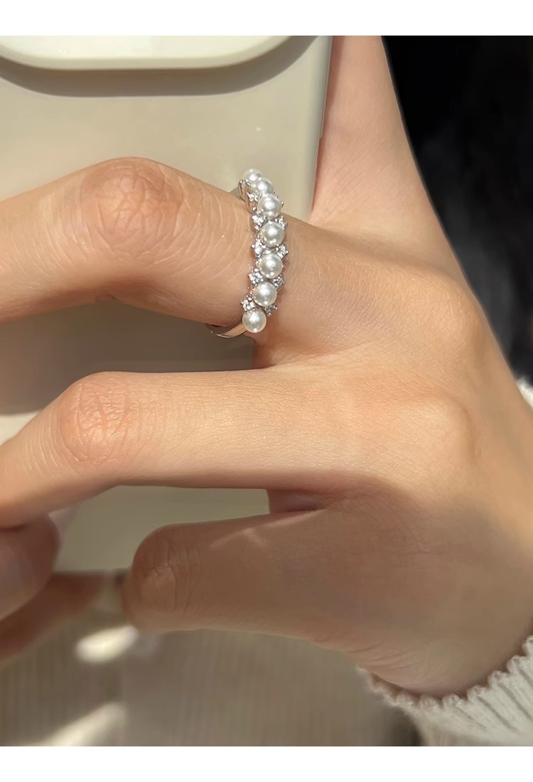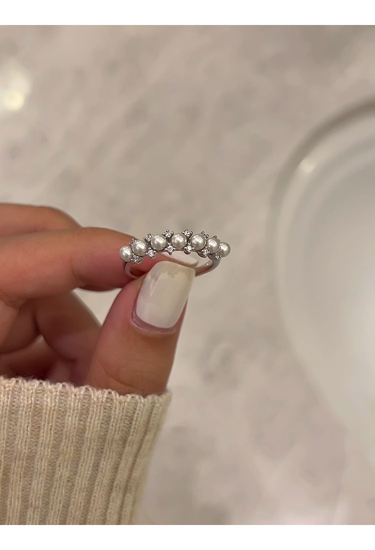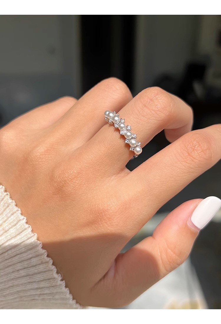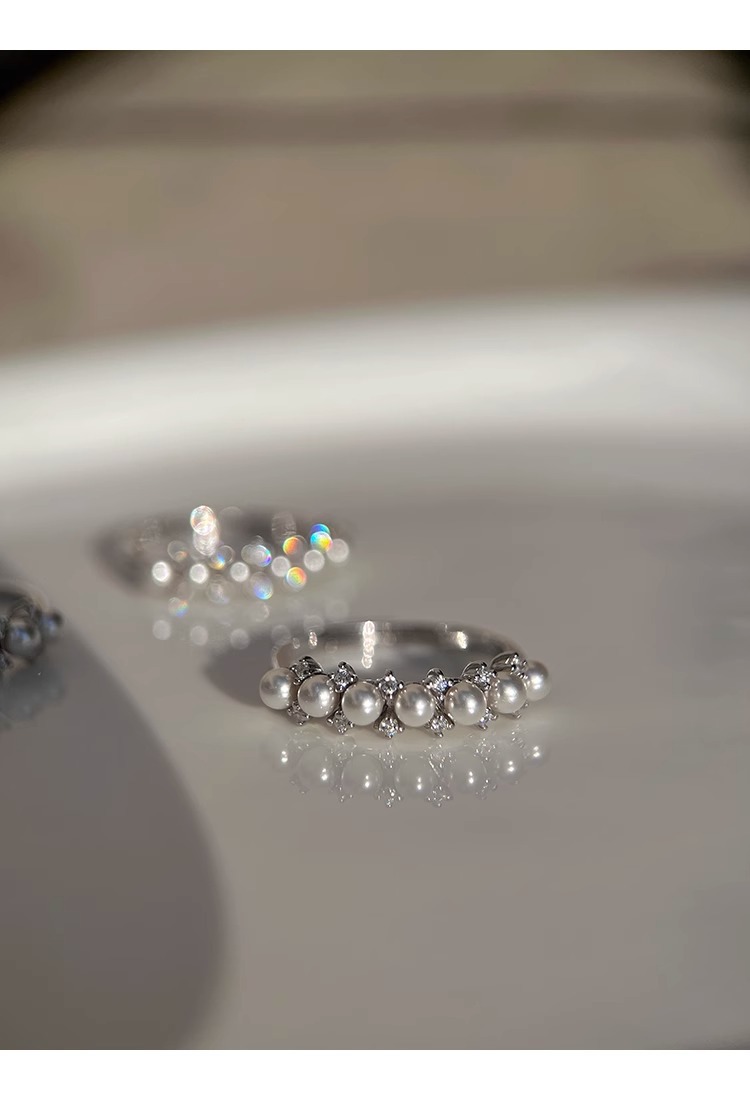 方糖家纤细版/满天星奥地利施家珍珠纯银戒指轻奢气质精致指环女
