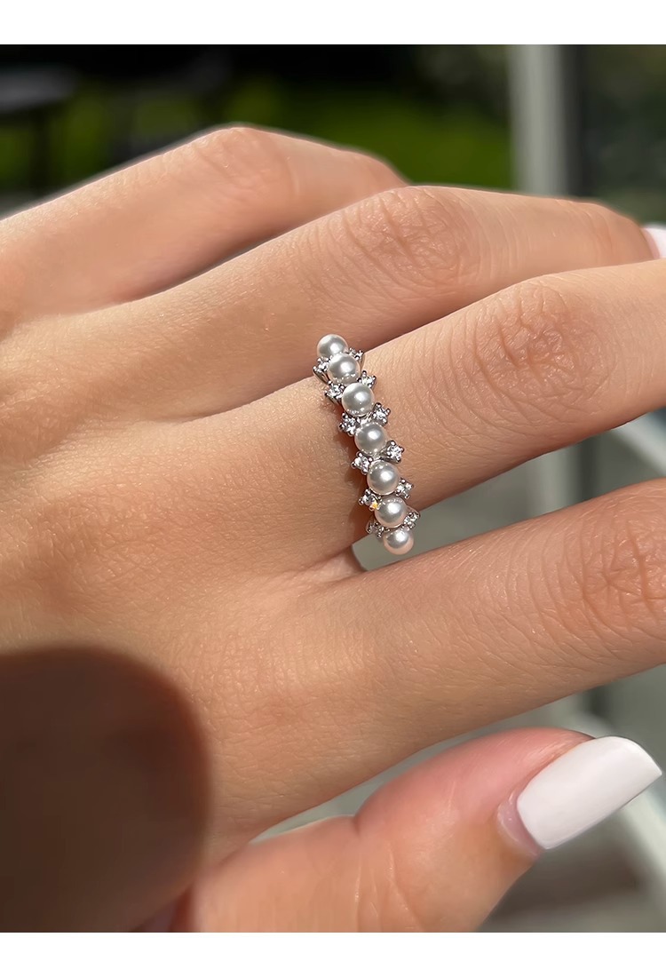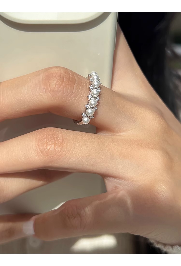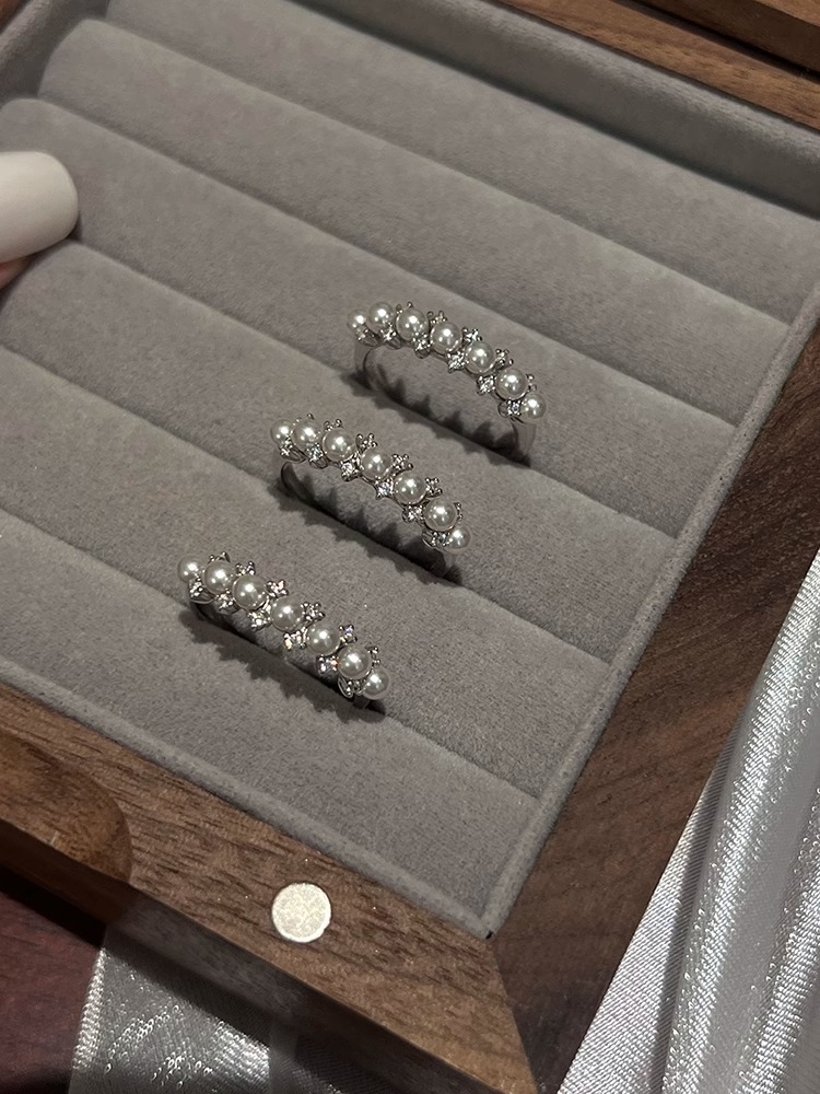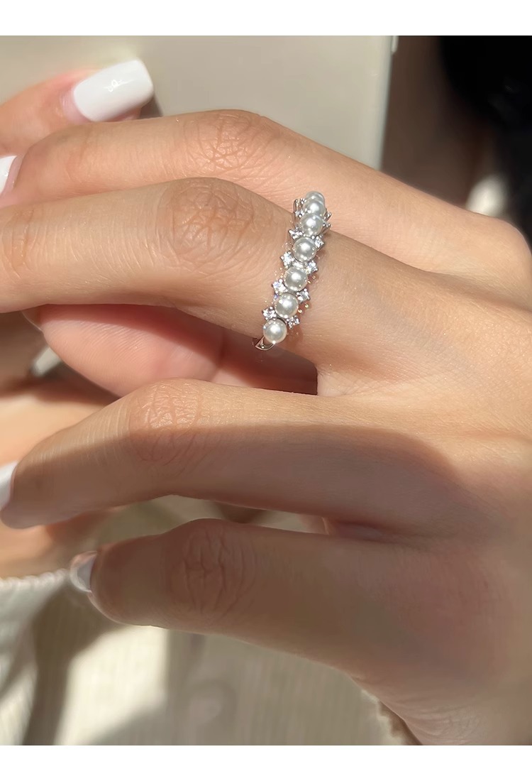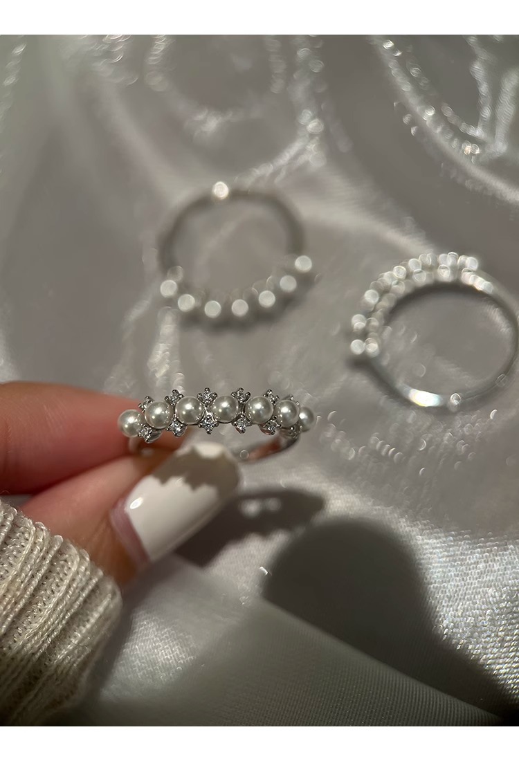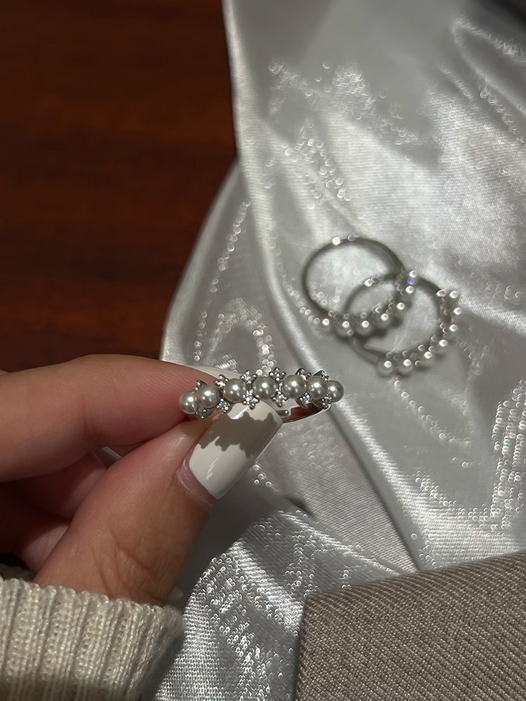 方糖家纤细版/满天星奥地利施家珍珠纯银戒指轻奢气质精致指环女