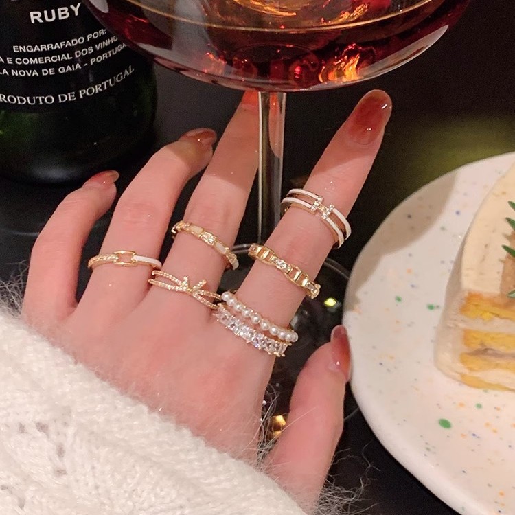 百搭开口戒指合集女小众设计蝴蝶结珍珠食指戒小众轻奢高级感独特