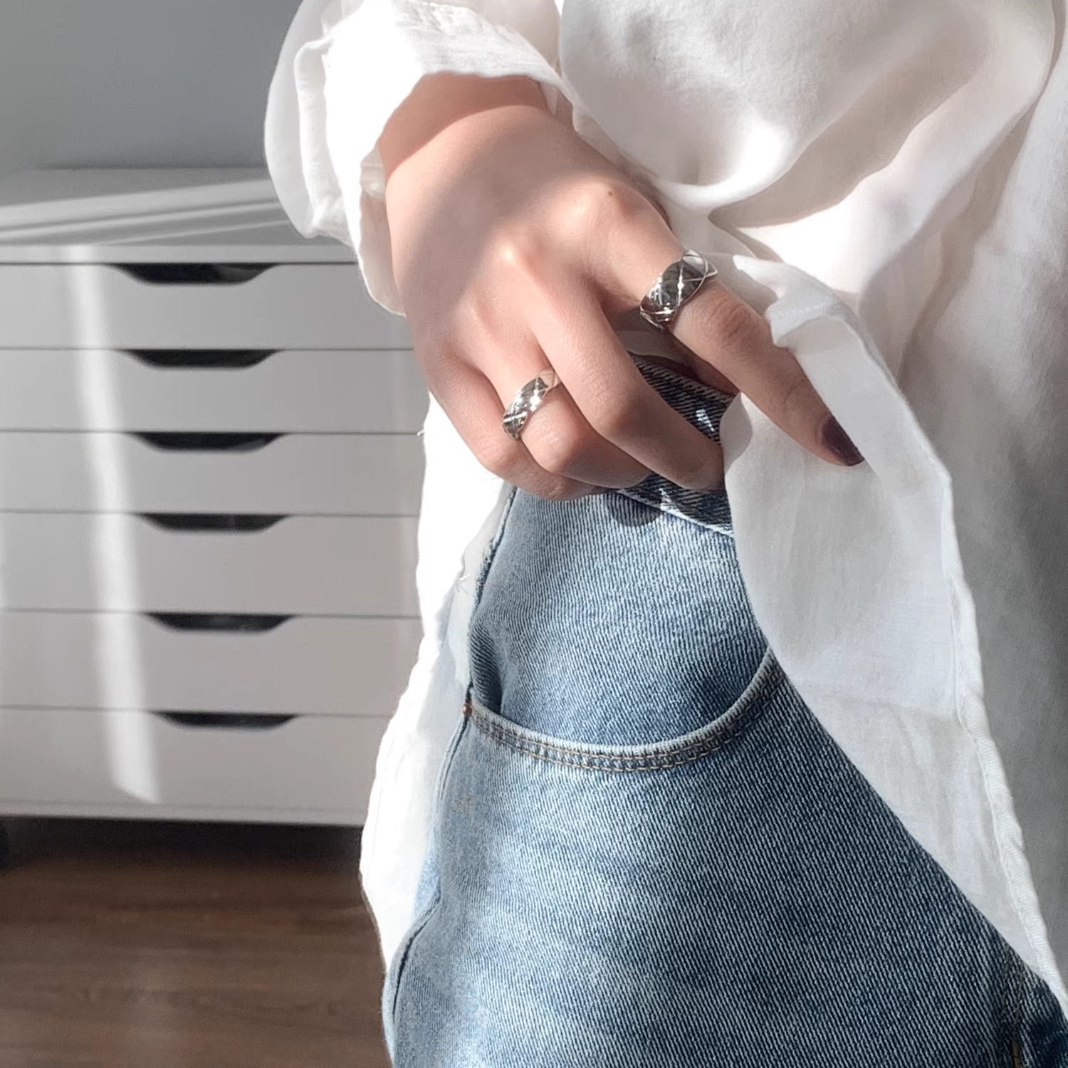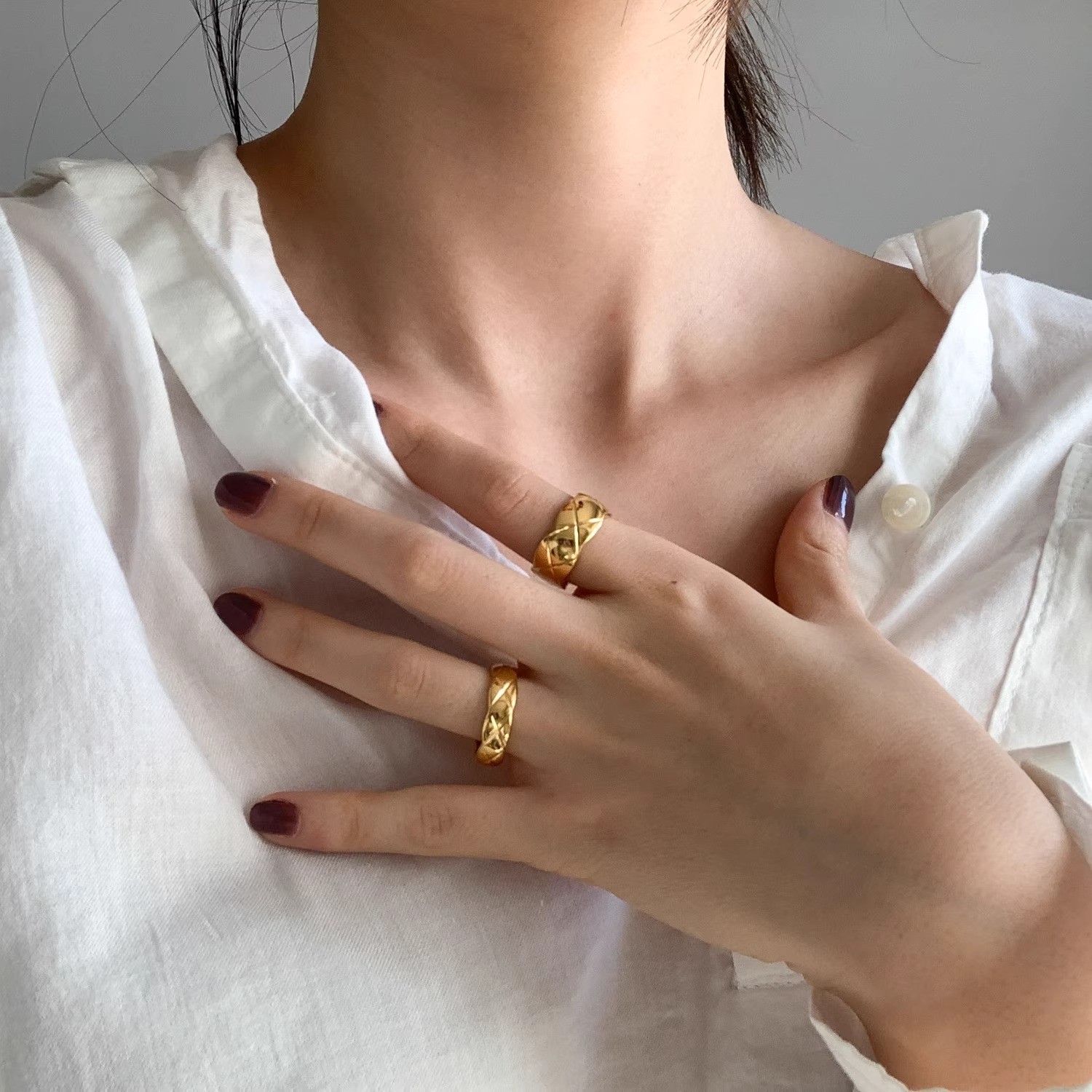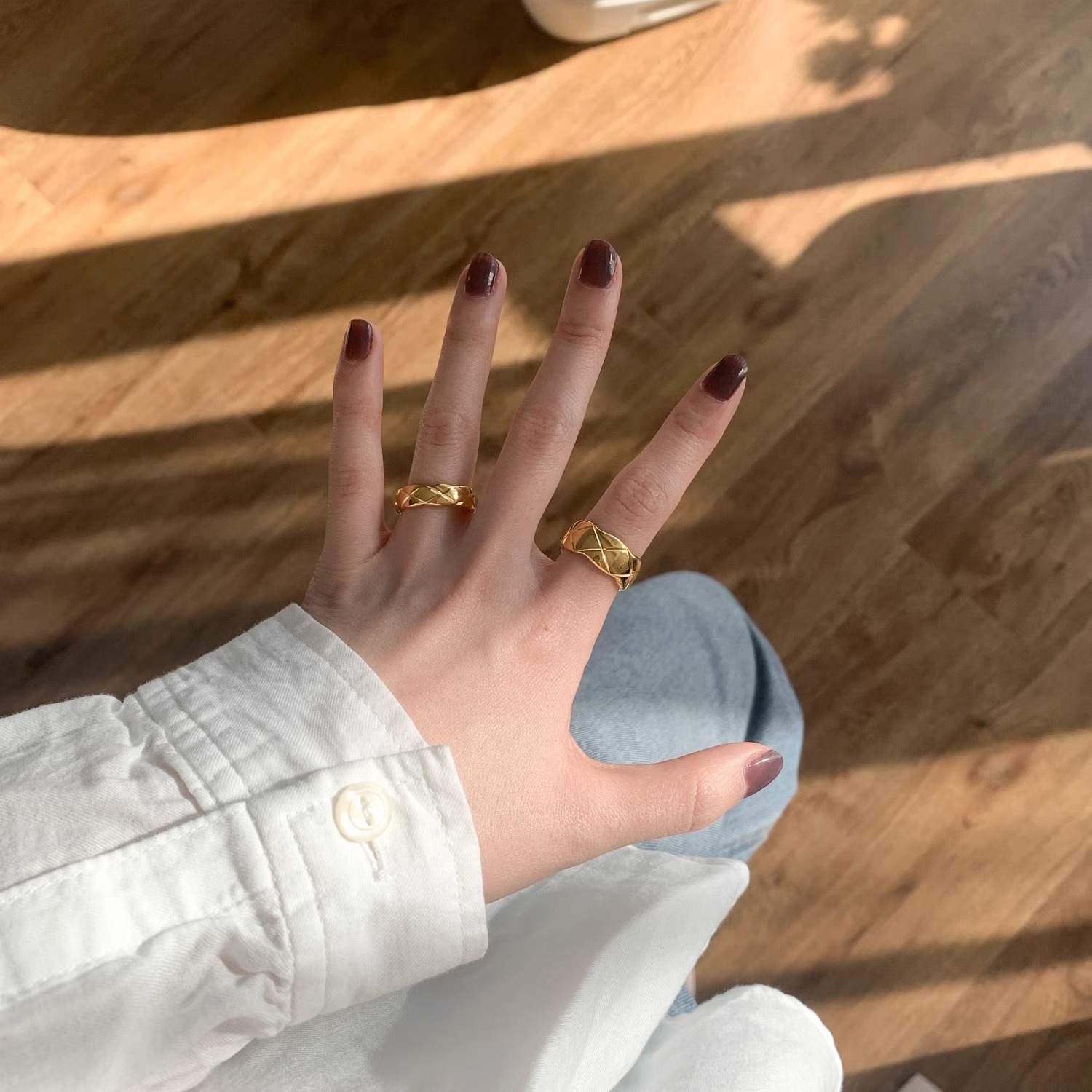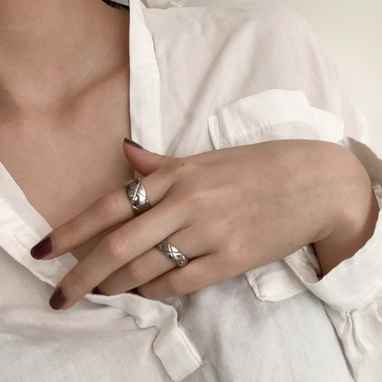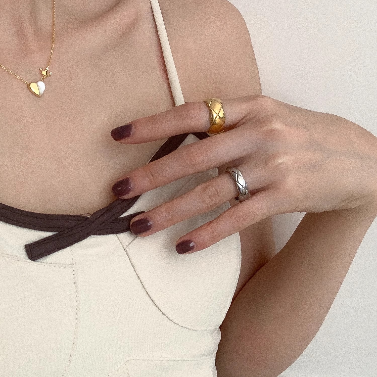 不要问 时髦小姐欧美百搭菱格戒指ins叠戴宽版窄指环经典