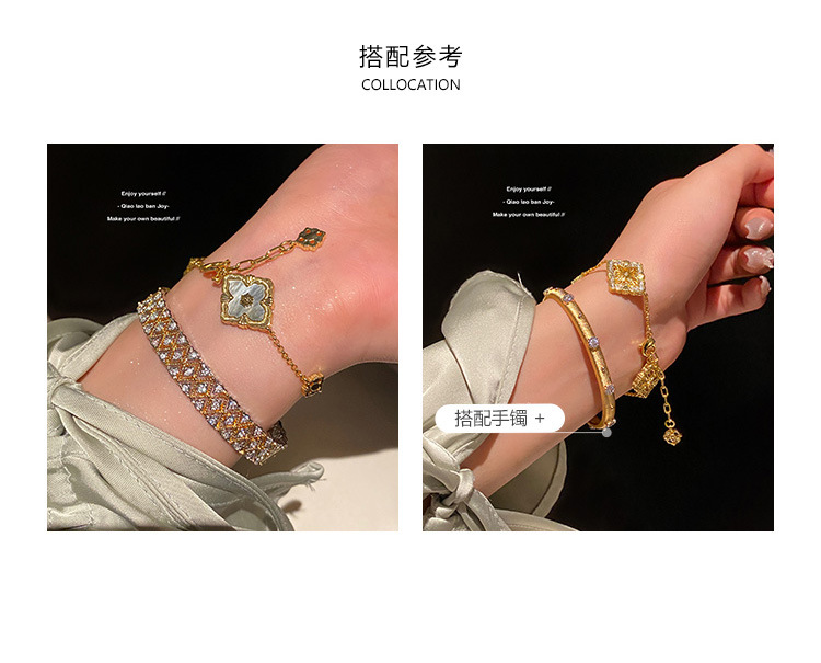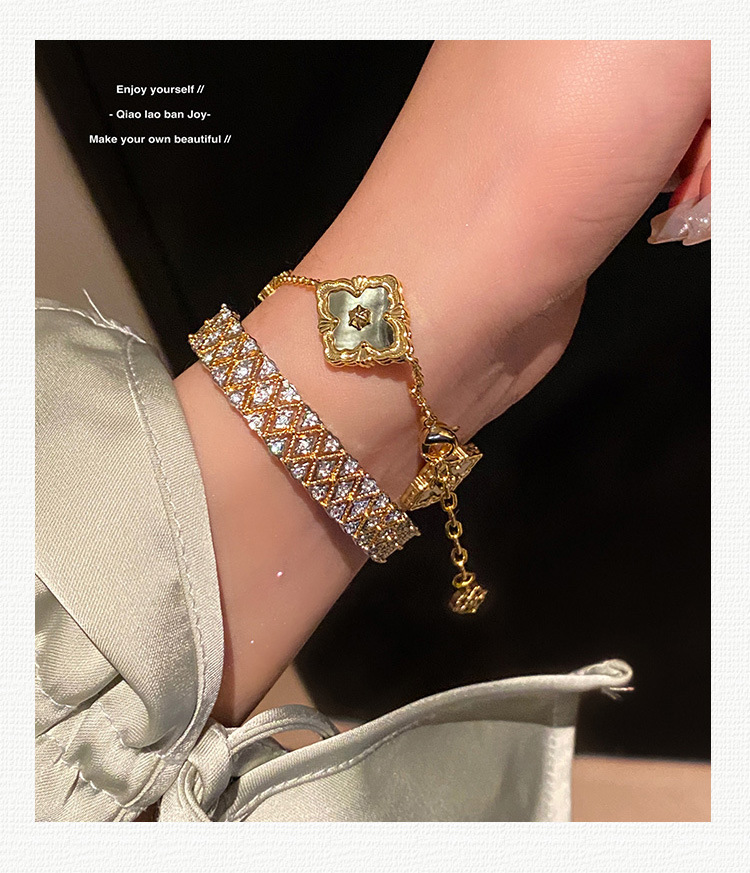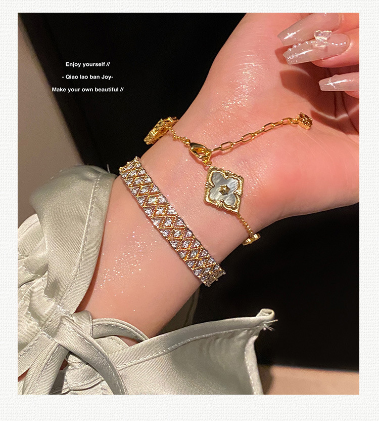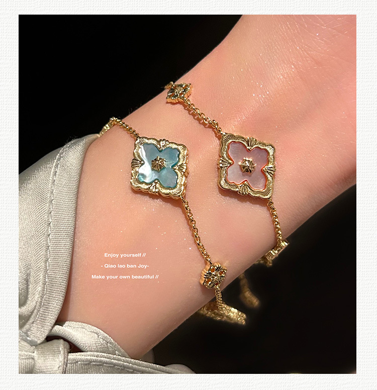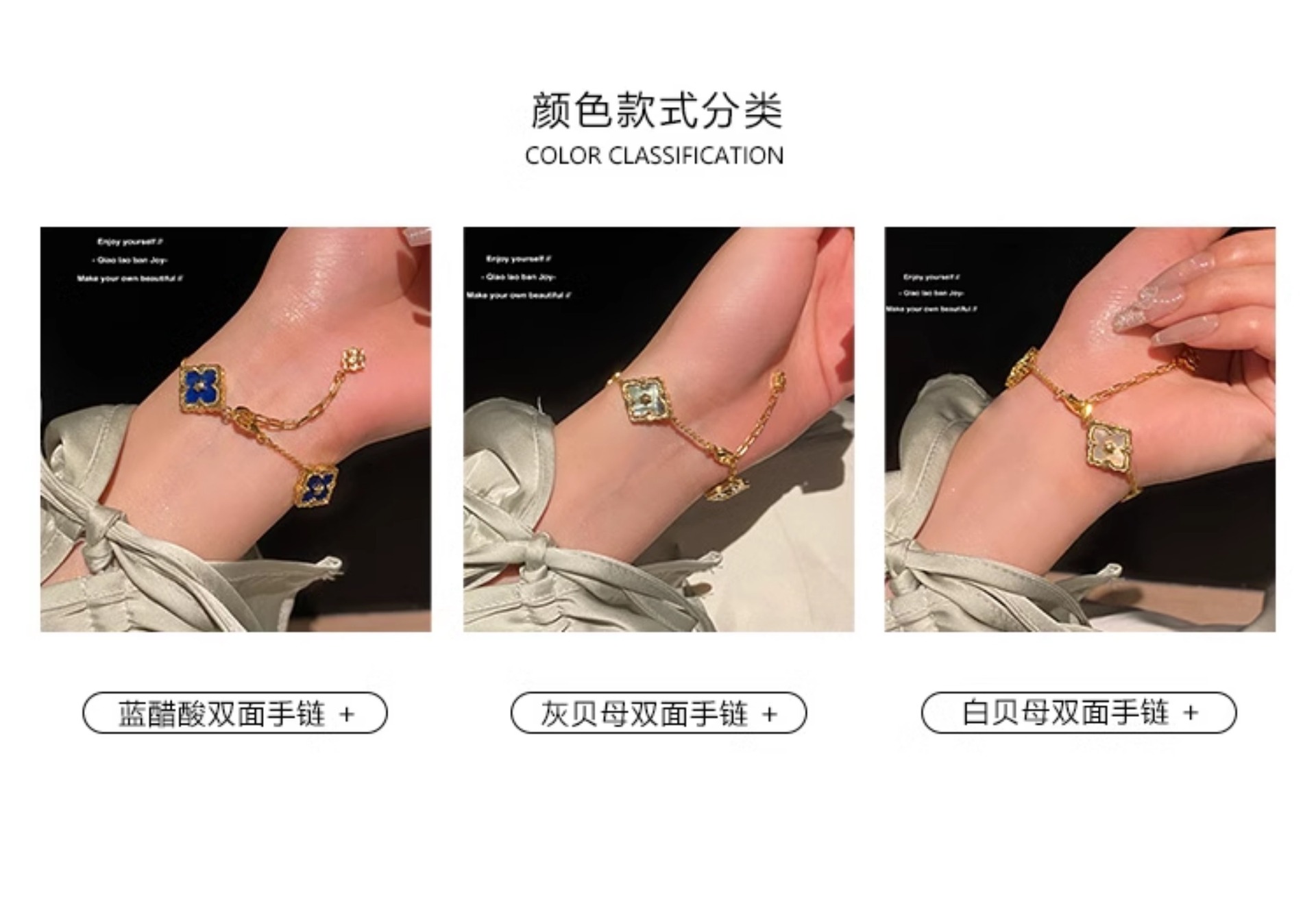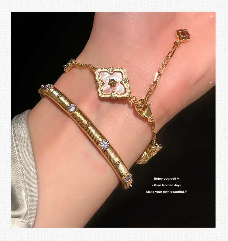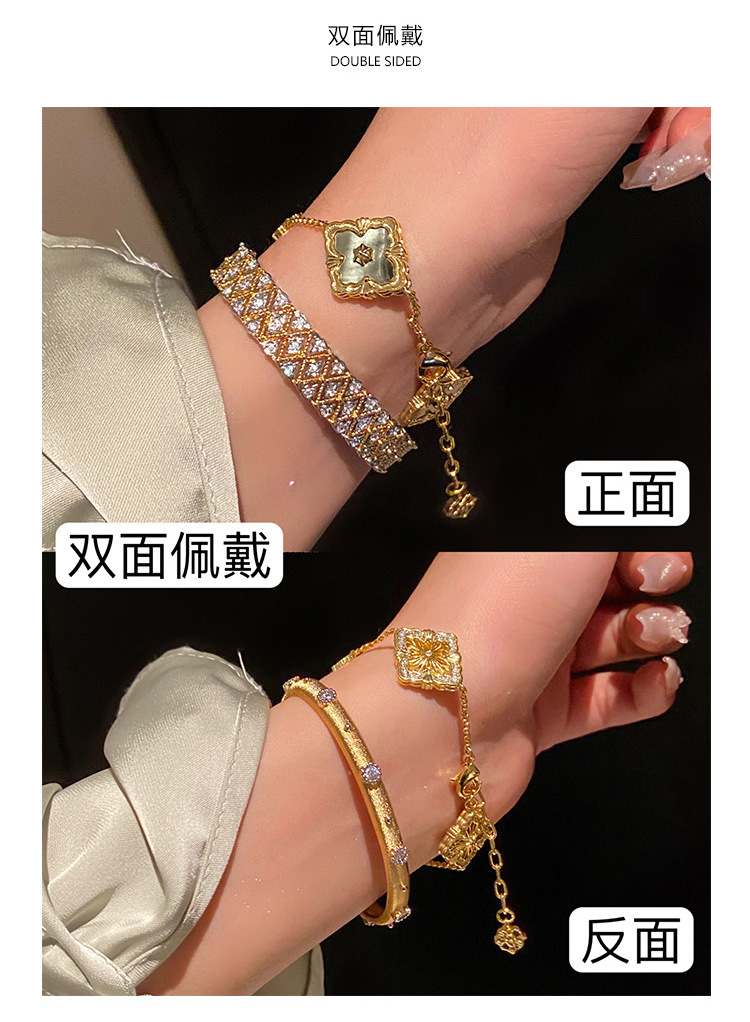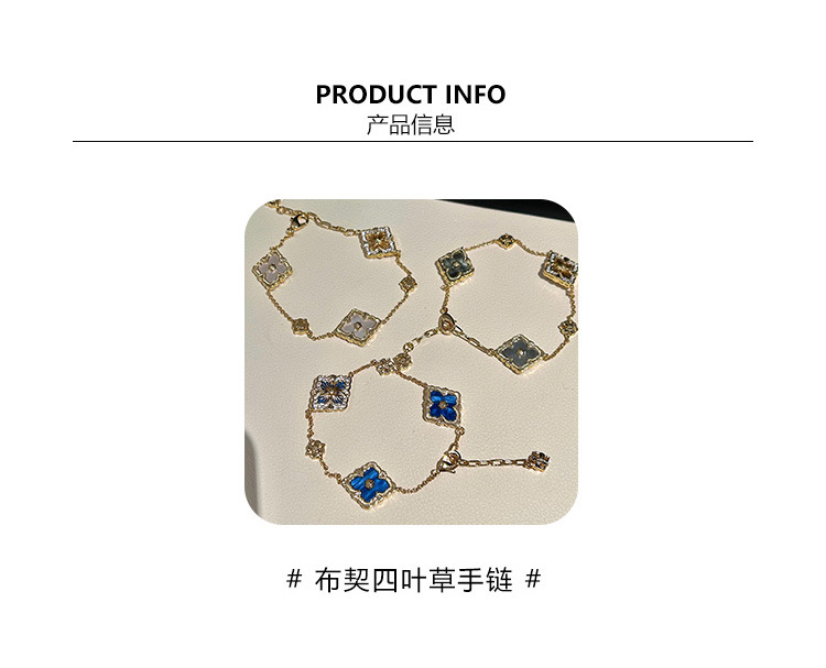 布契四叶草手链双面闪钻手镯贝母高级质感轻奢复古