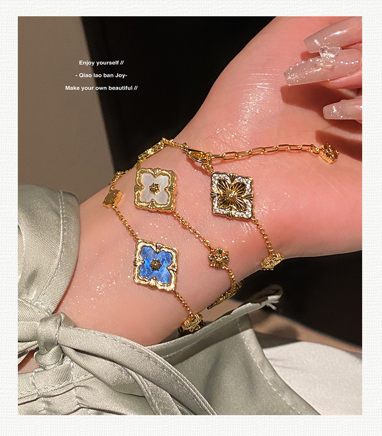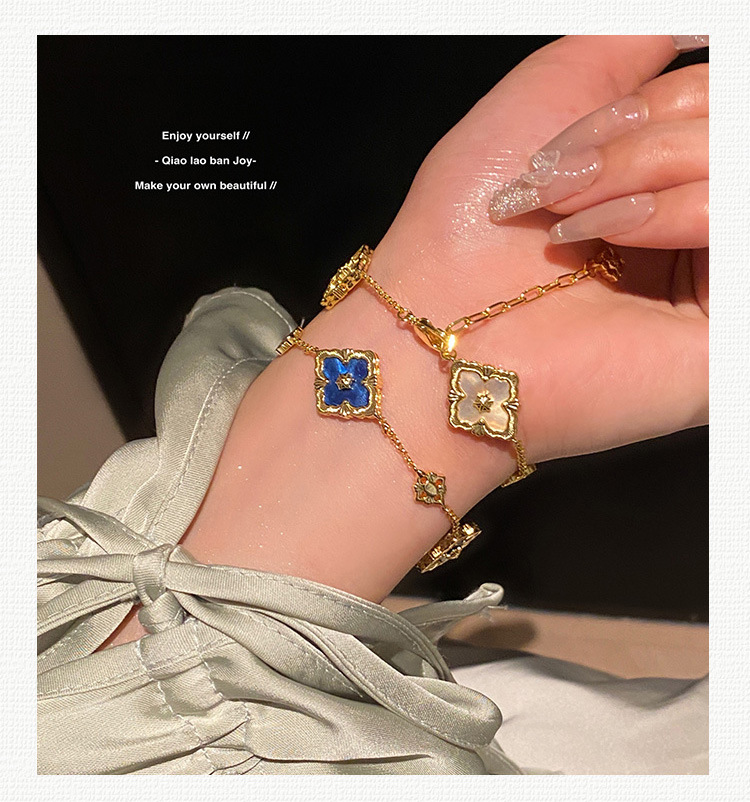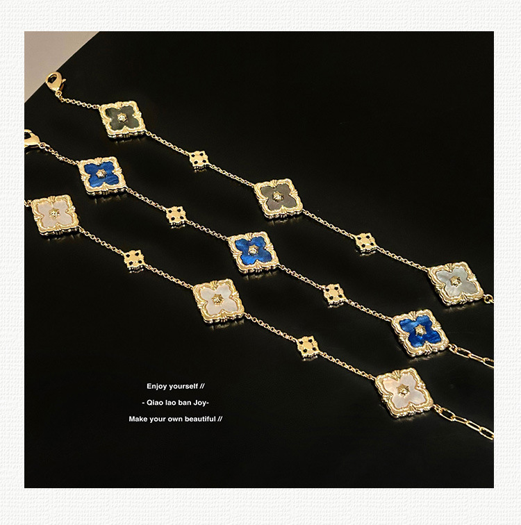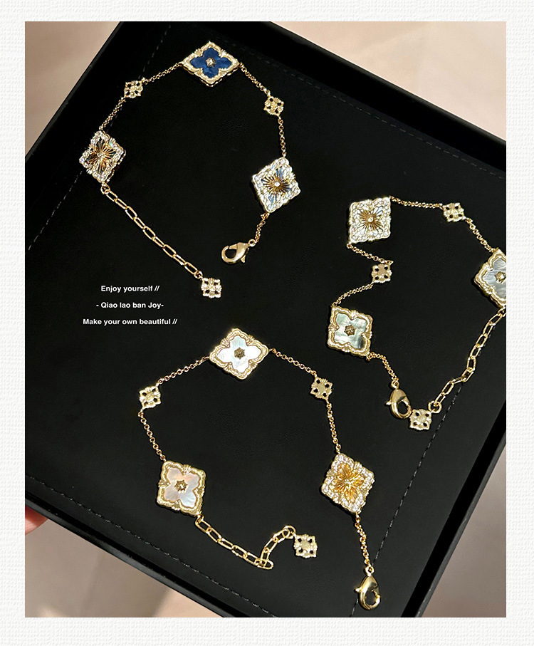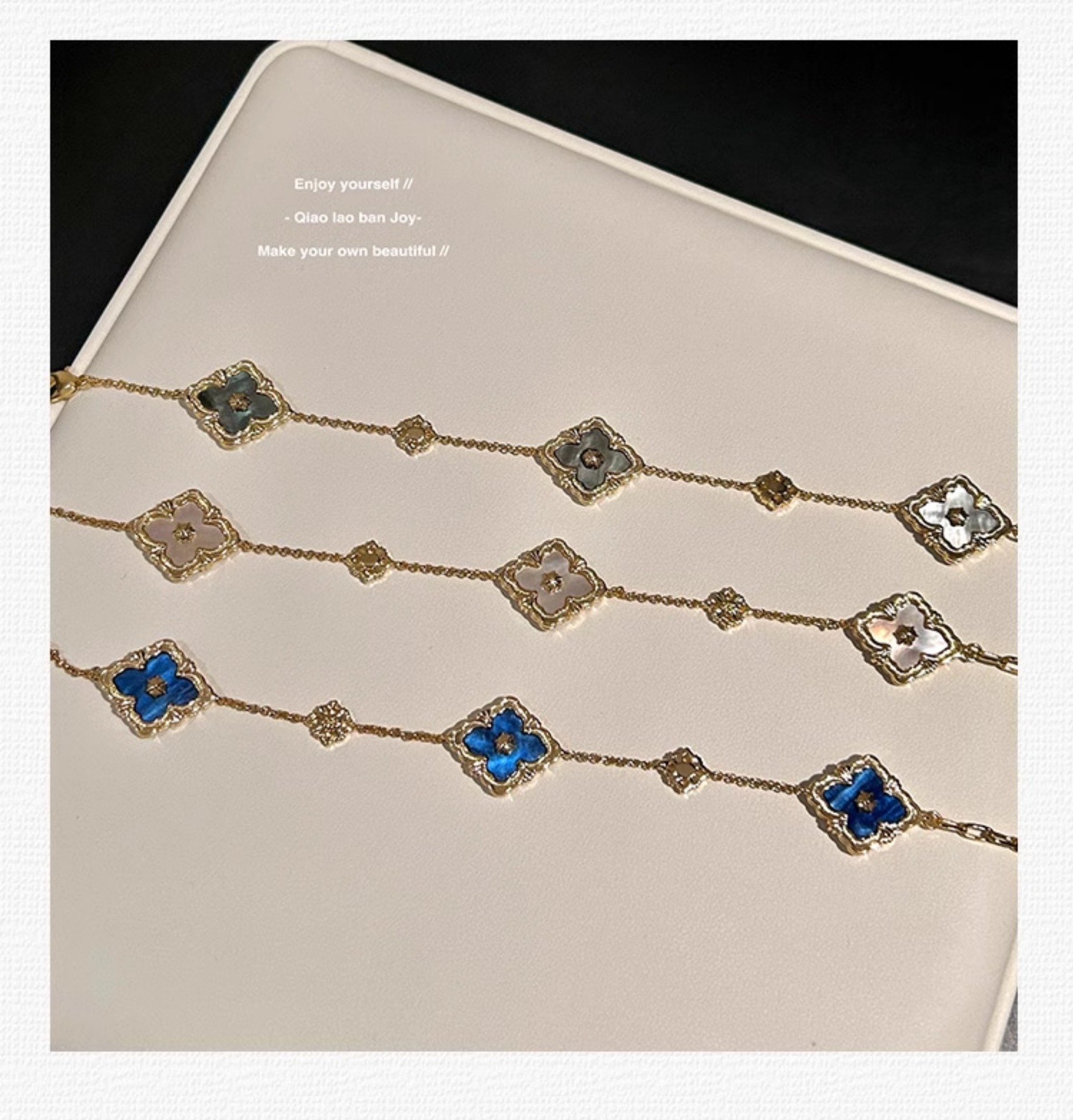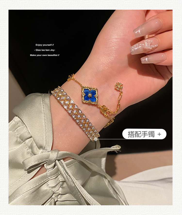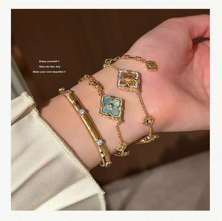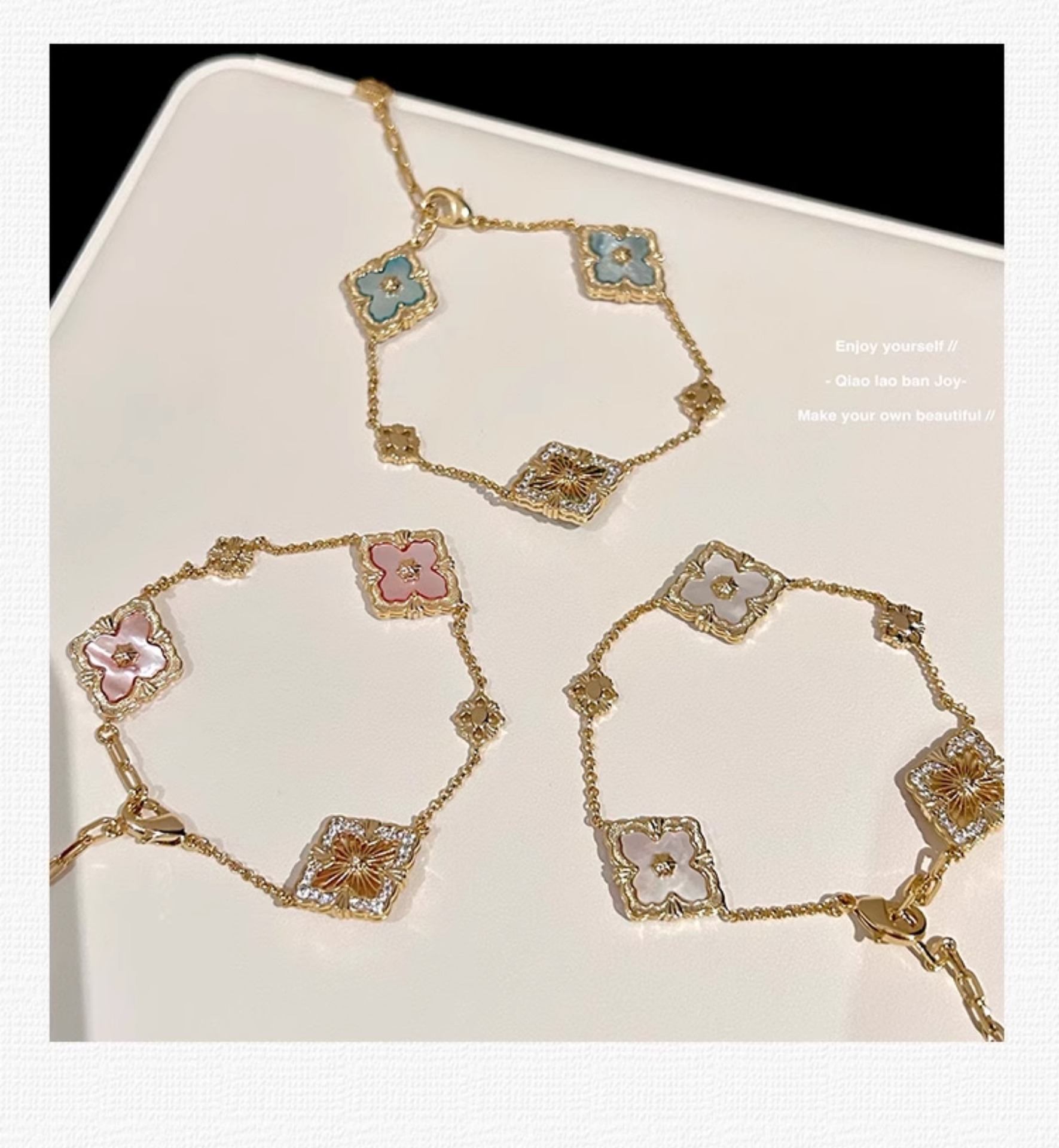 布契四叶草手链双面闪钻手镯贝母高级质感轻奢复古