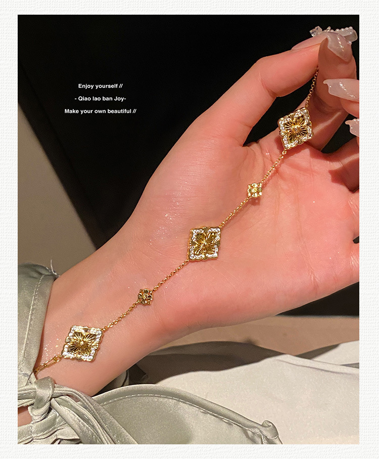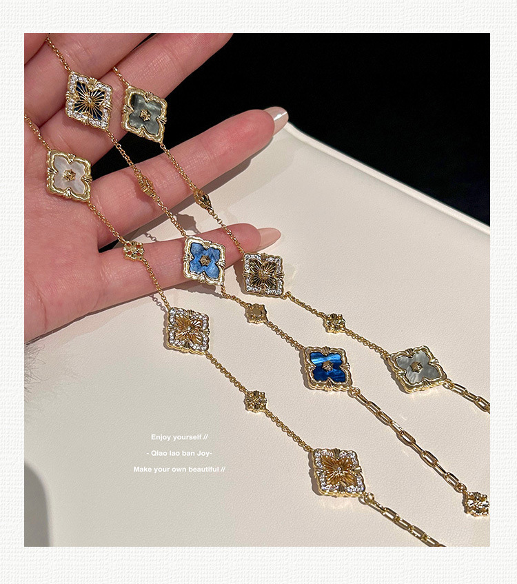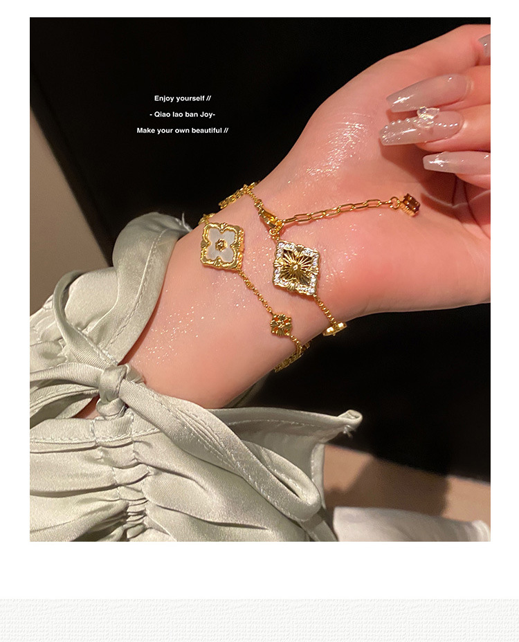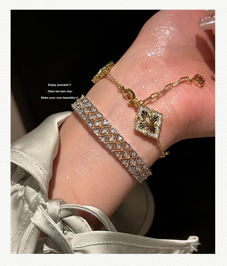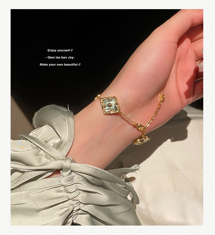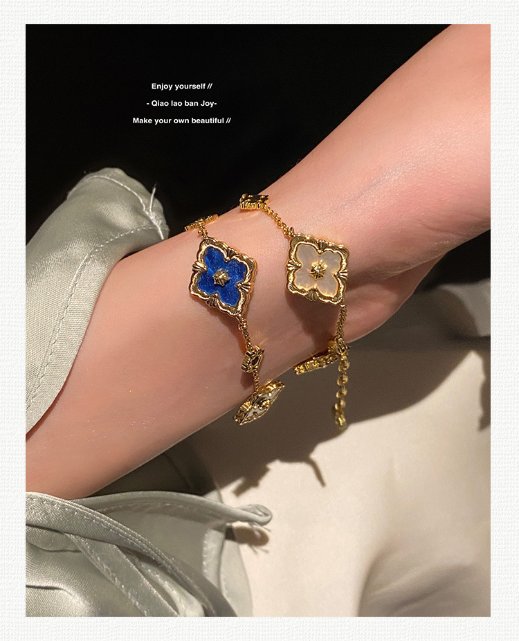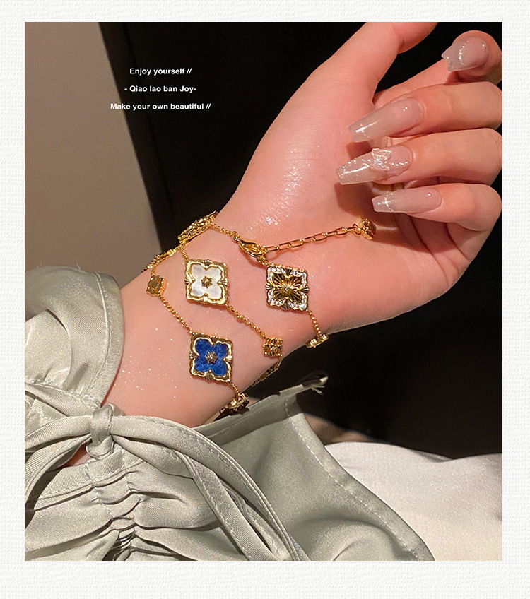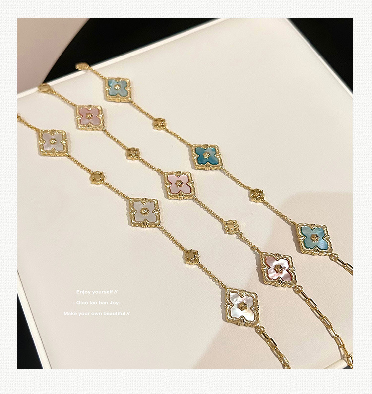 布契四叶草手链双面闪钻手镯贝母高级质感轻奢复古