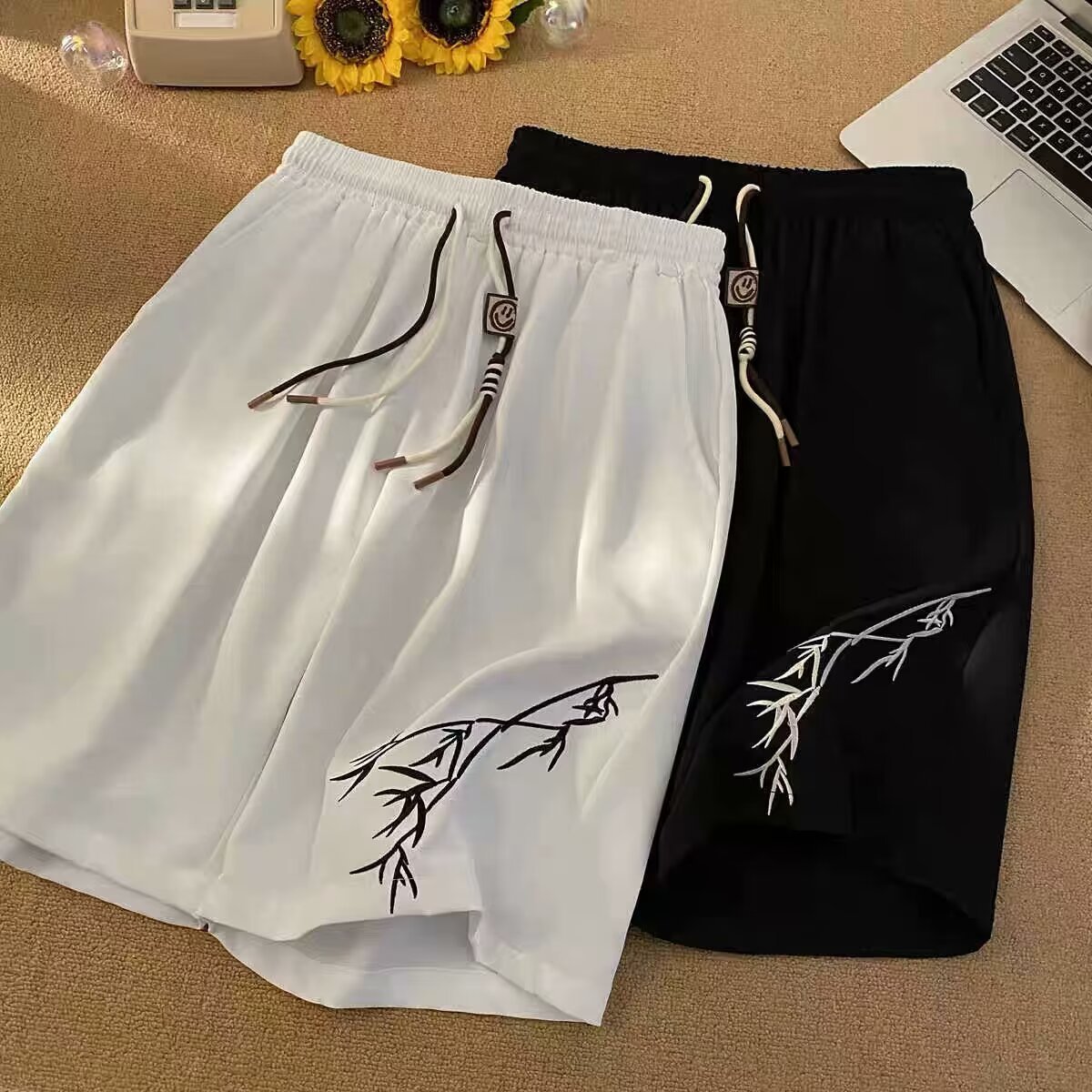夏季潮流国风新中式裤子休闲短裤运动竹子潮牌宽松直筒五分裤中裤