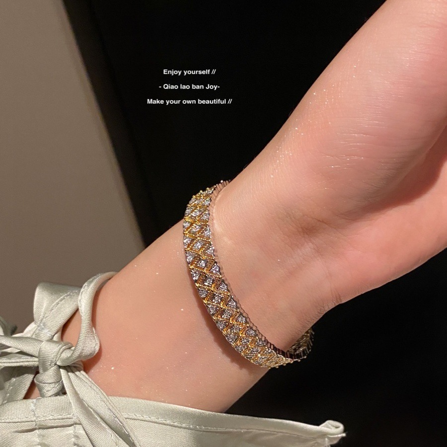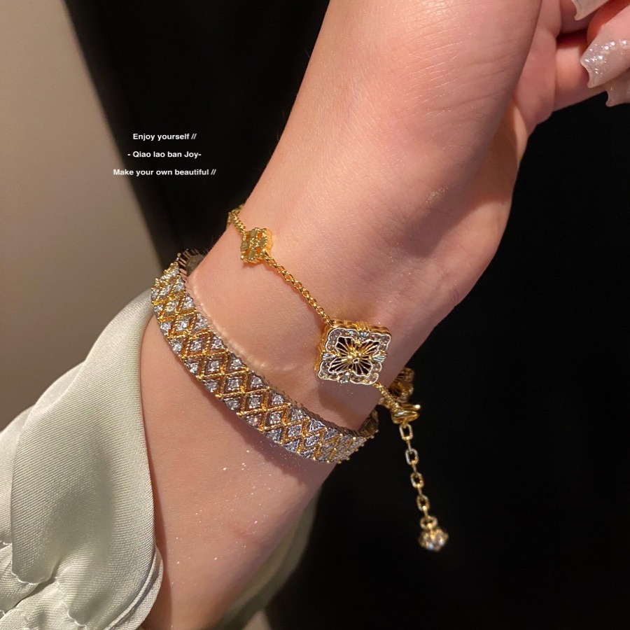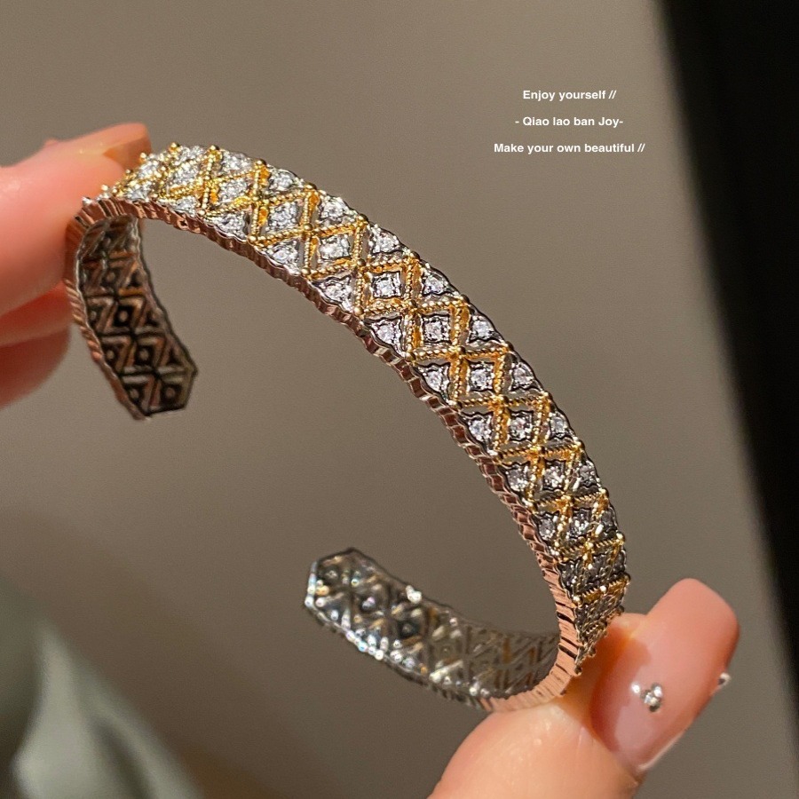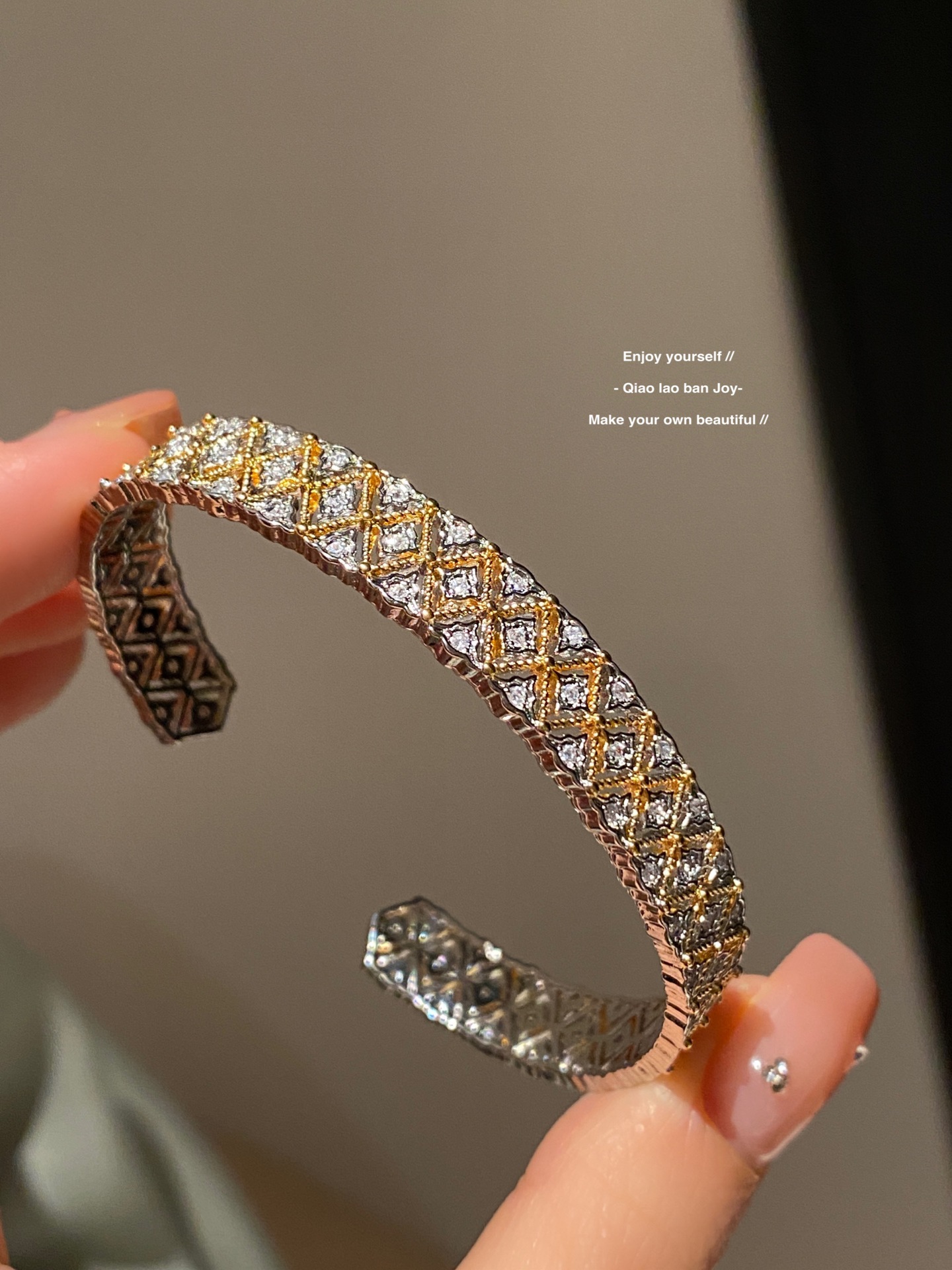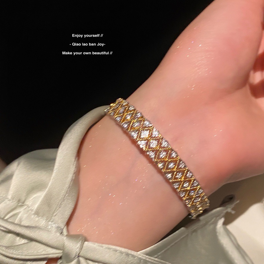 布契闪钻手镯编织镂空手链开口可调节高级质感复古