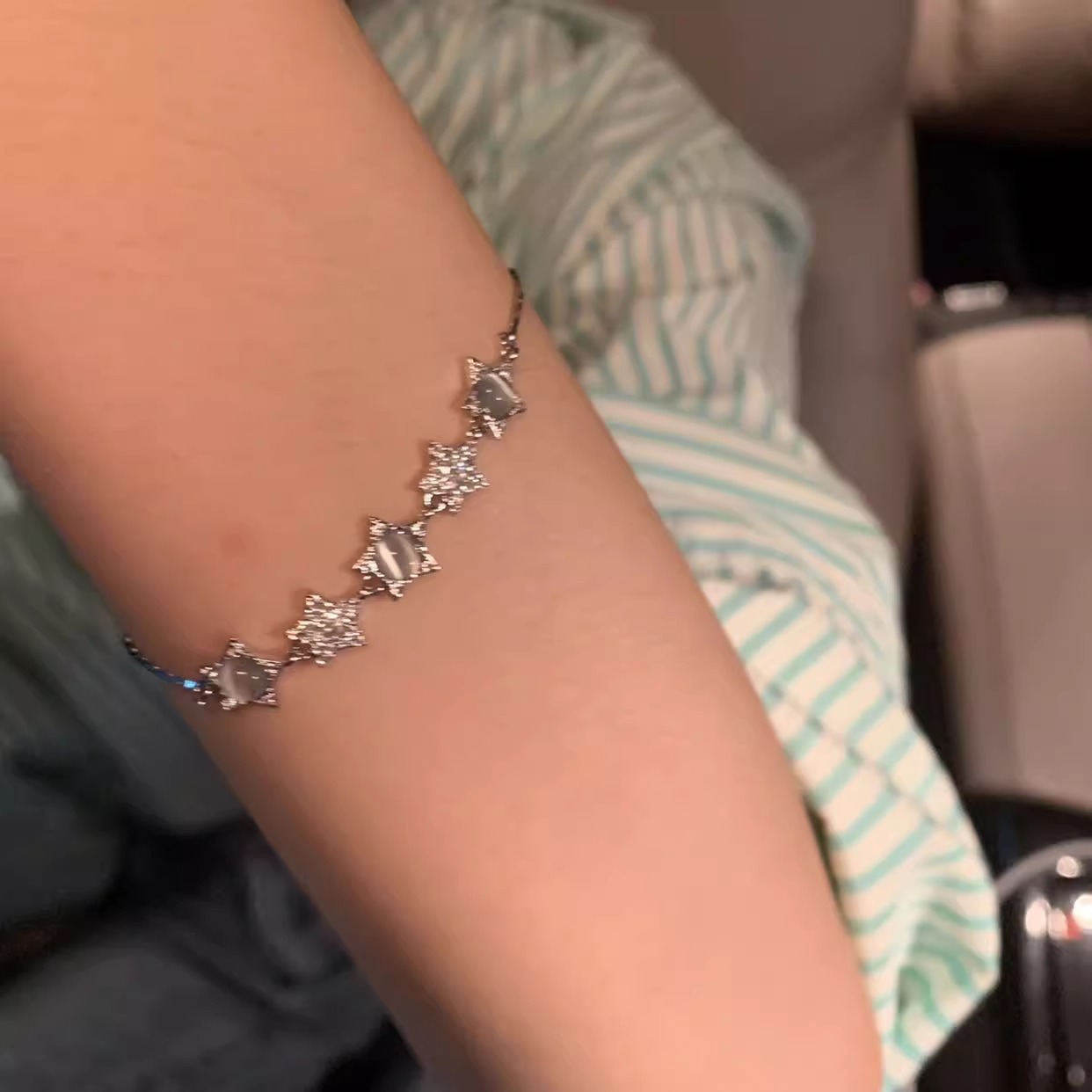 银色星星猫眼手链