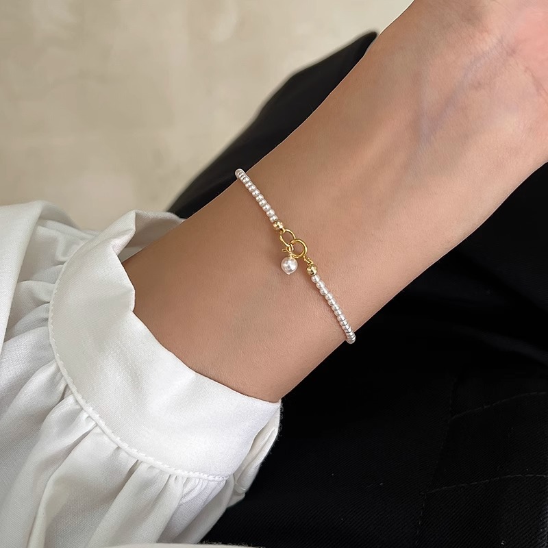 方糖家 经典迷你施家强光澳白正圆珍珠简约手链精致小众fever博主