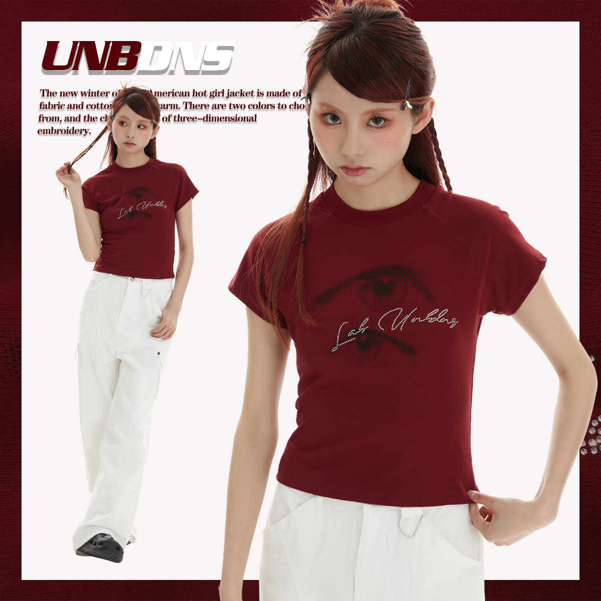 UNBDNS 美式甜酷辣妹短袖T恤女夏季百搭修身小众设计显瘦短款上衣