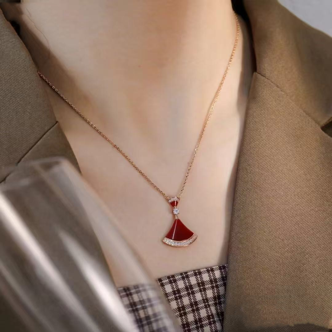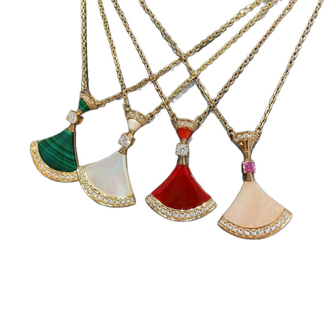 高版宝V金扇形新款小裙子锁骨项链ins小众高级时尚感吊坠女款贝母