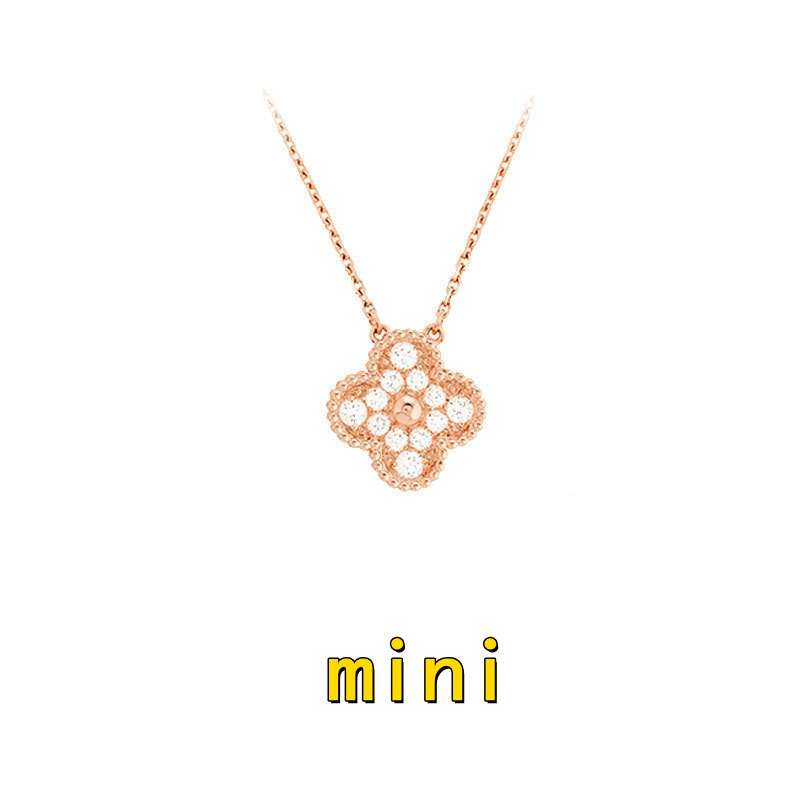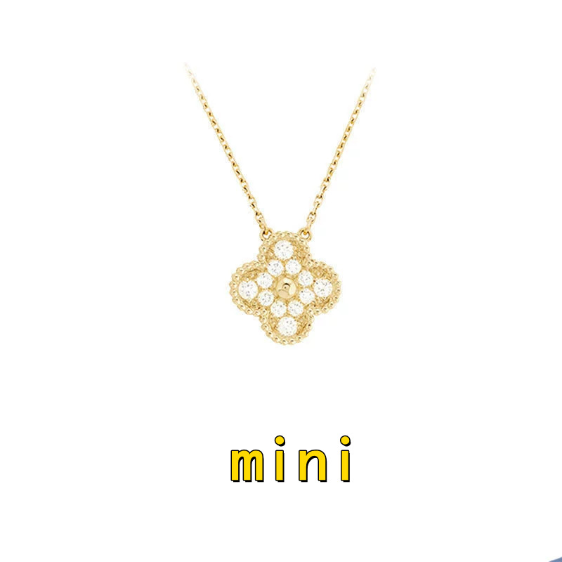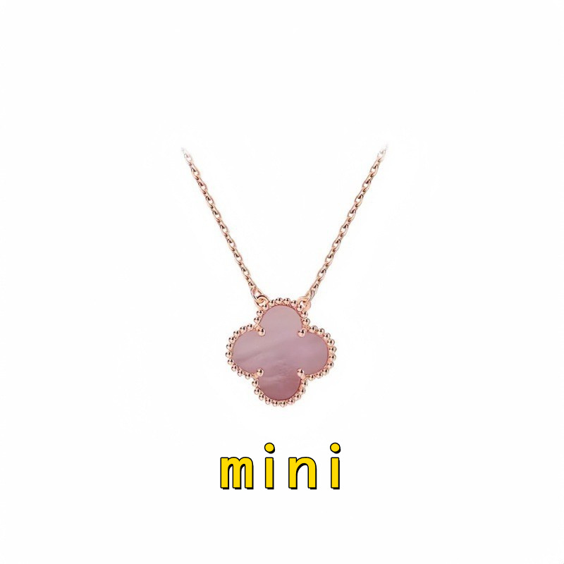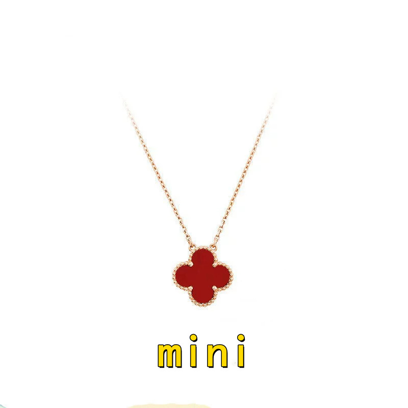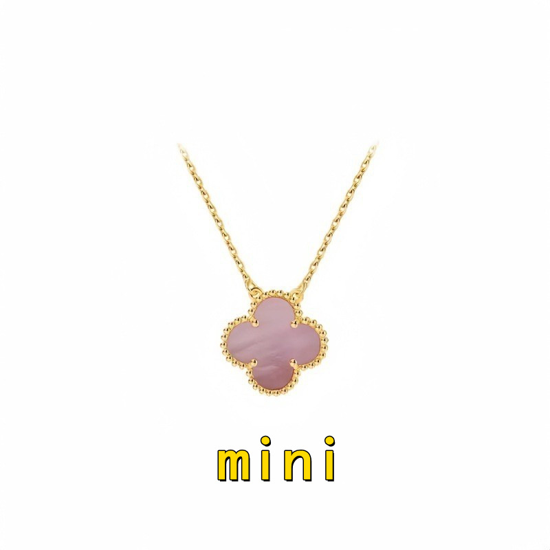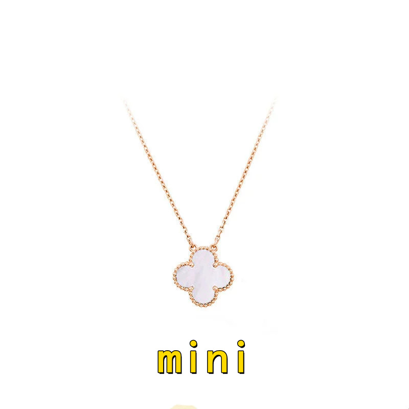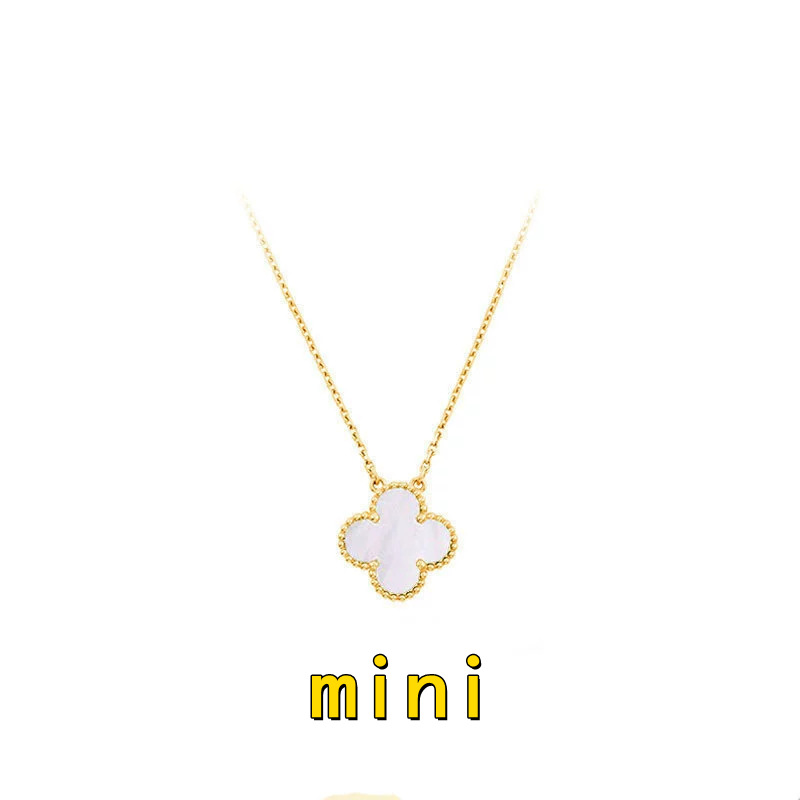 跨境高版迷你四叶单花草项链白贝母镭射mini吊坠锁骨链女神款气质