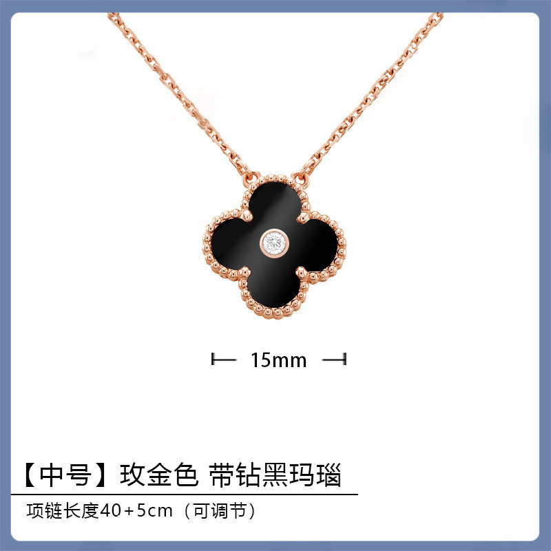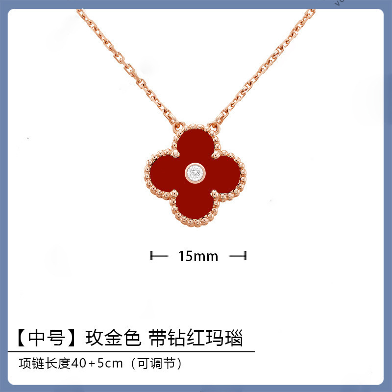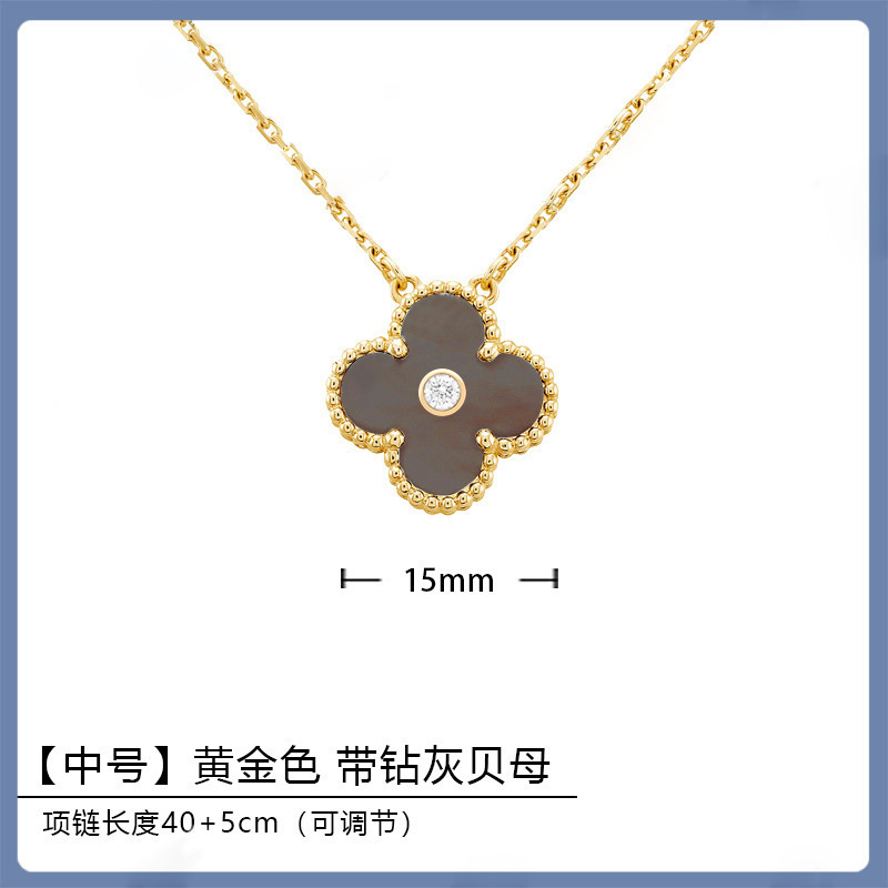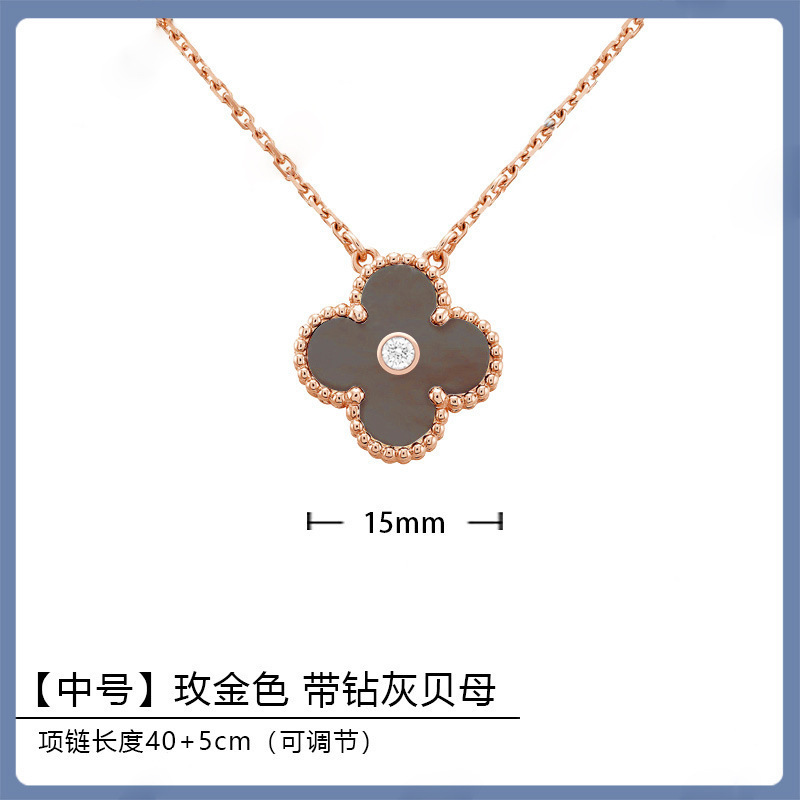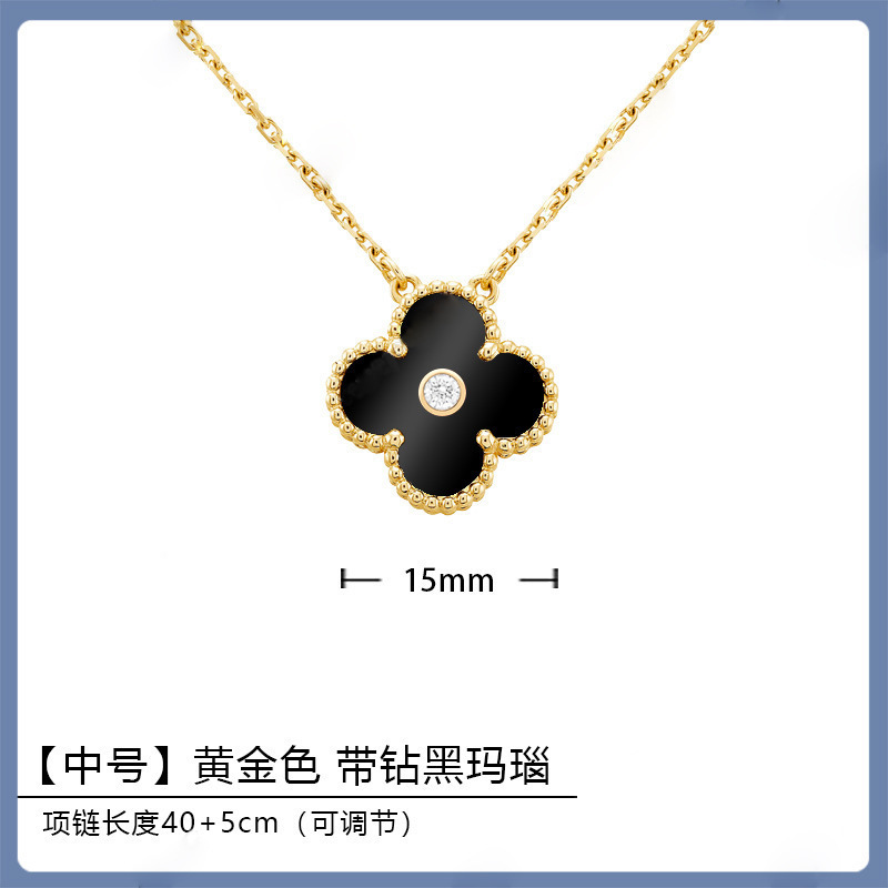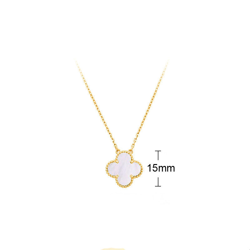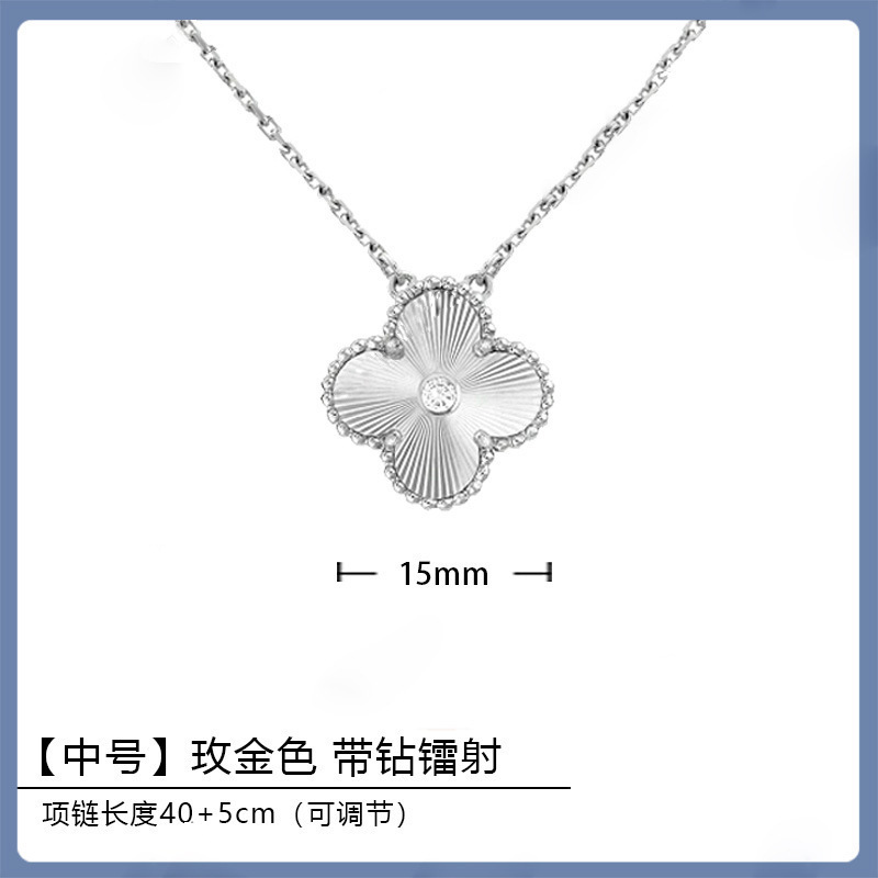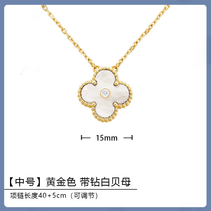 跨境高版V金四叶单花草项链白贝母镭射钻吊坠锁骨链女款mini大号9