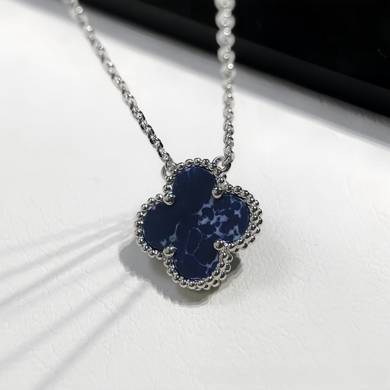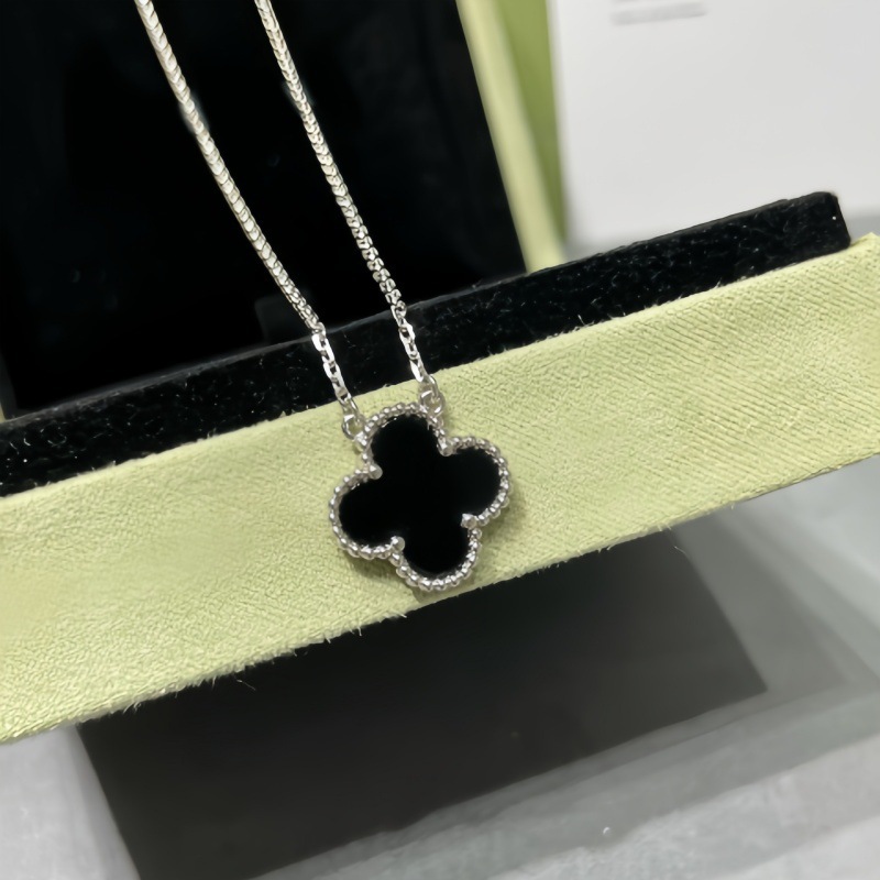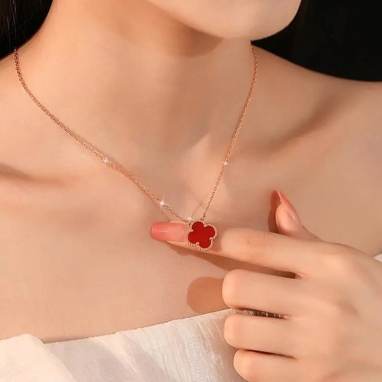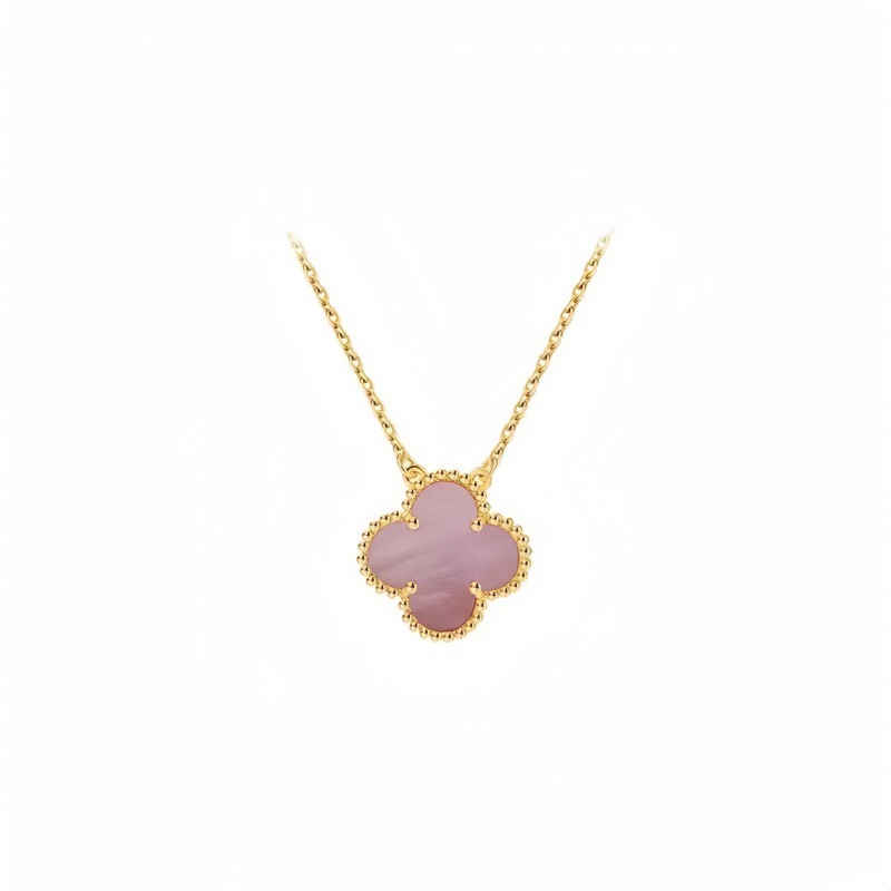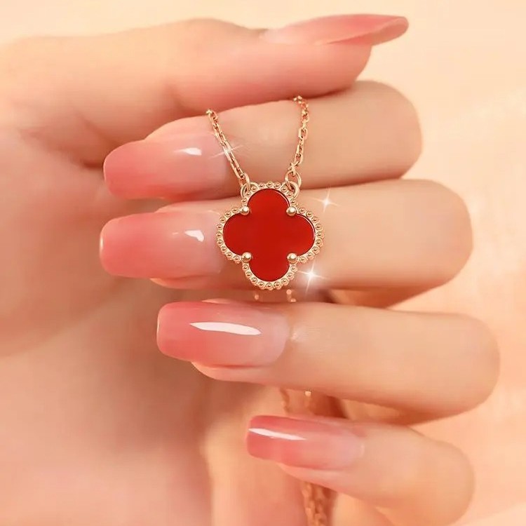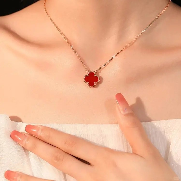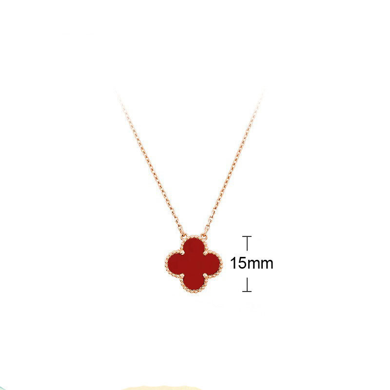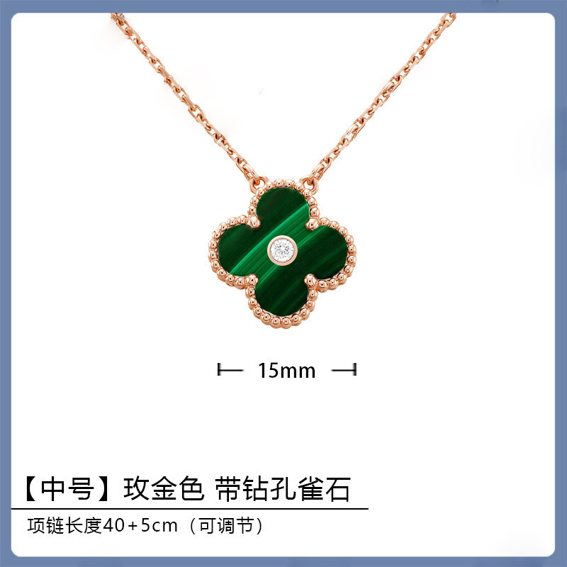 跨境高版V金四叶单花草项链白贝母镭射钻吊坠锁骨链女款mini大号9