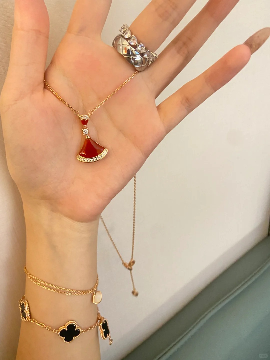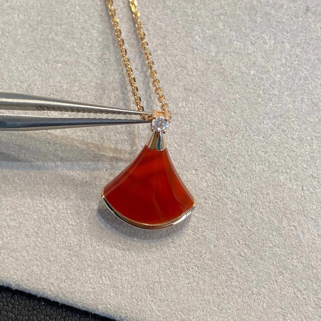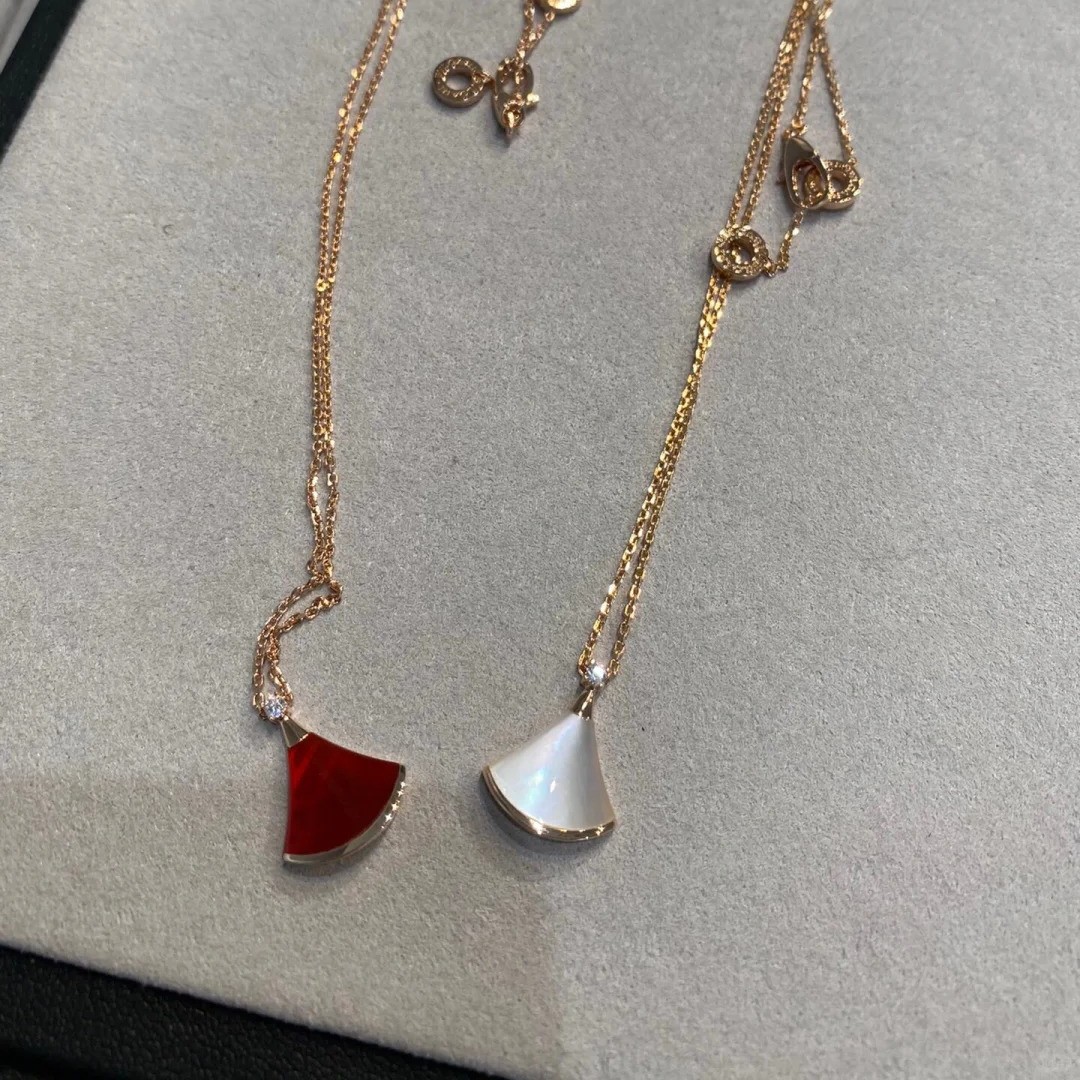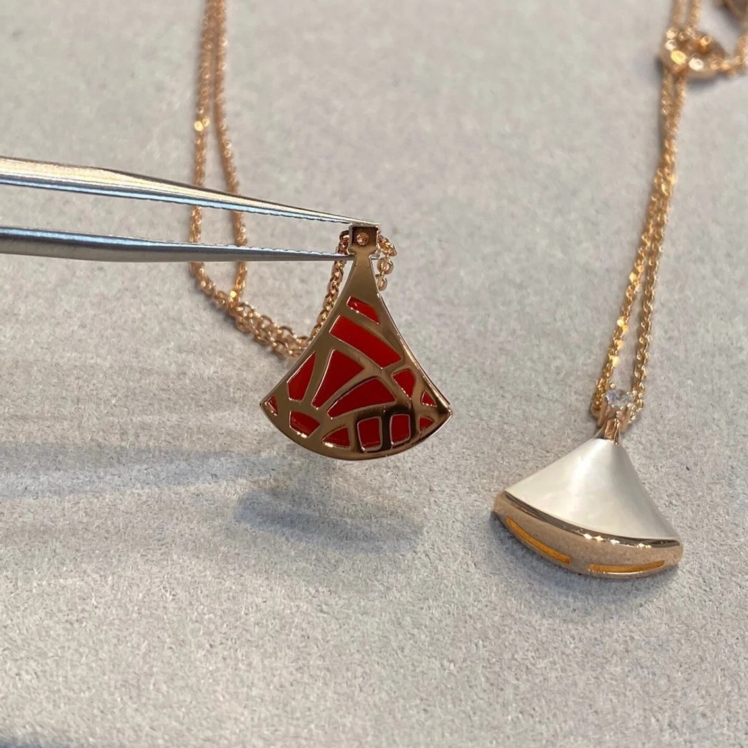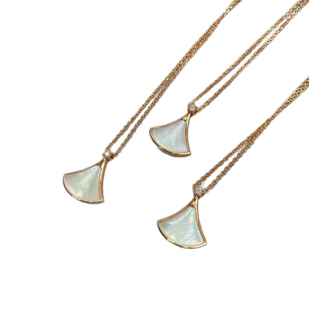 高版项链V吊坠锁骨链网红小裙子合金钻扇形18k玫瑰金女天然白母贝