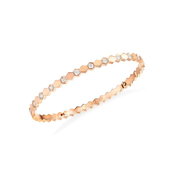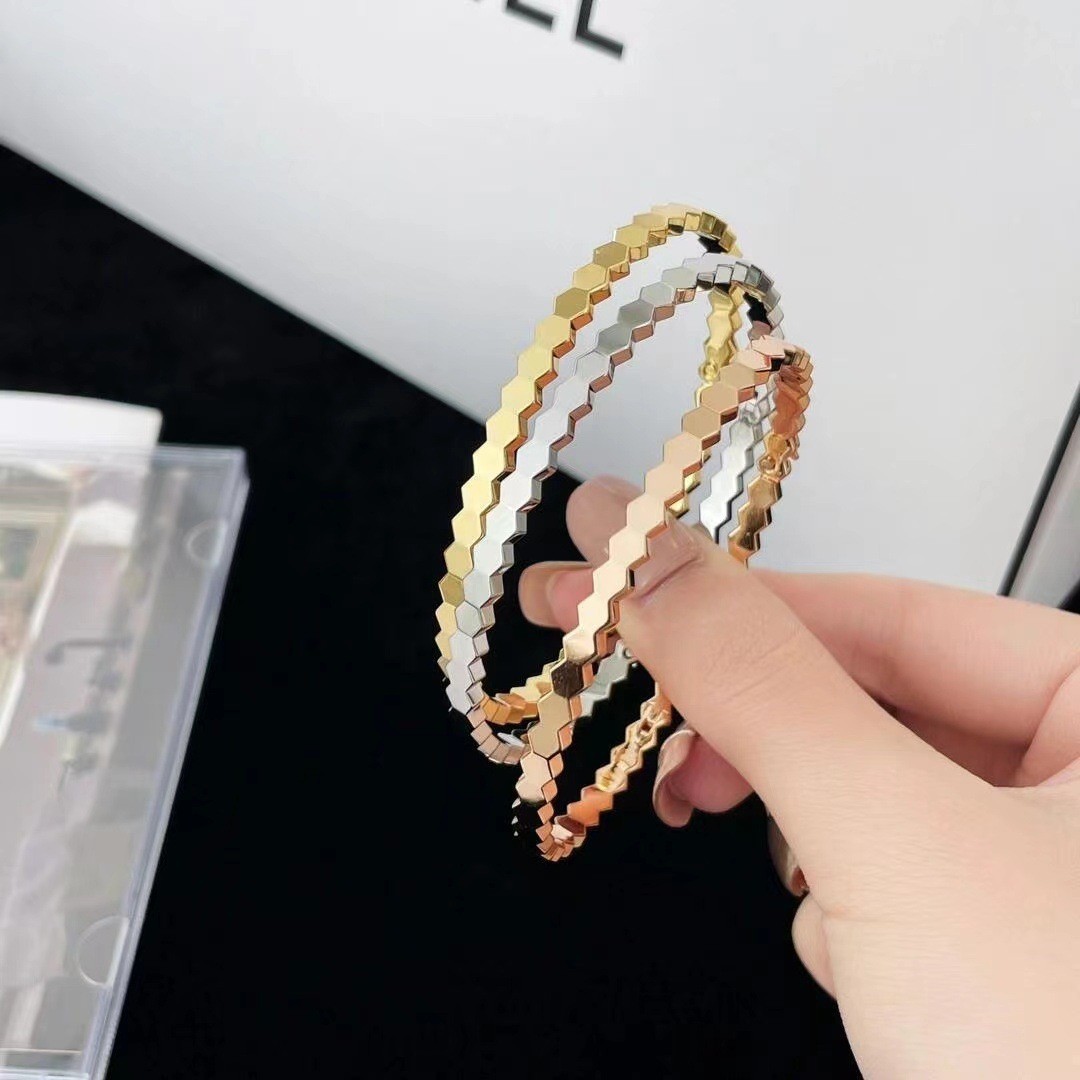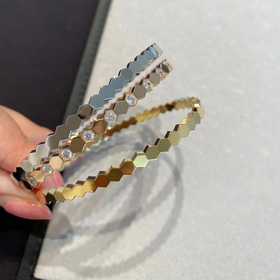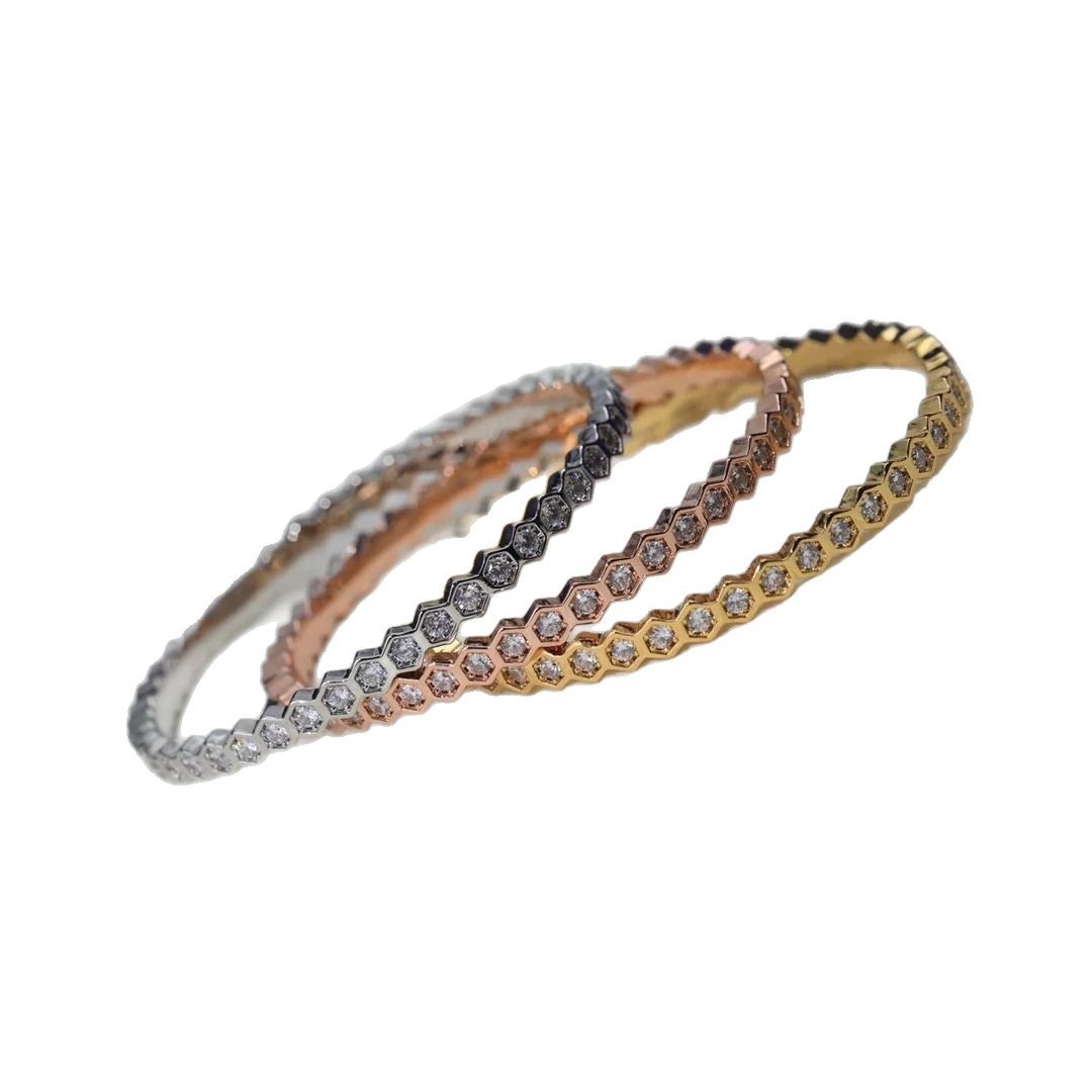 韩高版精雕菱形cnc蜂巢手镯满钻无钻六边形蜂窝手环女v金玫瑰金色