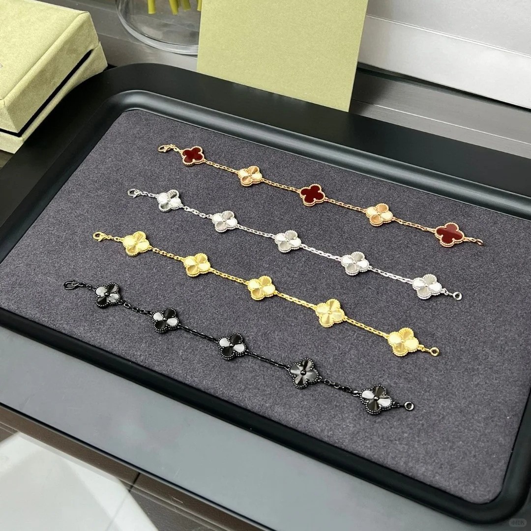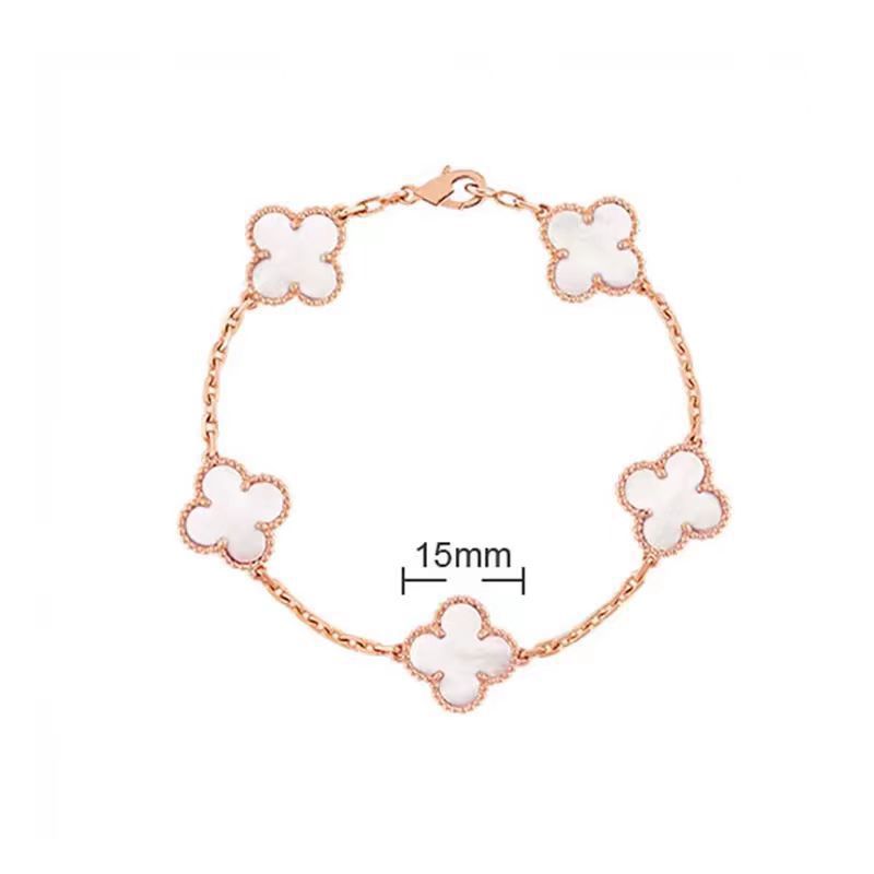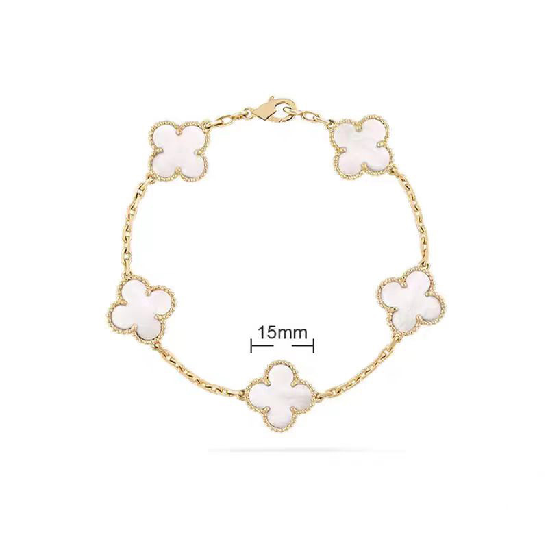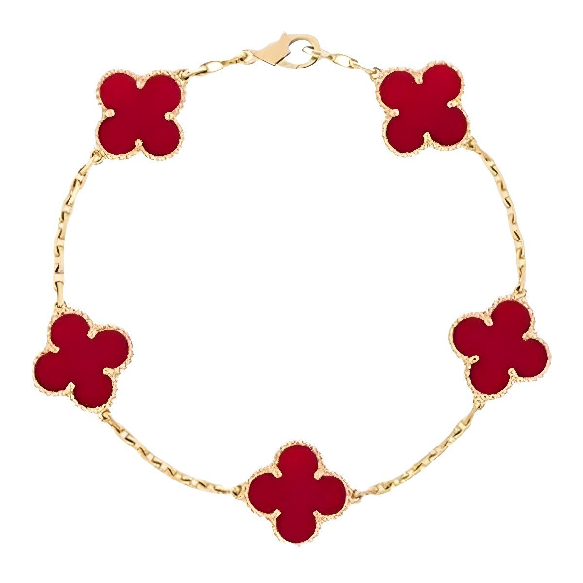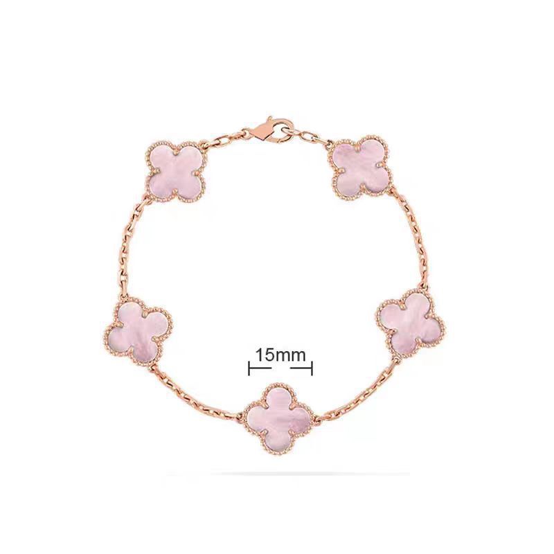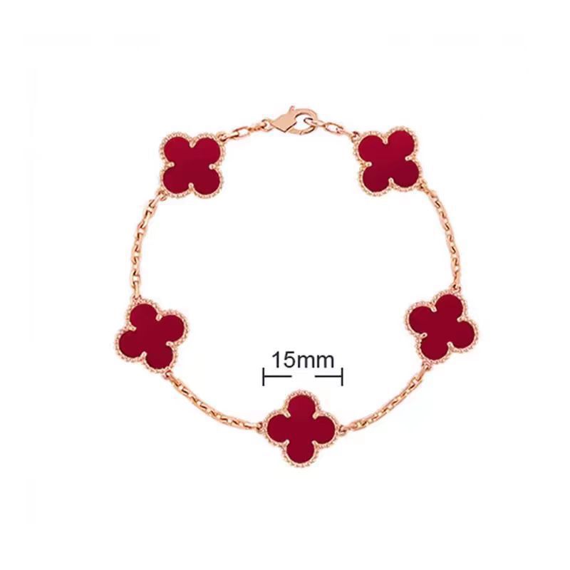 跨境高版F宝四叶草五花手链女18K玫瑰金红玛瑙白贝母镭射手饰花朵