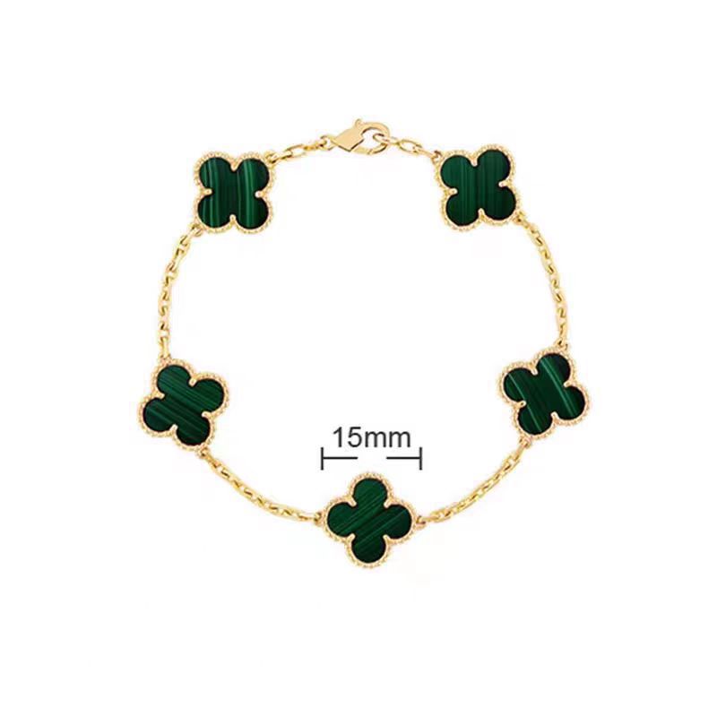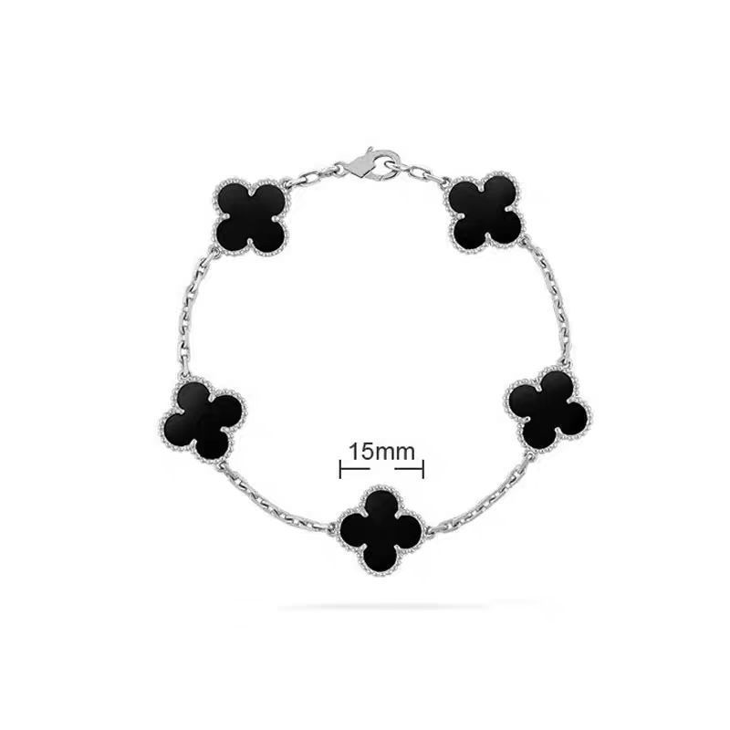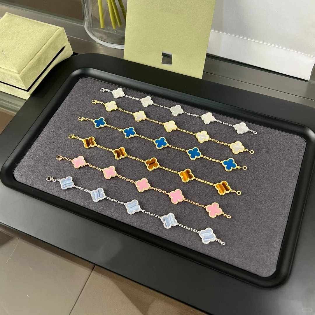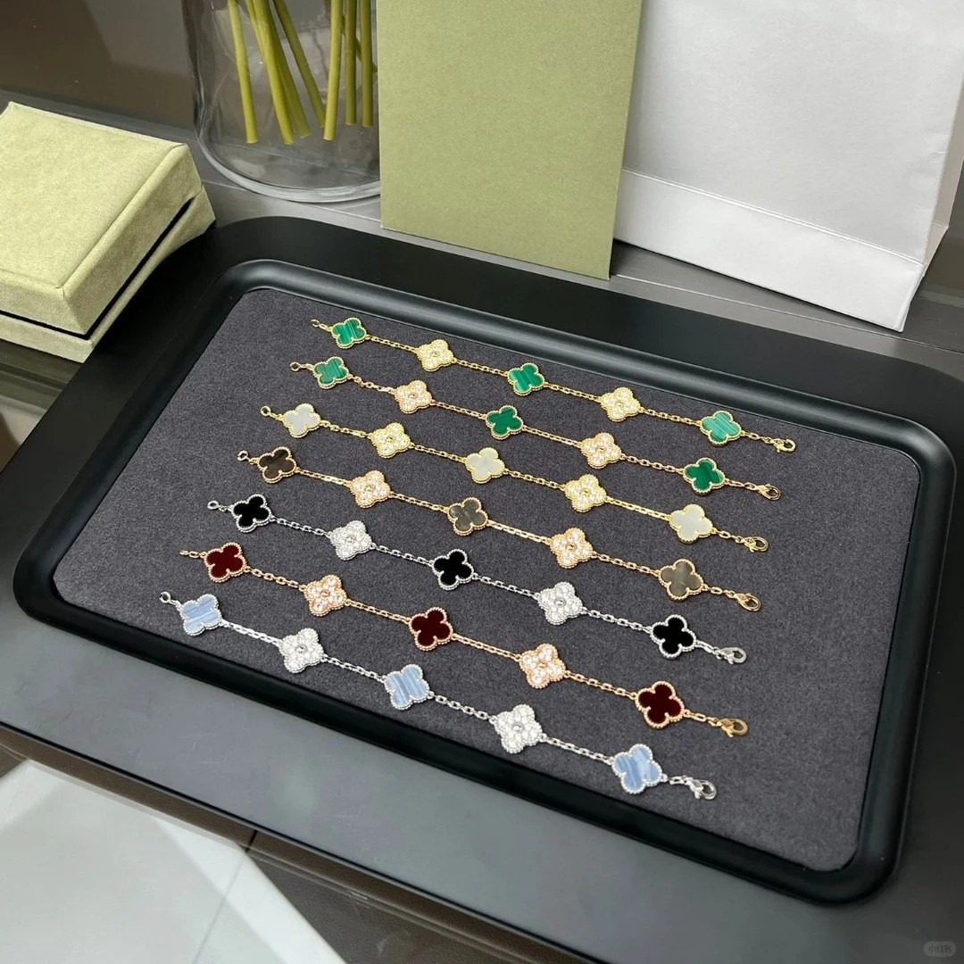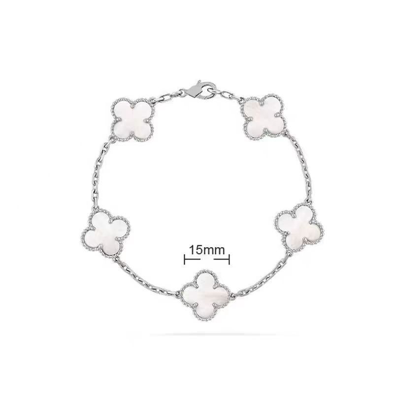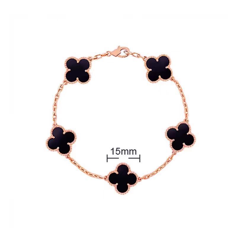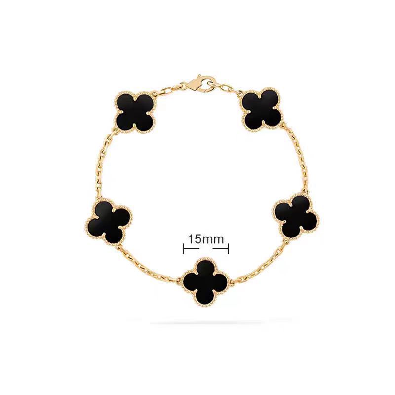 跨境高版F宝四叶草五花手链女18K玫瑰金红玛瑙白贝母镭射手饰花朵