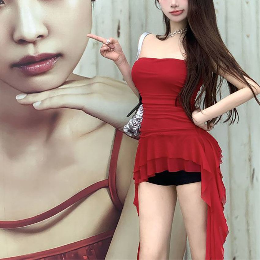 红色飘带抹胸背心女2025夏季裹胸内搭纯欲风上衣外穿