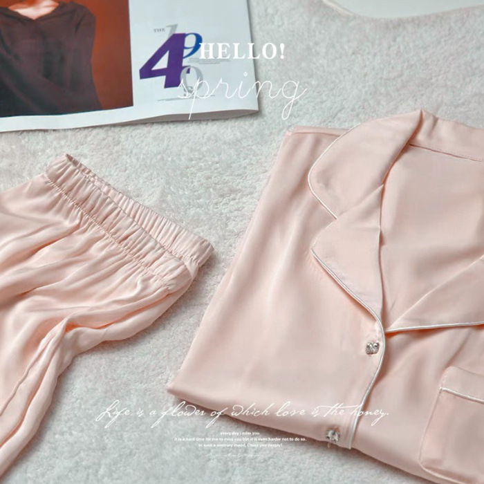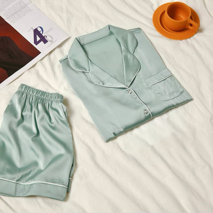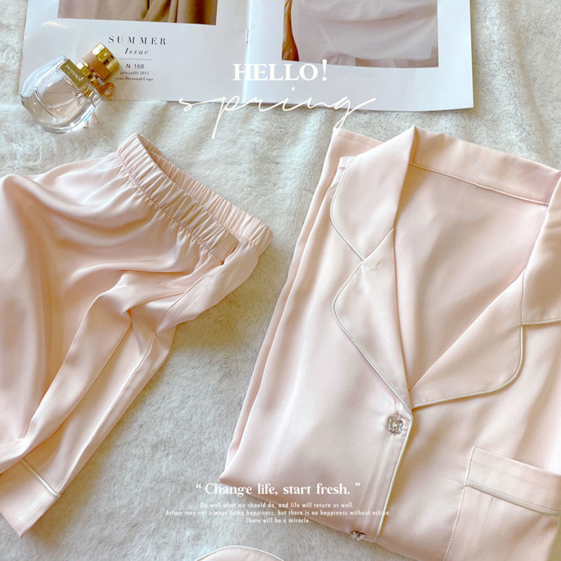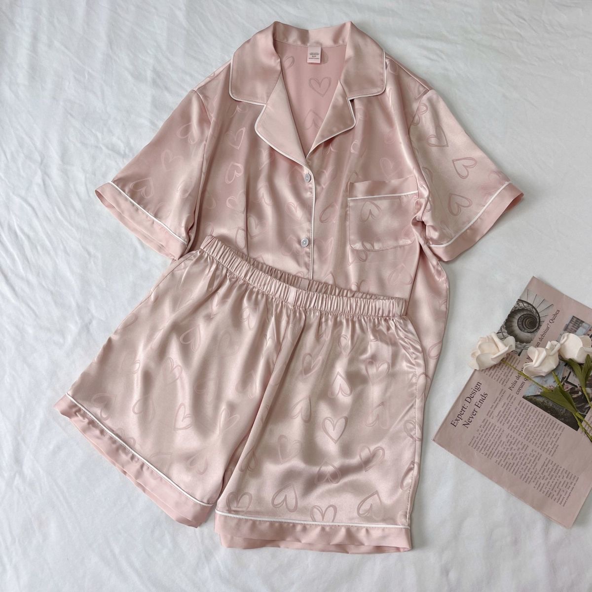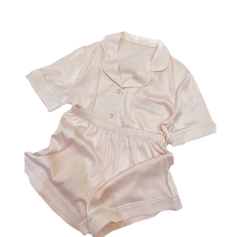 春夏季粉色冰丝睡衣女士家居服薄款休闲套装短袖短裤性感时尚宽松