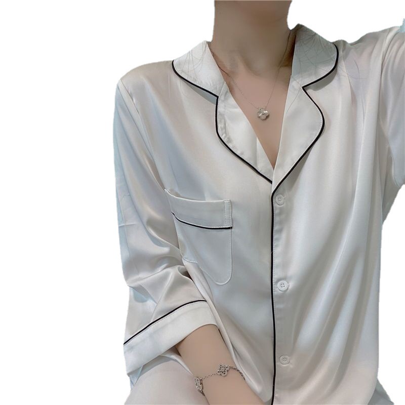 白色衬衫裙女性感韩版宽松睡裙女夏季仿真丝中袖睡衣女夏天家居服