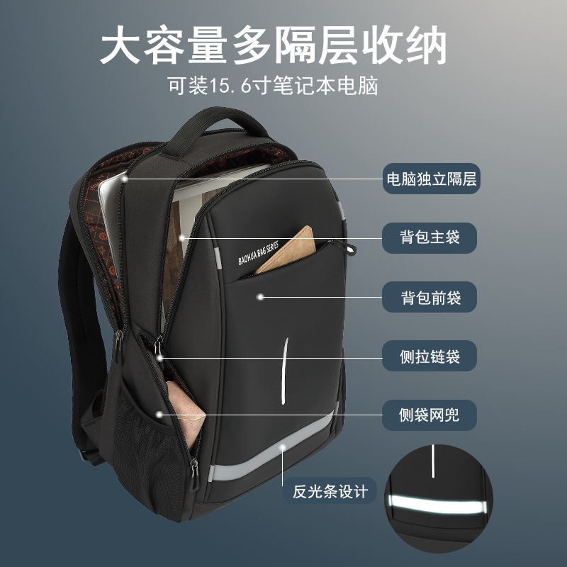 双肩包男士高级感独立隔层电脑包多功能商务旅行轻便防水背包