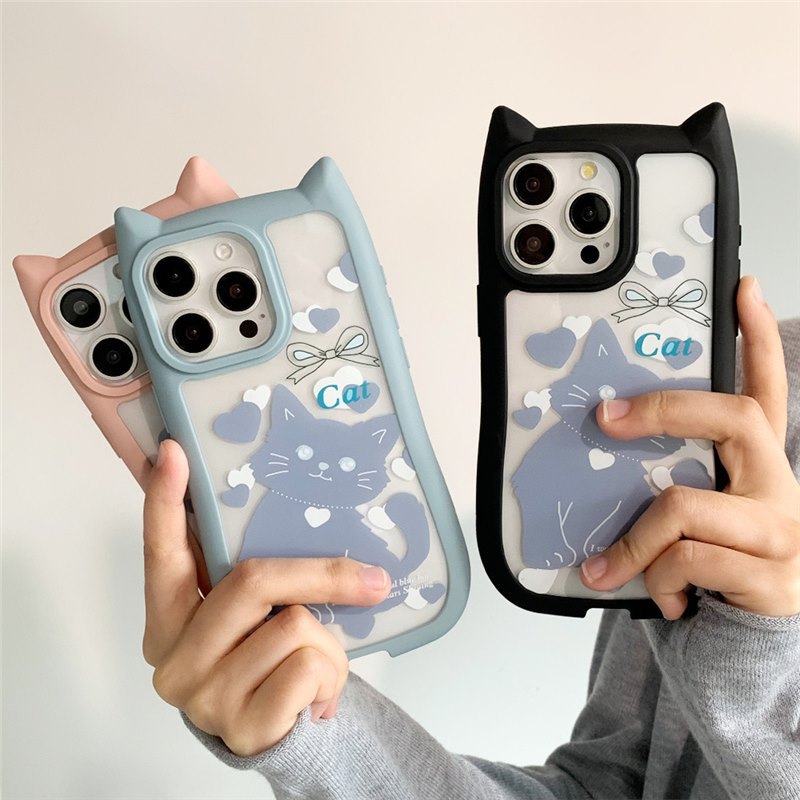 爱心猫咪15promax壳iphone13苹果11女款14plus大孔12蓝猫耳朵