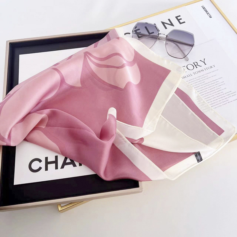高级感印花仿真丝丝巾女春夏薄款70小方巾好搭装饰职业领巾潮